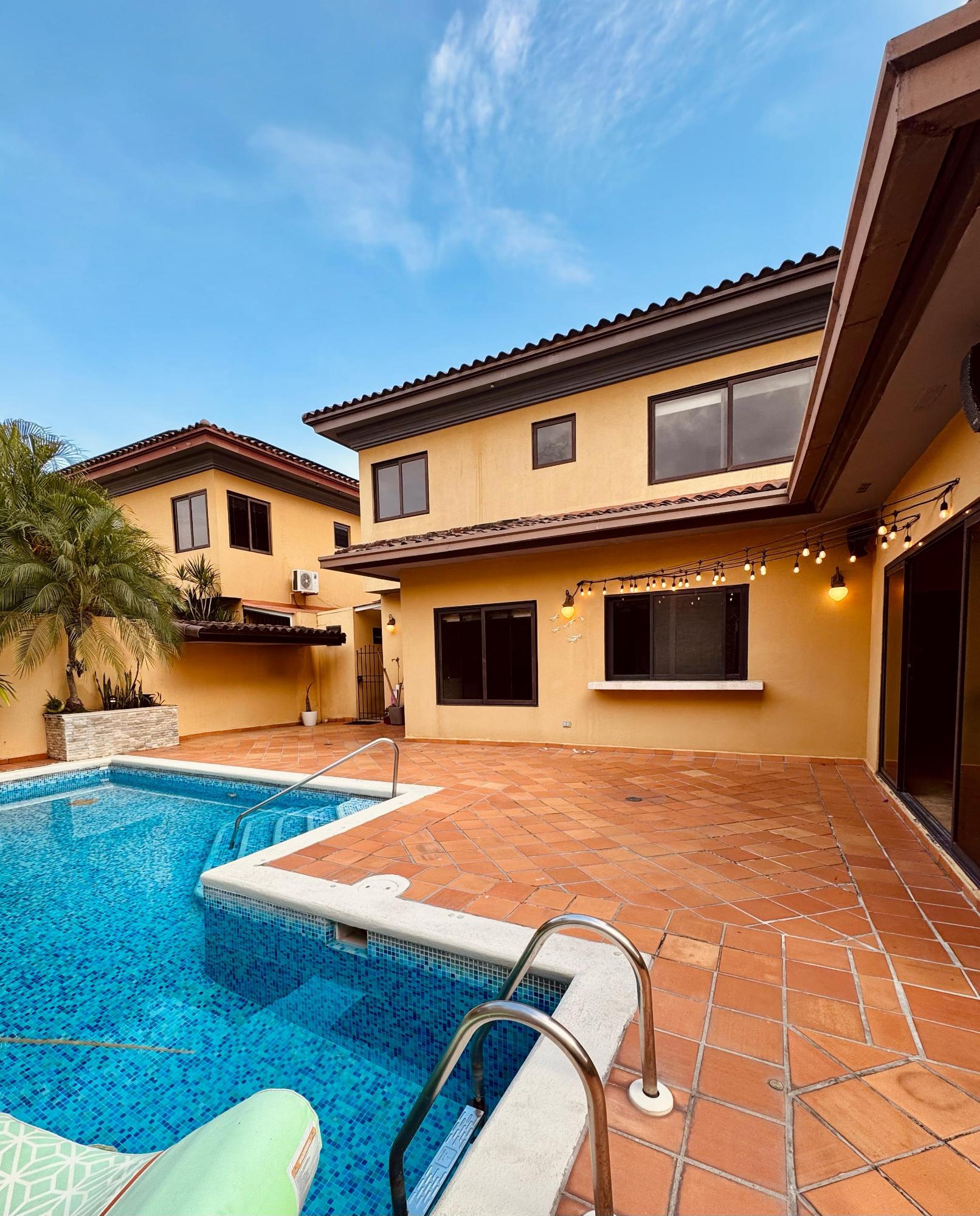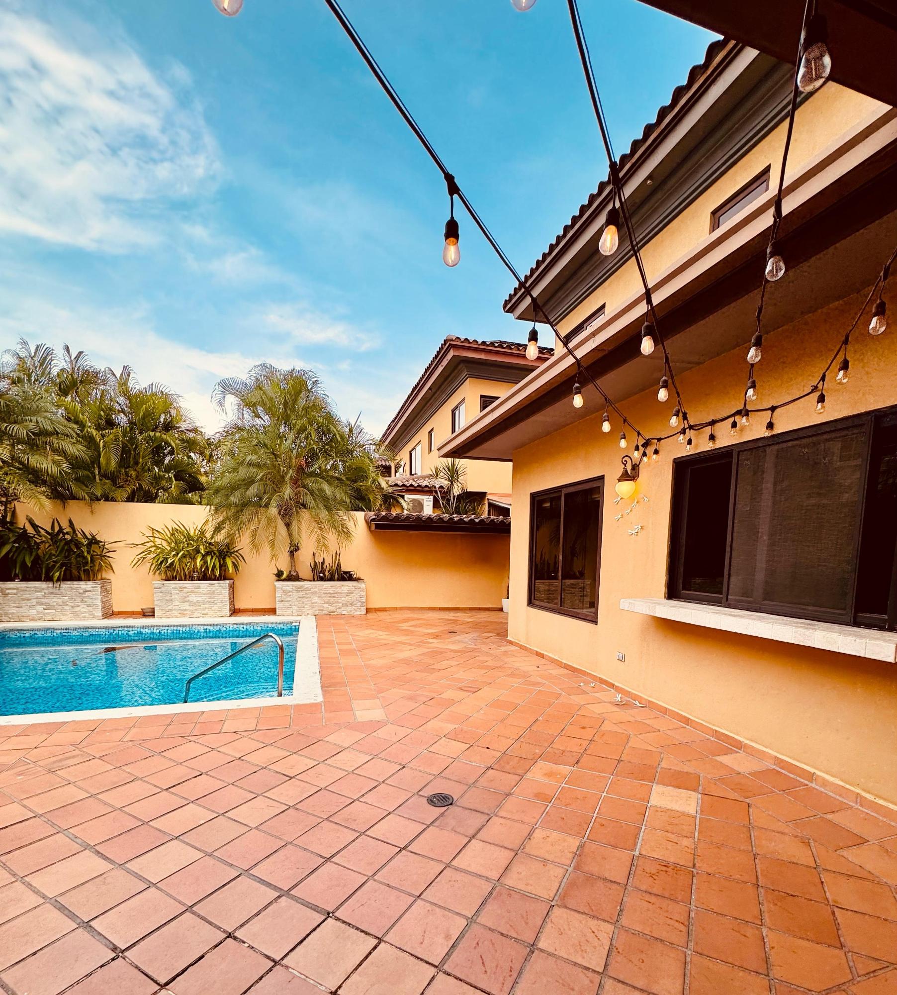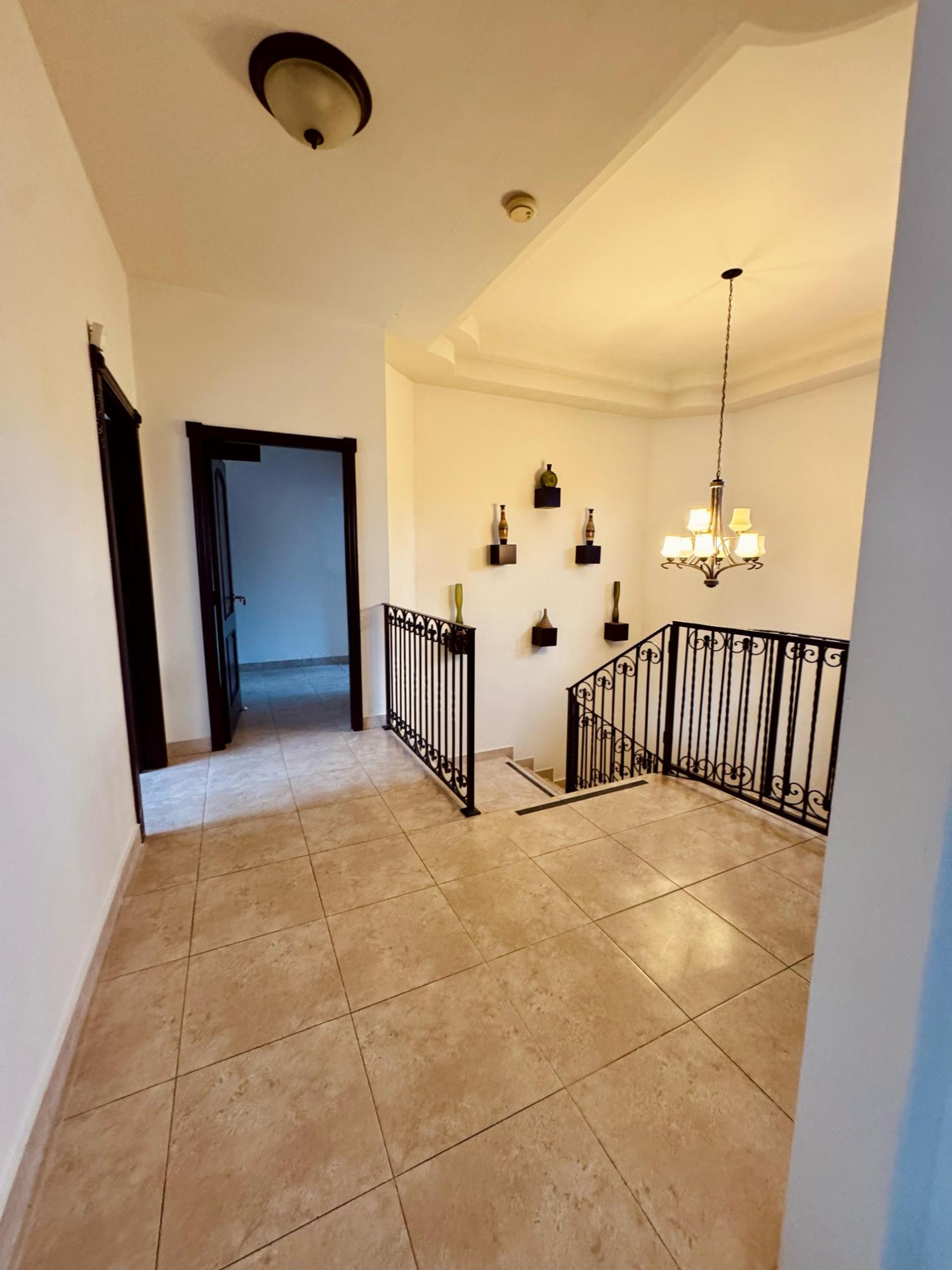 Upstairs: – 4 bedrooms – 3 bathrooms Downstairs: – Study – Living room – Den – Bar – Kitchen with breakfast area – Terrace with pool – 2 parking spaces – 1 storage room