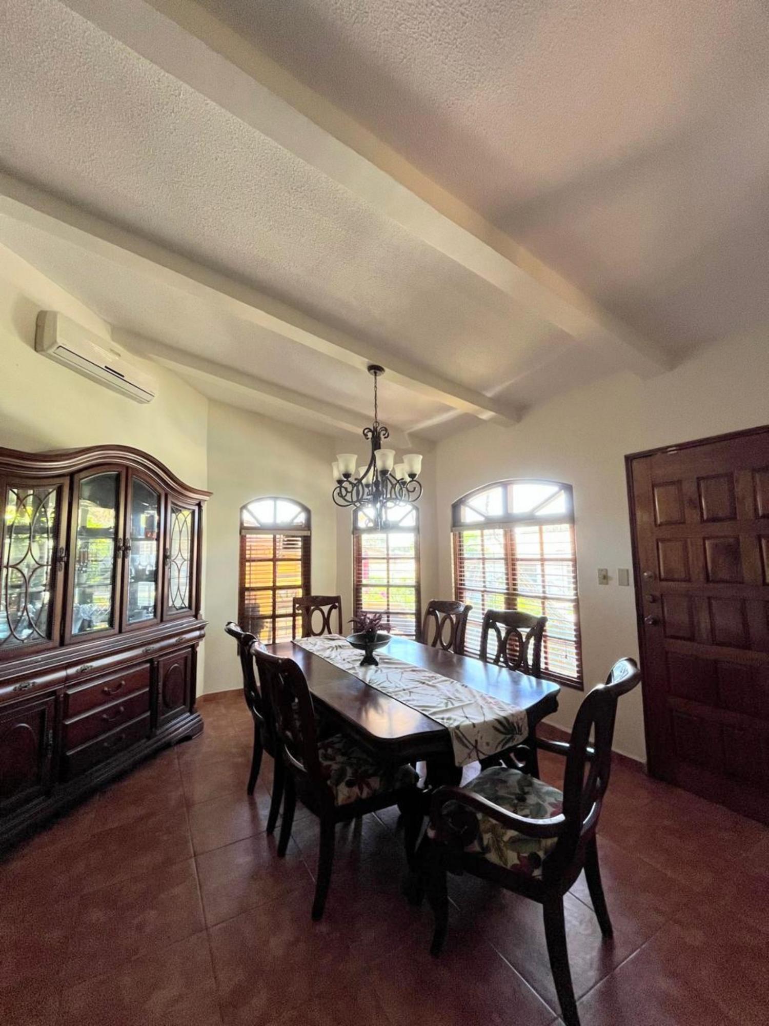 This unique property has so much to offer inside and out. Covered secure private parking for 2 cars within a walled property with electric entry gates and security cameras. Immediately leaving the parking area you will enter the beautiful fountain and gardens and get your first view of the amazing pool area complete with lounge chairs and shaded area. You will feel like you are in a tropical paradise just steps from your 3 bedroom 3 bathroom open floor plan sanctuary complete with A/C throughout. The condo is actually 2 conjoined units that were opened up to make 1 large apx. 1500 ft2. unit featuring a large office area with private entrance, living area, large dining room, light and airy kitchen with island. The kitchen is set up with gas stove and oven, double door fridge w/ separate freezer, microwave, wine cooler, The laundry room has a mop sink, stackable washer and dryer and ample storage. The shop/storage is lockable and contains 2 propane tanks.There are 2 patios large enough for table and chairs, hammock, BBQ area and have gorgeous views of the sunrises and sunsets. Throughout the unit are fantastic views out to the pool and gardens including a floral explosion of colors with many palm trees with attached blooming orchids. The surrounding area is great for walking or biking to parks and only a 3 minute walk to a large Romero grocery store and other shopping/dining options. The center of David is only blocks away. Don’t miss out on this unique opportunity.