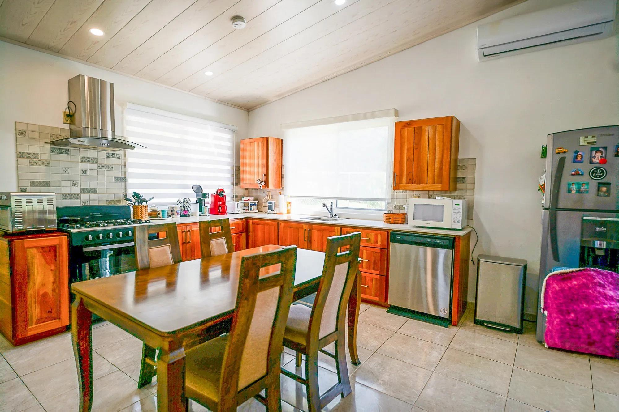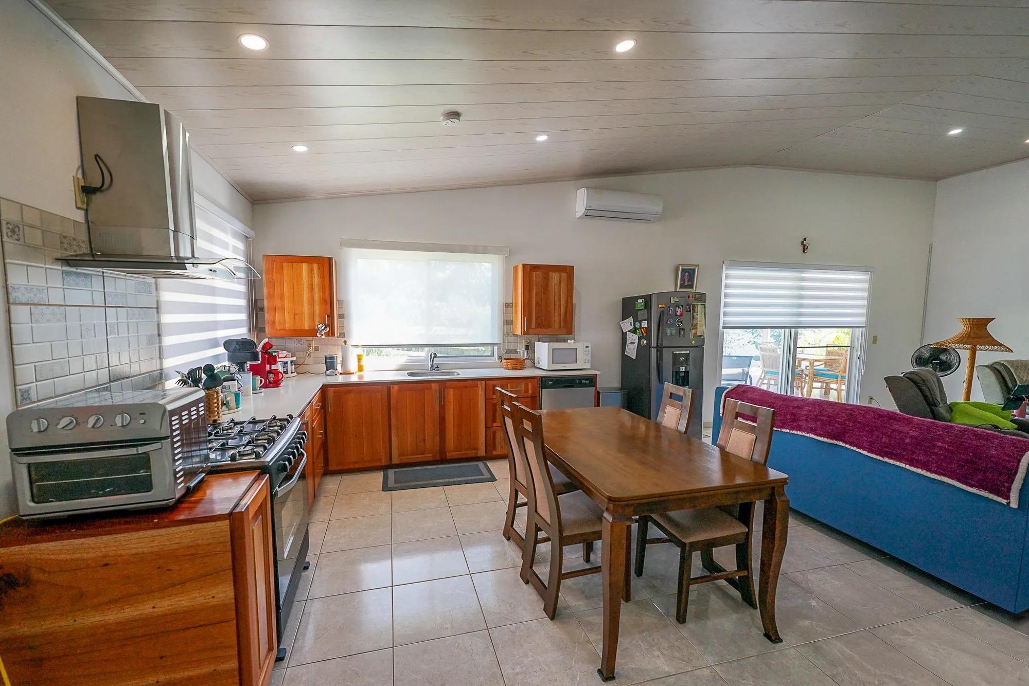 This recently built 3-bedroom, 3.5-bathroom home is located in Alto Boquete on Via Caldera, near the entrance to Eden Canyon. The property offers 122.5 m² (1,319 sq. ft.) of enclosed living space, plus a 57.25 m² (616 sq. ft.) covered terrace and carport, totaling approximately 179.75 m² (1,935 sq. ft.) of construction. The home sits on a 718 m² (0.18-acre) lot. The house is sold furnished, excluding the tenants’ personal furniture and belongings. The location provides convenient access to both Boquete and David, approximately 10 minutes from downtown Boquete and 20 minutes from David. The property is just one minute from the Boquete police checkpoint and Dorado Plus Plaza, which includes a pharmacy, grocery market, restaurant, and hardware store. The home is part of a small expat enclave and is situated next to the 24-hour security gate of Eden Canyon. The fully fenced yard is suitable for pets, and the covered terrace offers views of the Talamanca mountain range. A water reserve tank and pressure pump are included. The property recently received tax-exempt status and has no history of flooding or landslides. Financing is available for qualified buyers. The climate is warmer than higher elevations in Boquete while remaining cooler than the coastal lowlands, offering a comfortable year-round environment.