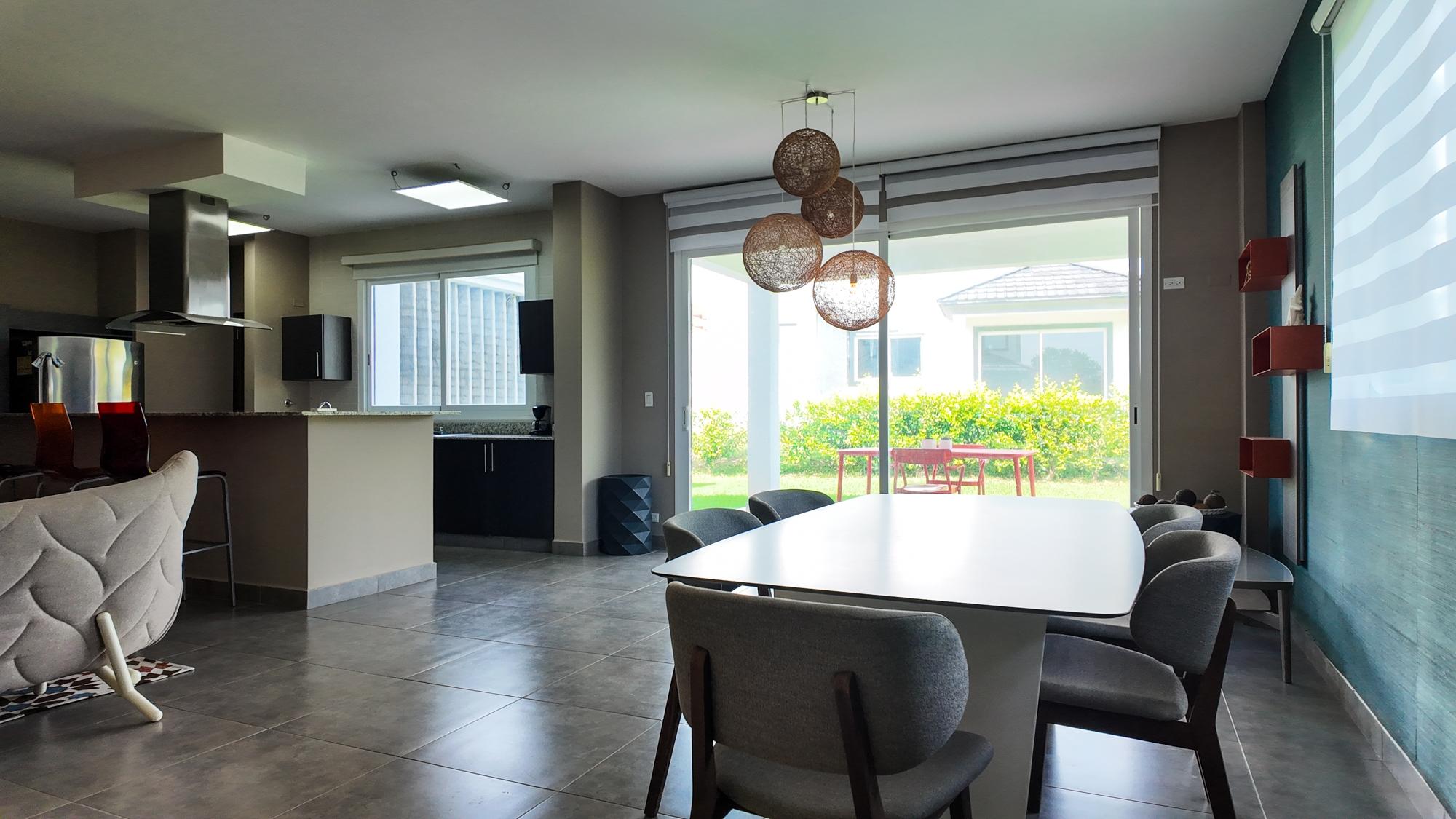 This 4-bedroom home for sale in Coronado, Las Lajas, Chame is located within a planned residential development and offers a practical layout supported by shared amenities and a defined natural setting. The property includes 300.13 m² of land and 236.85 m² of construction, providing comfortable interior space with minimal exterior maintenance. The home sits on flat terrain inside Coronado, surrounded by landscaped trees that reinforce its residential character. An adjacent lake introduces open sightlines and a natural water feature that separates the property from nearby structures without relying on elevation or distant views. Interior Layout The residence includes three bedrooms and three bathrooms arranged for daily living and guest use. A family room provides a flexible secondary living area suitable for a TV room or home office. The layout also includes a service room with its own bathroom, allowing for staff accommodation, storage, or operational use. The interior distribution prioritizes usable space and clear circulation, while the flat topography supports easy access and long-term practicality. Residential Environment The home is part of Coronado Escapes, a residential project centered around a clubhouse with shared amenities including a swimming pool, children’s play areas, hammock zones, terraces, barbecue areas, and a gym. Residents also have optional access to a Beach Club and Golf Club, offering recreational facilities while maintaining a quiet residential setting. Coronado offers direct road access to Panama City and supports full-time living with supermarkets, medical services, restaurants, retail centers, and schools.