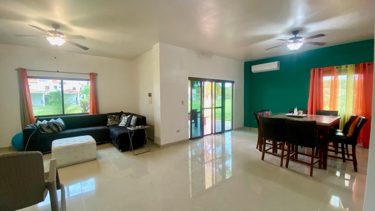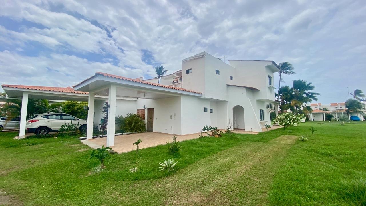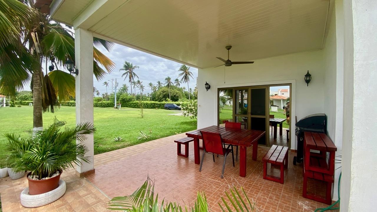 4 bedrooms duplex villa with large terraces and ocean view, fully furnished and ready to move in. THE LOCATION Located 100 meters from the ocean and the beautiful beach of El Rompío, with its fishermen and typical restaurants, here is a nice and friendly complex named “Los Jardines del Rompio”. It is a gated community with only 35 houses and a large swimming pool. We are about 15 minutes from Chitre and 20 minutes from Las Tablas. The complex has two different types of houses : the 2 bedroom model and the 3 bedroom model. They all have two stores with a large living area and terrace downstairs and the two or three bedrooms upstairs, each room with private bathroom. ANd both models have a maid’s quarter with a full bathroom. THE PROPERTY This beach villa has 259 sqm of construction. The lay out is the following: On the ground floor: •Entrance •Large living-dining room with terrace and garden access, •Nice kitchen, fully furnished and equipped, •Separate WC with basin, •Large covered terrace with dining area, barbecue, and open view, •Small interior courtyard with laundry space, •Maid’s quarter with complete bathroom, •Storage, •Covered parking. First floor: •Three large bedrooms, each one with private bathroom, •Spacious terrace and balcony with open sea view •Large closets in each room As said, this 4 bedrooms duplex villa is ready to move in. Fully furnished and equipped, the villa has been carefully maintained… THE PROJECT This 4 bedrooms duplex villa is ideal for a large family who would like to live close to the ocean in a private and very friendly complex.