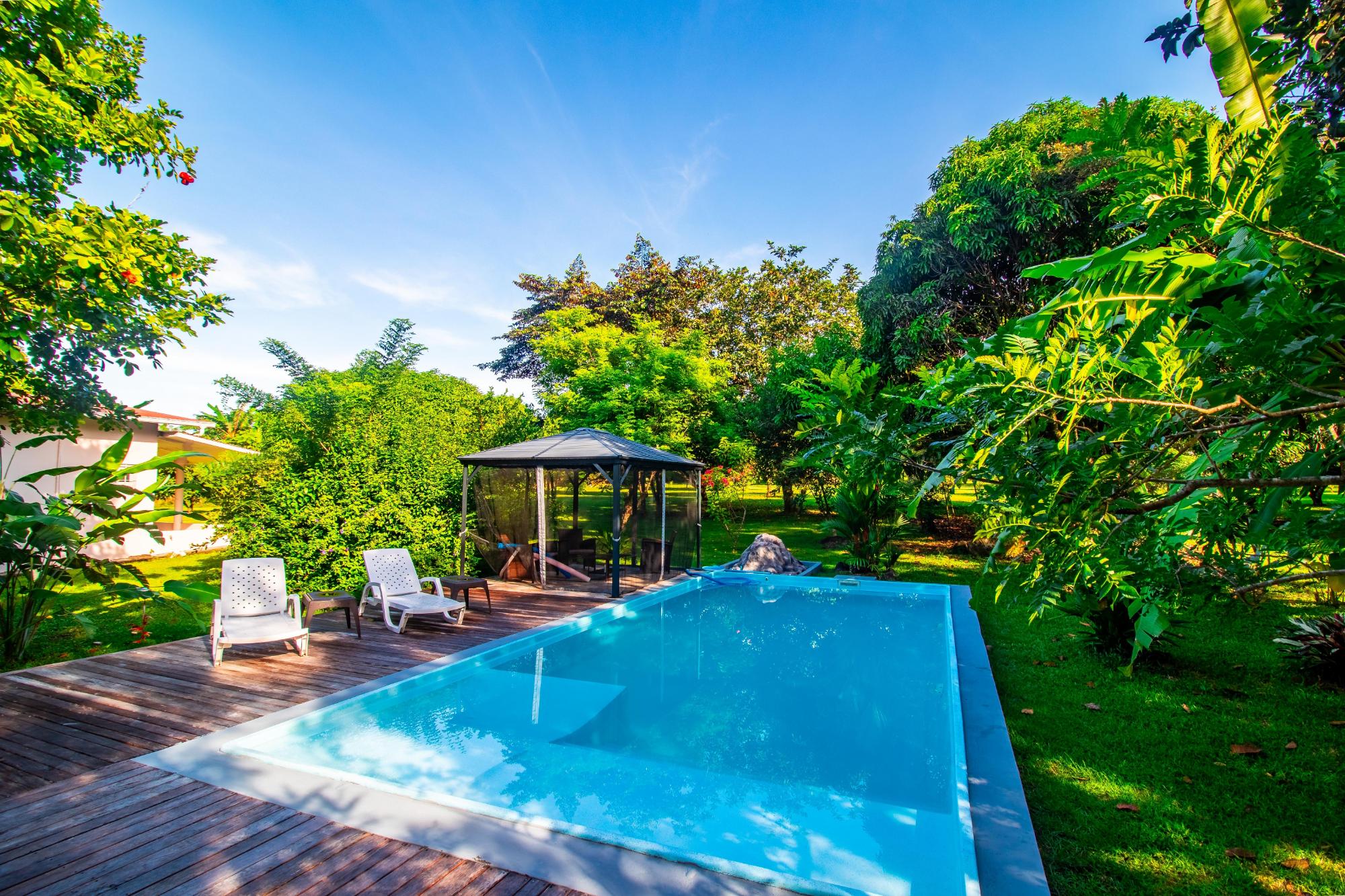 If you’re ready to grow roots in Panama—in every sense of the word—this is the place. Located in Boquete El Frances, in a peaceful greenbelt just outside town offering the perfect balance of privacy, productivity, and connection. This titled 5-acre estate features three separate homes, a fiberglass saltwater pool, and over 40 varieties of fruit trees, edible plants, and tropical flowers. If you’ve been searching for land that provides peace, purpose, and potential—this is it. Fully fenced and secured with an electric gate, this lush property feels like your own private botanical garden. A seasonal stream flows through, and the land is already producing abundantly—with mature fruit trees, medicinal plants, a greenhouse, chicken coop, and 20’ container for storage and tools. This isn’t a property that needs to be built—it’s one that’s already thriving. The main house sits peacefully in the heart of the land, surrounded by greenery and mountain breezes. A second home (casita) offers full independence with its own kitchen, laundry, AC, and covered porches—ideal for guests, extended family, or creative work. A third structure, originally designed as a hostel, provides flexible space for a future studio, office, or retreat zone. The centerpiece is the Neptune-brand fiberglass saltwater pool (Atenea model), measuring 4 x 8 meters and set into a raised teak deck. It includes a screened sunroom and outdoor freshwater shower—making it perfect for relaxing, entertaining, or enjoying a morning swim. The pool system is efficient and low-maintenance, operating on a timer with a chlorine generator.