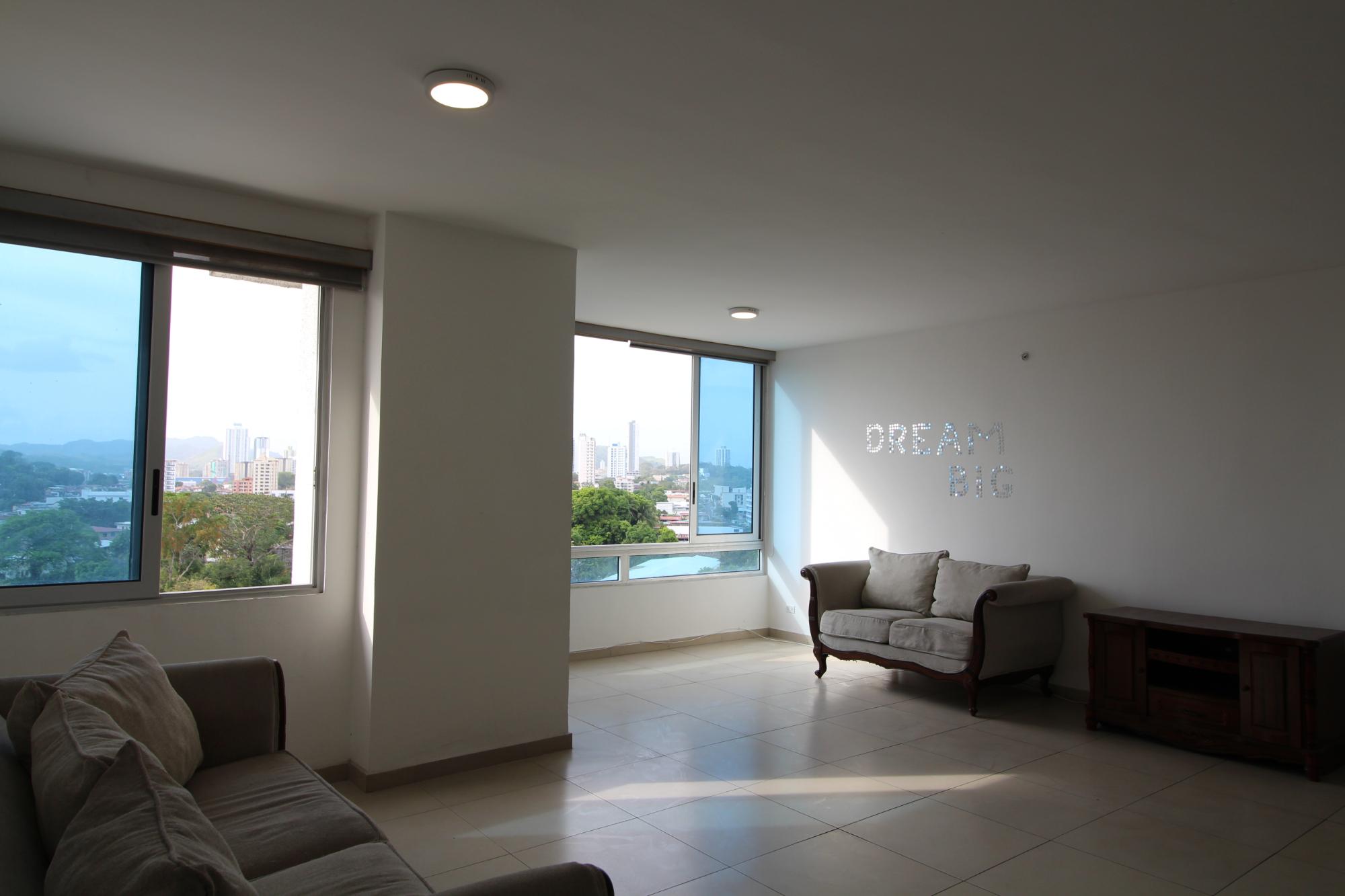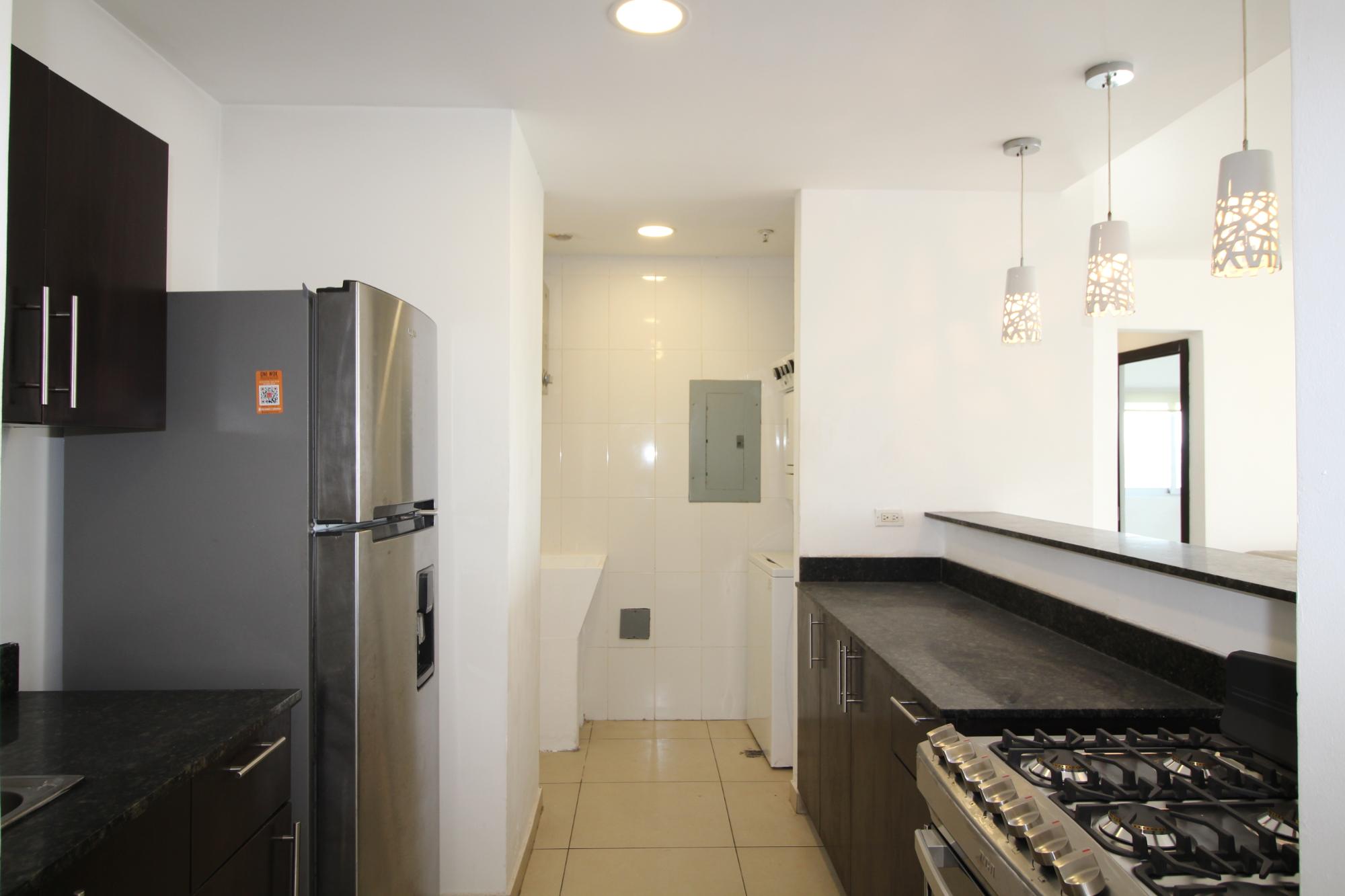 Two bedroom apartment with panoramic views – El Ingenio. This bright apartment welcomes you with a spacious living-dining room, ideal for enjoying time with family and entertaining guests. It offers excellent ventilation and natural light. An open-plan kitchen with a breakfast bar is equipped with storage units. It also has a built-in laundry room. It has two bedrooms with built-in closets, the master bedroom featuring an en-suite bathroom. It also has a second full bathroom for shared use. Appliances included. One parking space is available. The PH Macedonia Towers offers a well-equipped social area: a swimming pool for adults and children, a fully equipped gym, a rooftop terrace with panoramic views, a playground, an event hall, among others. It is conveniently located 300 meters from the Transístmica Highway and the El Ingenio metro station, with access to multiple transportation options and excellent connections to different parts of the city. The area has a wide range of shops and services, providing convenience.