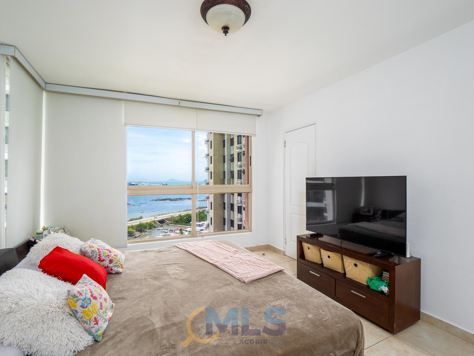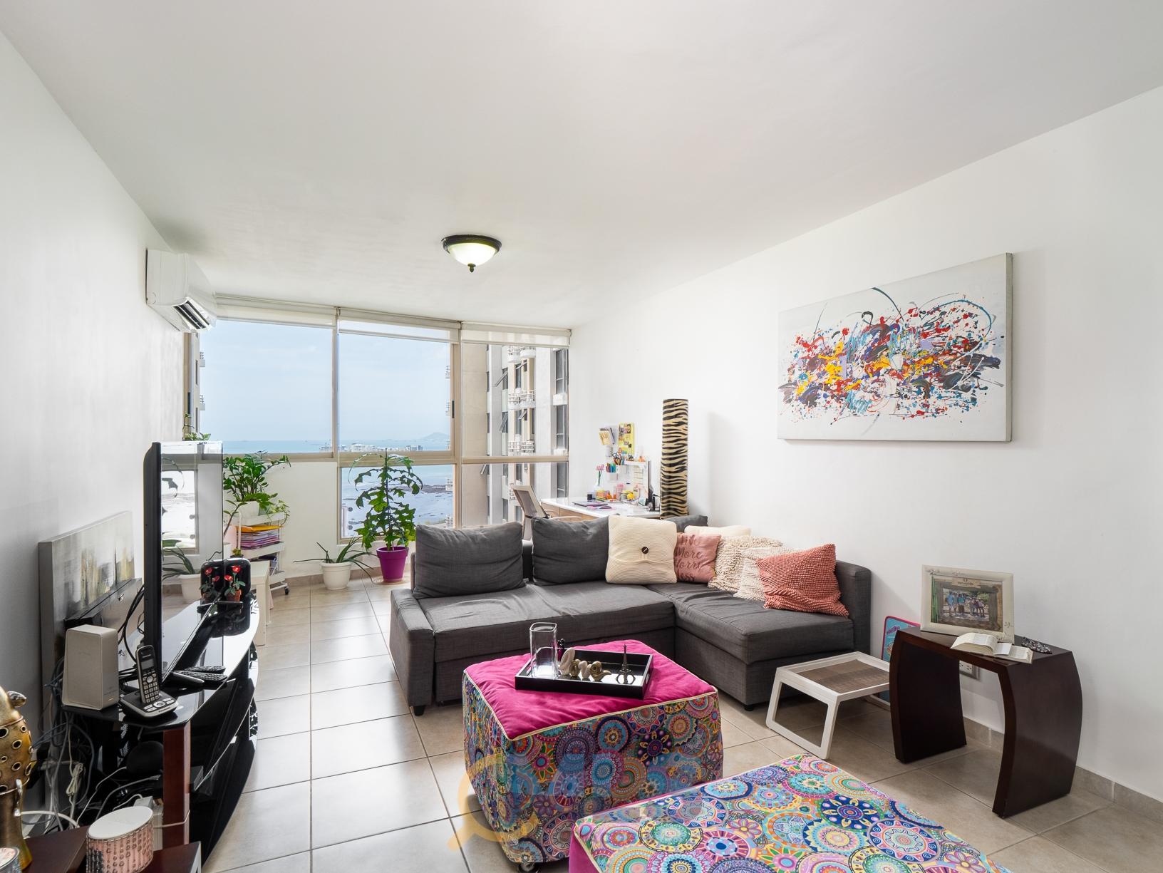 Apartment for sale in PH San Francisco Bay walking distance to everything and with easy access to main avenues. The apartment includes the bonus of 2 parking spaces, and offers partial ocean views, and a maid’s quarters. This model features: Spacious living and dining room. Large windows with partial ocean views. 2 bedrooms, master with private bathroom and walk-in closet. Full secondary bathroom. Kitchen in very good condition. Laundry room. Maid’s quarters. Apart from the 2 parking spaces, includes appliances, air conditioning split units, and some furniture. It is being sold as a residential property or, if desired, as an investment with an excellent tenant. The San Francisco Bay complex has 5 towers with 2 access gates from Via Israel and Punta Pacífica. Towers 100 and 200 share a social area with swimming pools for adults and children, a covered terrace with a BBQ area, a tennis court, and children’s games. Each tower has its own private gym, party room, and a small playground for the little ones.