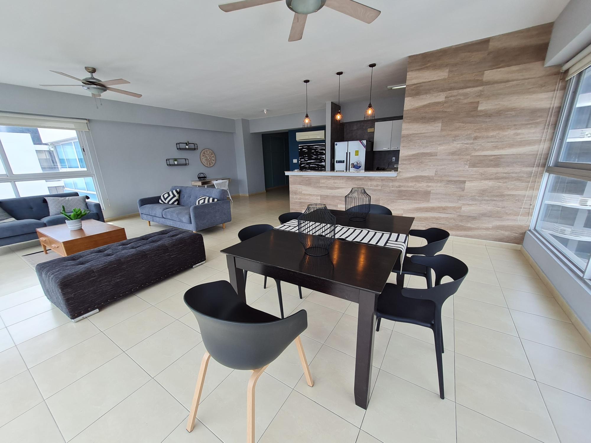 Beautiful apartment for sale on Avenida Balboa, with stunning city views and a prime location. Modern and beautifully remodeled by a professional decorator to the highest standards. The unit features: 138 m2, the largest model in Grandbay Tower; 1 bedroom with walk-in closet; 1.5 bathrooms; spacious living and dining area with floor-to-ceiling windows and spectacular views of Panama City; modern open kitchen; and 1 parking space. Just steps from shopping centers, pharmacies, laundromats, banks, and across from the Cinta Costera (coastal strip), among other amenities. The building boasts a complete social area including a large gym, rooftop pool (with majestic bay views), entertainment room, and party room; plus Wi-Fi in common areas.