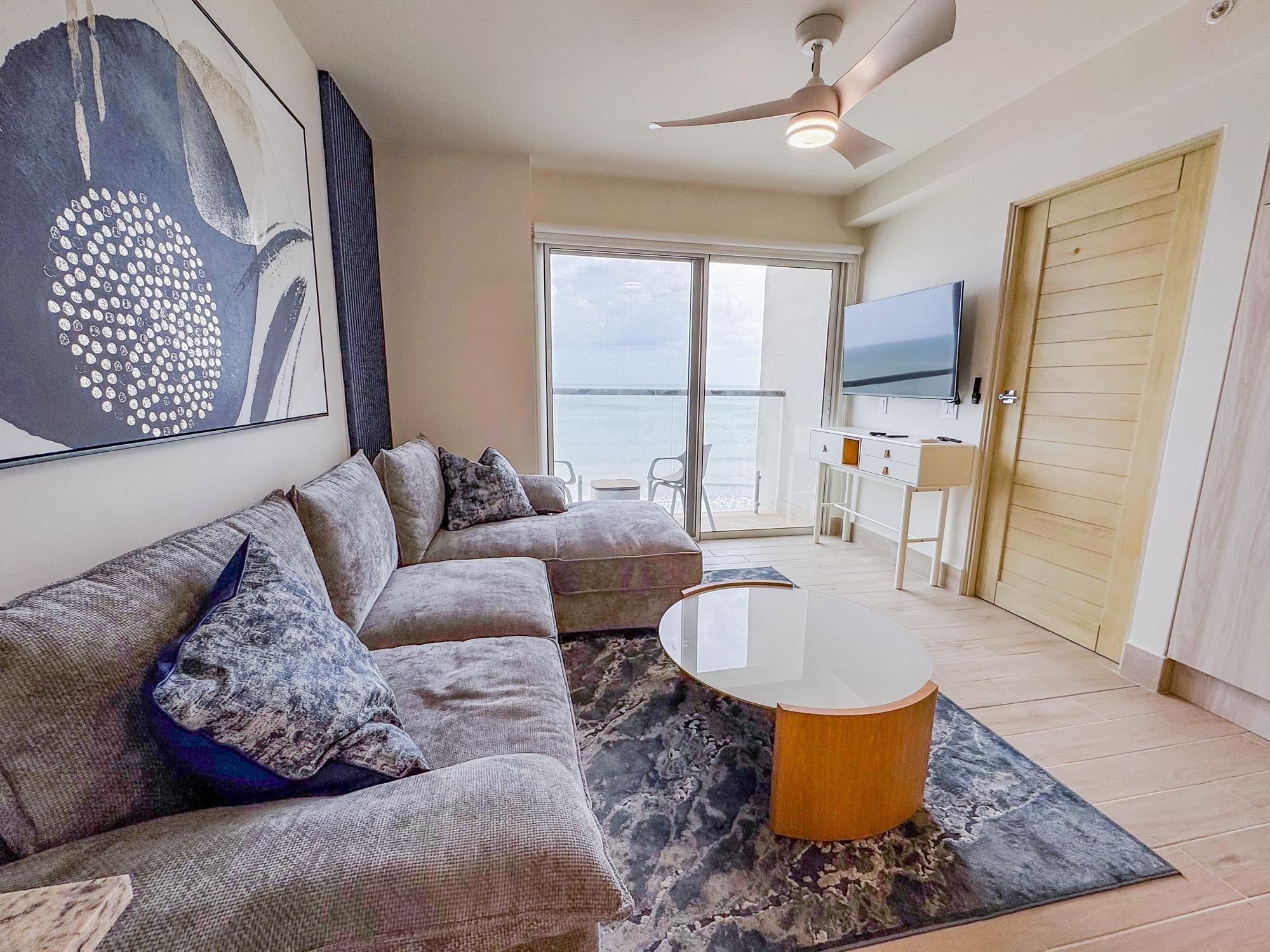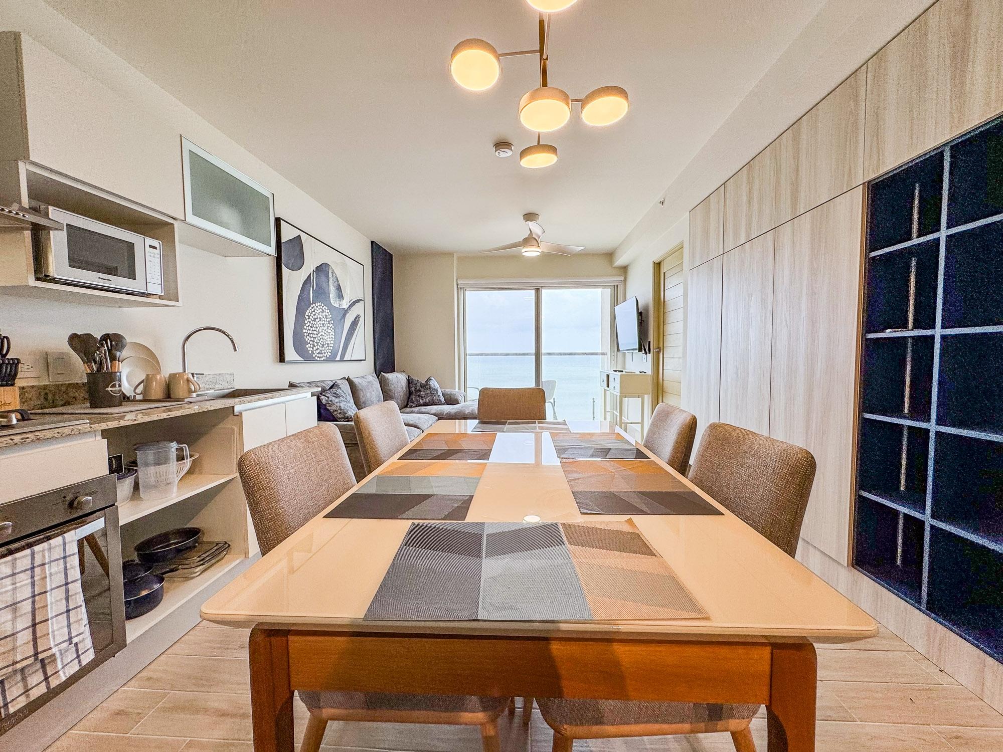 This 2-bedroom, 2-bathroom apartment in Playa Caracol, Punta Chame, offers direct oceanfront views and is part of a newly developed complex. The property is fully furnished and ready for immediate occupancy or rental. Property Details: Layout: 2 bedrooms, 2 bathrooms (with lock-off feature) Ocean Views: Enjoy direct ocean views from the living room, dining area, kitchen, balcony, and master bedroom Fully Furnished: The apartment includes all necessary furnishings: living room couch, dining table with 6 chairs, 2 beds, nightstands, linens, towels, kitchen appliances, and utensils Turnkey Ready: Everything is in place for immediate move-in or for renting out