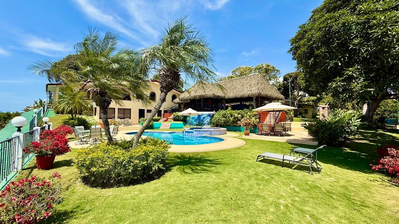 Nestled on a pristine stretch of beach, this oceanfront estate offers unparalleled luxury and comfort across its 500 m² living space. Situated on 5,180 m² lot, the property boasts direct access to the white-sand shore and stunning ocean views, creating a tranquil haven. Main House: The heart of the home is the main house, which consists of four bedrooms. The master bedroom is a true sanctuary, with its own private balcony offering stunning ocean views. Four bathrooms enhance comfort for family and guests alike. The living room and dining room connect to a modern kitchen equipped with essential appliances. For visitors and staff, the estate includes a charming guest house with two additional bedrooms and two bathrooms. A separate staff quarters, with its own bedroom and bathroom, can accommodate up to four staff members. Another staff house, with two bedrooms, a bathroom, and a kitchen. The Best of the Outdoors The outdoor space is where this property truly shines, featuring a huge gazebo with a low-maintenance synthetic roof and a spacious bar, perfect for entertaining under the stars. Guests can relax and unwind in the heated jacuzzi or take a refreshing dip in the heated pool. For sports and leisure enthusiasts, the property features a half-court basketball court, ensuring plenty of activity and fun. Surrounded by lush landscaping, the yard is accented by mature fruit trees, including avocado, lemon, mango, loquat, and coconut, providing fresh produce at home. A whimsical treehouse invites children to explore and play.