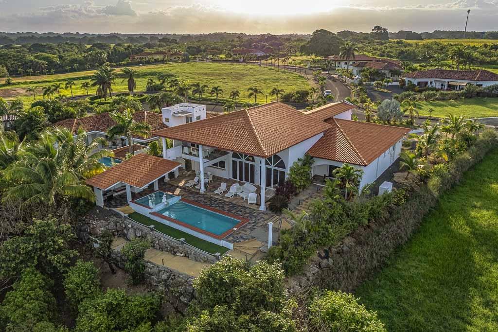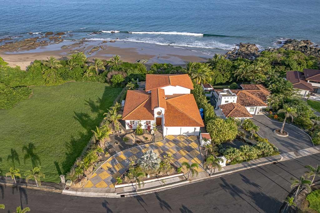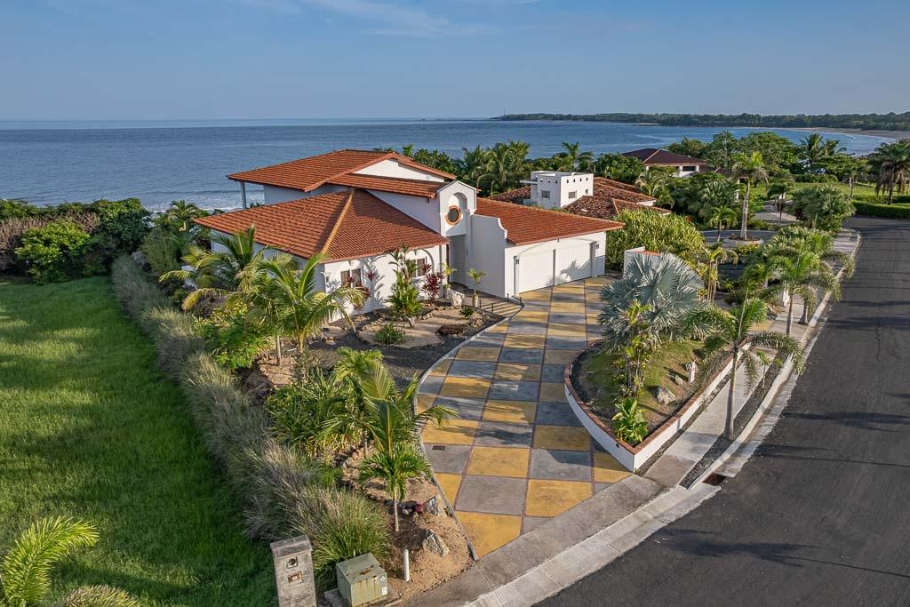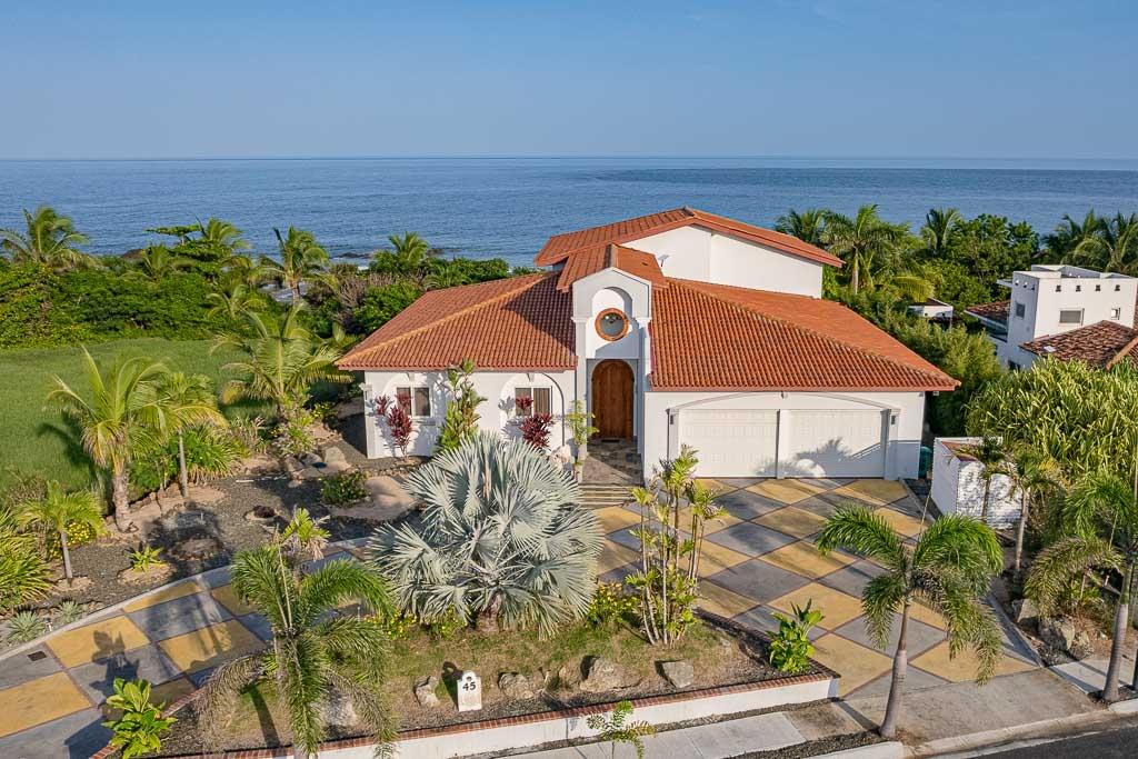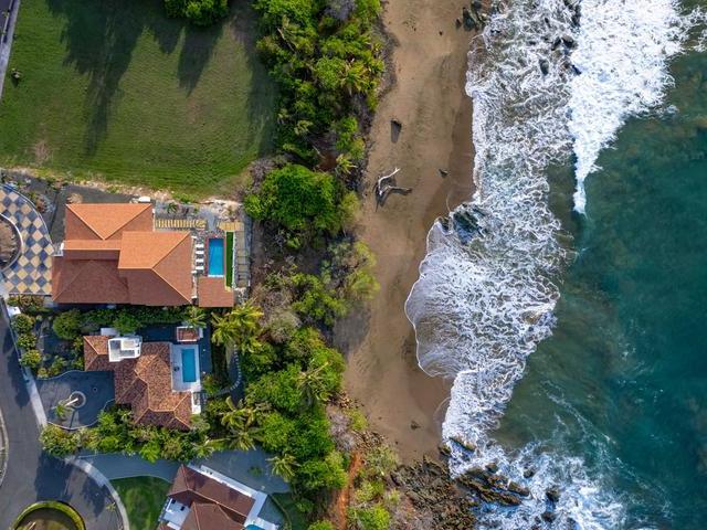 Experience the epitome of tropical coastal luxury with this stunning, brand-new beachfront villa located inside Pedasi’s premier gated community- Costa Pedasi. The home boasts high-end appliances, exquisite furniture imported from Thailand, a large, sparkling swimming pool, a relaxing jacuzzi, a private office on the 2nd floor, and a spacious 2-car garage with plenty of storage space. If you enjoy the finer things in life, this beachfront home in Pedasi offers an unparalleled lifestyle of convenience and comfort. Entering the home through the grand arched wooden doorway, you are greeted by a long, elegant hallway of porcelain tile and 6.5-meter-tall ceilings. Immediately to the left is the first guest bedroom, complete with an en-suite bathroom and a private office space. To your right is the interior access to a very large garage and storage area. This incredible indoor space is rare to find in Pedasi and provides secure storage for vehicles and other recreational equipment. You’ll also find separate storage rooms with access panels for the breaker system and home security system.