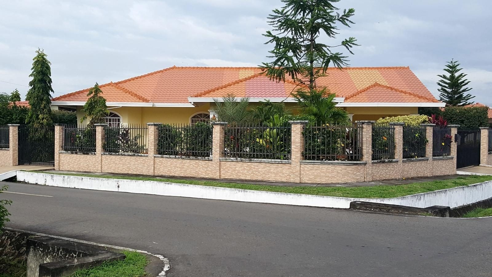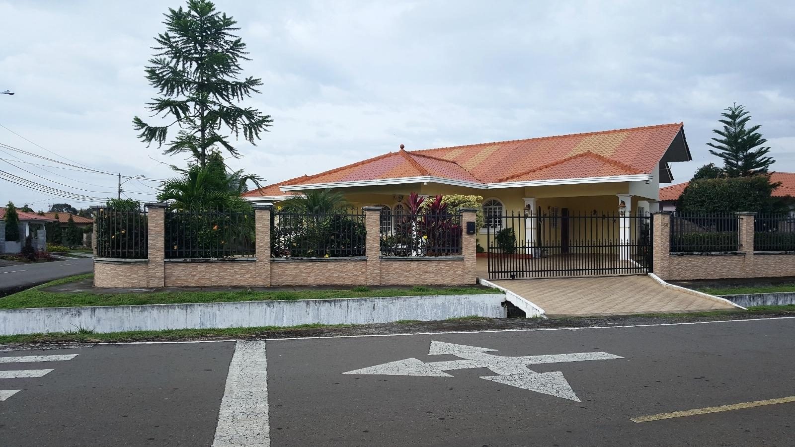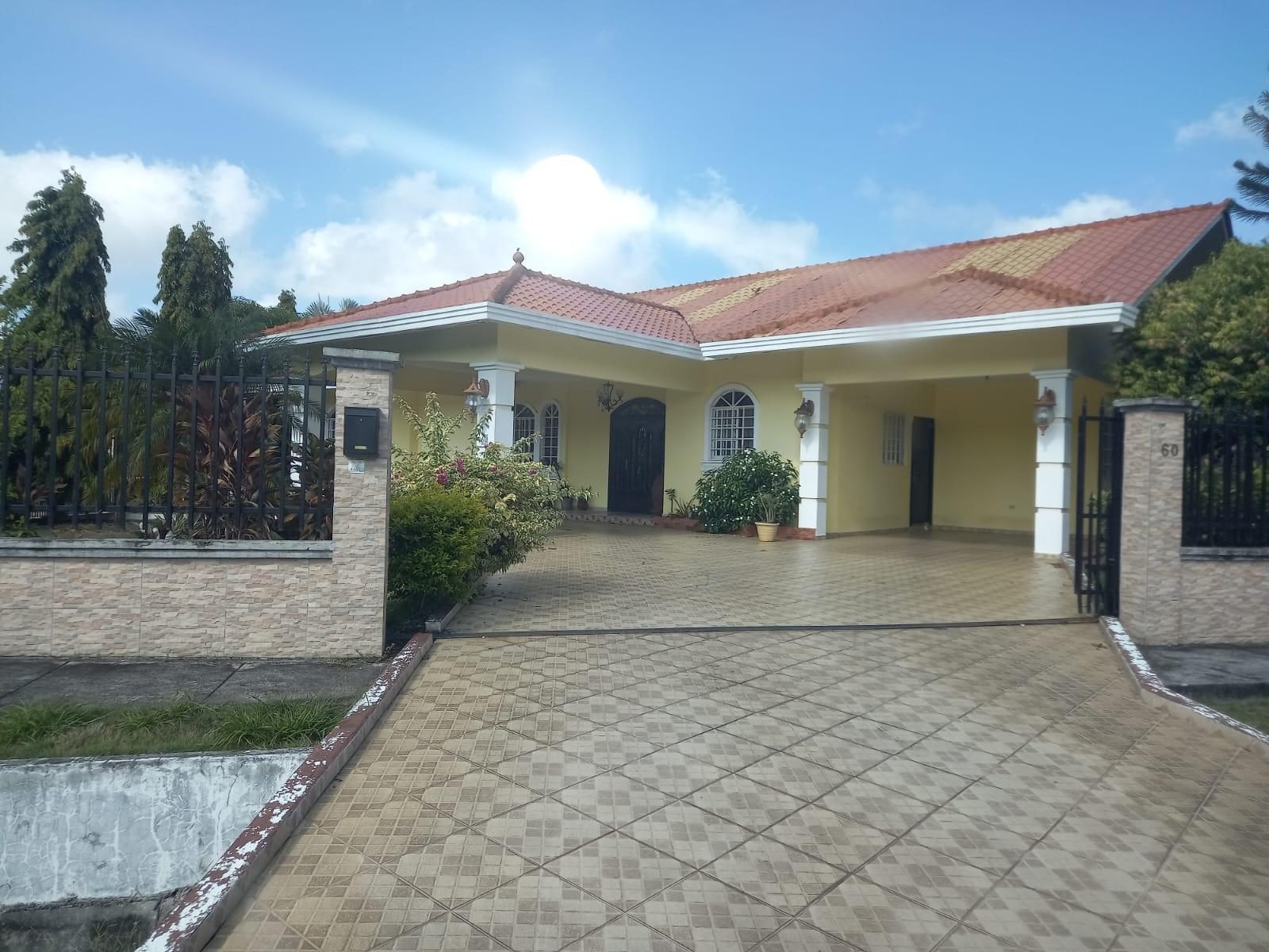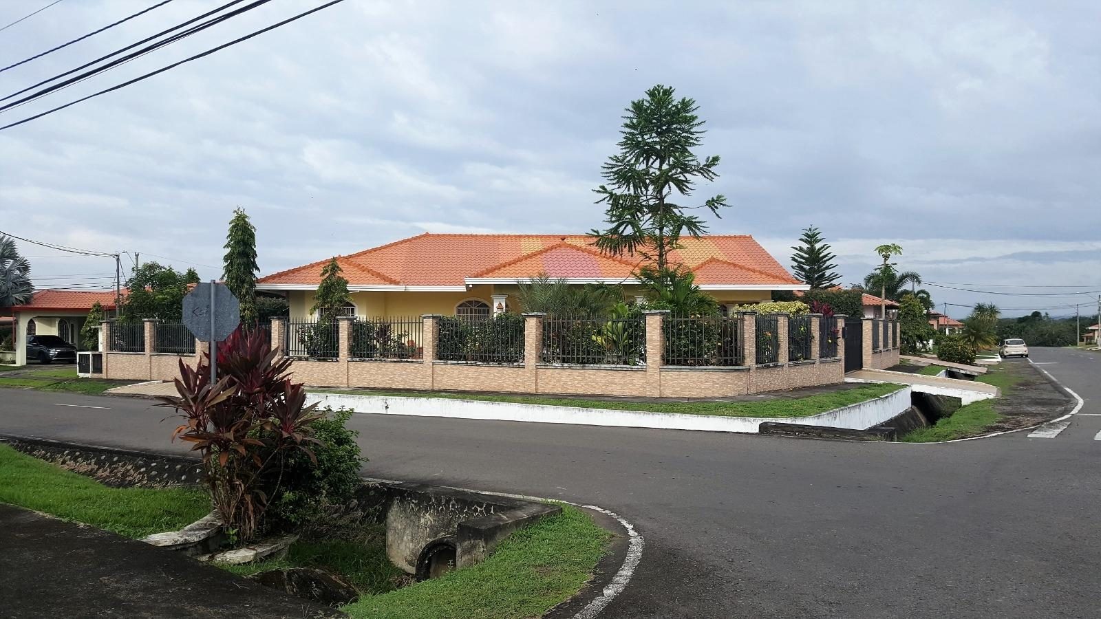 Beautiful house for sale with excellent location. You will love to live in this super quiet residential area, with a park for the family, just 10 meters from the Inter-American Highway, close to shops, restaurants, private and public hospitals. The house has 3 bedrooms, 2 full bathrooms, living room, dining room, kitchen, closed laundry, service room and bathroom, walking closet, storage room. It has excellent finishes such as the gypsum ceiling in all areas with relief figures, French-type windows and railings, ironwork-type steel main door, Toledo-type metal roof roof enamelled in tile red, porcelain tile floors, furniture wooden in the kitchen and wooden clothes storage. You can enjoy with your friends and family the recreational area of the mini bar with 1/2 bathroom and a small terrace with a jacuzzi outside the house and garden. The house is fenced with an access gate at both entrances to the garage with indoor parking for 2 cars. Additionally, it has a burglar alarm, split air conditioners, stainless steel washer and dryer as added value.