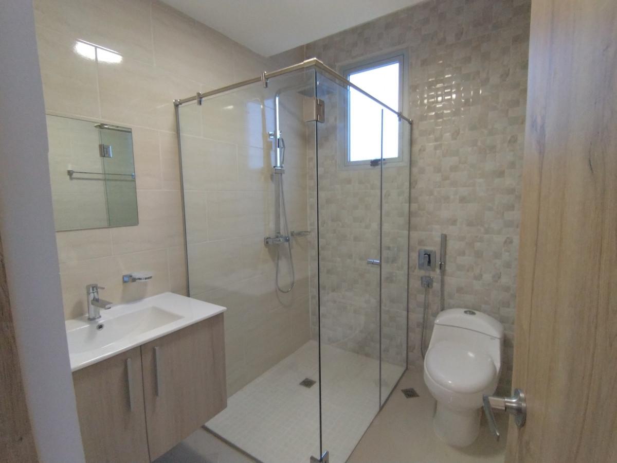 New apartment located at the highest point of Hato Pintado in the city center on a cul-de-sac, a few meters from 12 de Octubre Avenue, the Metro station, and numerous businesses such as Arrocha, Smart Fit, El Rey Supermarket, and Do It Center. The project features visitor parking, a luxurious lobby, a gym, a party room, a children’s play area, a pet park, and a beautiful pool with city views. The apartment features an open kitchen, living/dining room, balcony, laundry room, three bedrooms, two full bathrooms, light fixtures, roller shades, appliances, Panasonic inverter air conditioners, and a parking space for two cars in level E100 and storage unit on level S200. It is ready for immediate occupancy with its electricity installed.