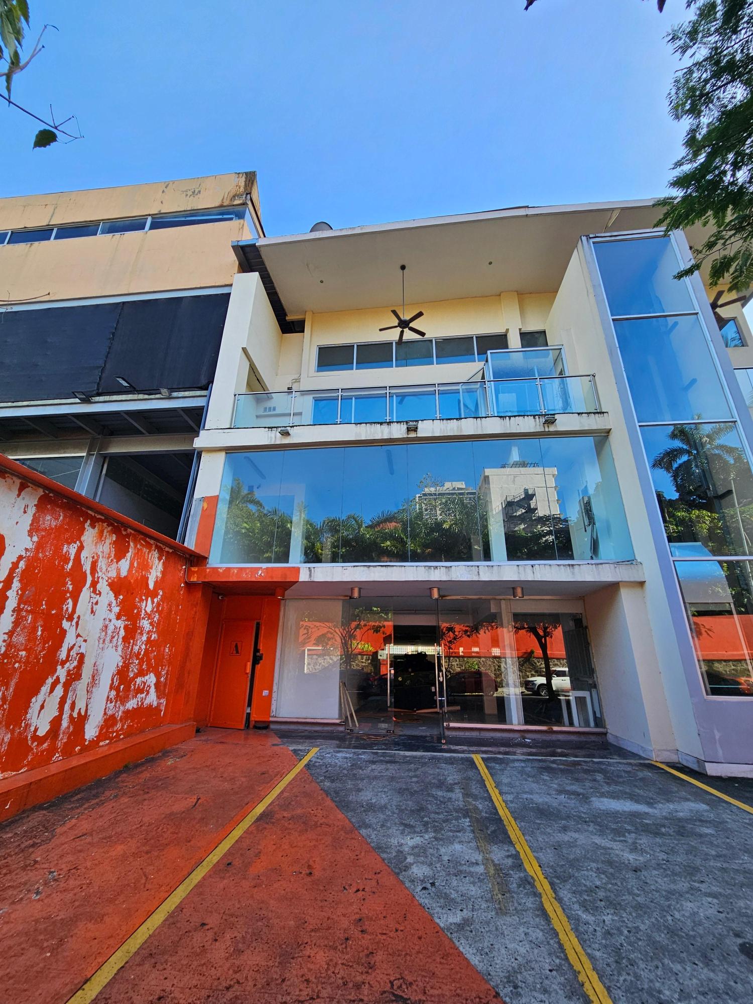 Three-story building for sale near Balboa Avenue, close to restaurants, main roads and commercial areas, ideal for offices, has 9 bathrooms, elevator, 8 covered parking spaces, air conditioning.