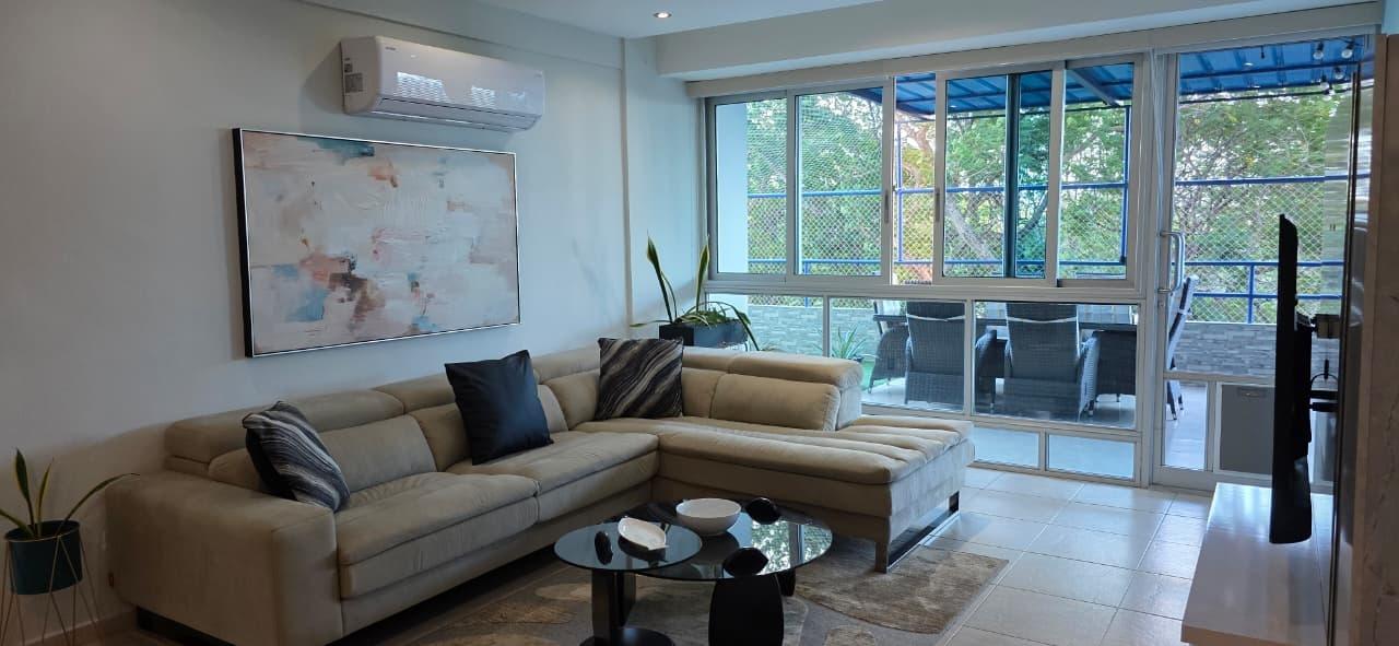 Surrounded by nature and just steps from the beach, this elegant apartment offers a lifestyle centered on comfort, tranquility, and well-being. Located on the fourth floor, it features open views of lush greenery and natural surroundings, with a subtle glimpse of the ocean that enhances natural light and a sense of spaciousness. The property offers 100 m² of interior living space complemented by a generous 50 m² covered terrace, ideal for creating versatile, comfortable, and functional social areas perfect for relaxing or entertaining. The layout includes two bedrooms and two bathrooms. The primary bedroom features a private bathroom and walk-in closet, providing privacy and comfort. The recently remodeled German kitchen blends contemporary design with high functionality, making it a focal point of the home. The apartment is sold fully furnished and equipped with appliances and also includes a special door for dogs and cats, ideal for those who consider pets an integral part of the family. Its immediate proximity to the beach, combined with a peaceful natural setting, makes this property an excellent option for full-time living or as an investment.