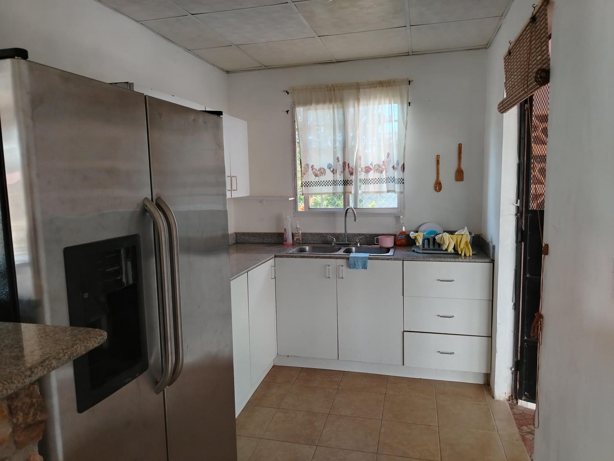 This property is located in the peaceful community of Vista del Río, Antón, Coclé, on a flat lot of 616 m² with 85 m² of construction. The house includes two bedrooms and two bathrooms. The layout of this house includes a living room, dining area, and a kitchen separated by a breakfast bar. The spacious terrace extends the living area outdoors, providing a relaxing spot to enjoy the nature and river views. The house is located just 2 meters from the Interamericana highway, ensuring easy access to nearby areas. Coconut trees and ornamental plants are present on the property, contributing to the peaceful atmosphere. The community is quiet, making it a great place to enjoy the fresh air and calm surroundings of the countryside. This home has a monthly maintenance fee of $40, which covers upkeep of common areas in the community. It is conveniently located near the Interamericana highway, making it easy to access local amenities such as markets, restaurants, and shops. The property offers a great balance of accessibility and rural living.