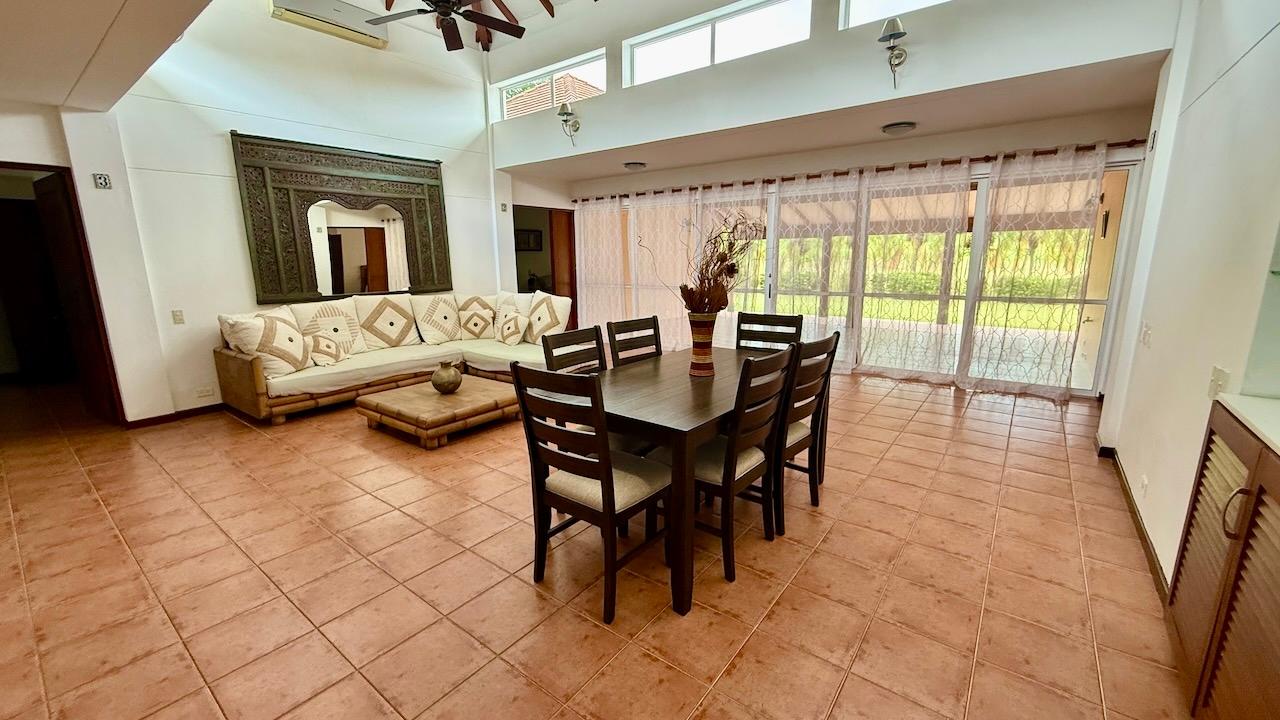 Located in the prestigious Costa Blanca Golf and Villas complex in Farallón, Río Hato. With a construction area of 243 m² on a spacious corner lot of 874 m². 3 generous bedrooms, each accompanied by its own private bathroom. For added convenience, the villa includes a maid’s quarters with a full bathroom and laundry room, making everyday living easier. One of the highlights of this villa is the large covered terrace, ideal for al fresco dining or simply taking in the stunning views while soaking up the serene surroundings. Conveniently located with direct access to Hole 1 of the Costa Blanca Golf Course, avid golfers will appreciate the proximity to the course and the added benefit of being close to Gate 2 for easy access to amenities. This villa also presents a unique investment opportunity, as it is registered under a company that allows the owner to assign up to three golf memberships to chosen individuals, a feature that can also be transferred to the new owners, offering flexibility and value. The property comes well-equipped with amenities, with a new six-chair dining table perfect for hosting dinner parties or family gatherings, as well as a new dishwasher for efficient cleanup. The kitchen is thoughtfully furnished with cooking utensils and cutlery, so you’re ready for culinary adventures from day one. Whether you’re looking for a peaceful retreat, a golfer’s paradise, or a spacious family home, this fully detached villa at Costa Blanca Golf and Villas is an idyllic choice, combining luxury, comfort, and a prime location in one attractive package. Don’t miss your chance to own this exquisite piece of paradise!