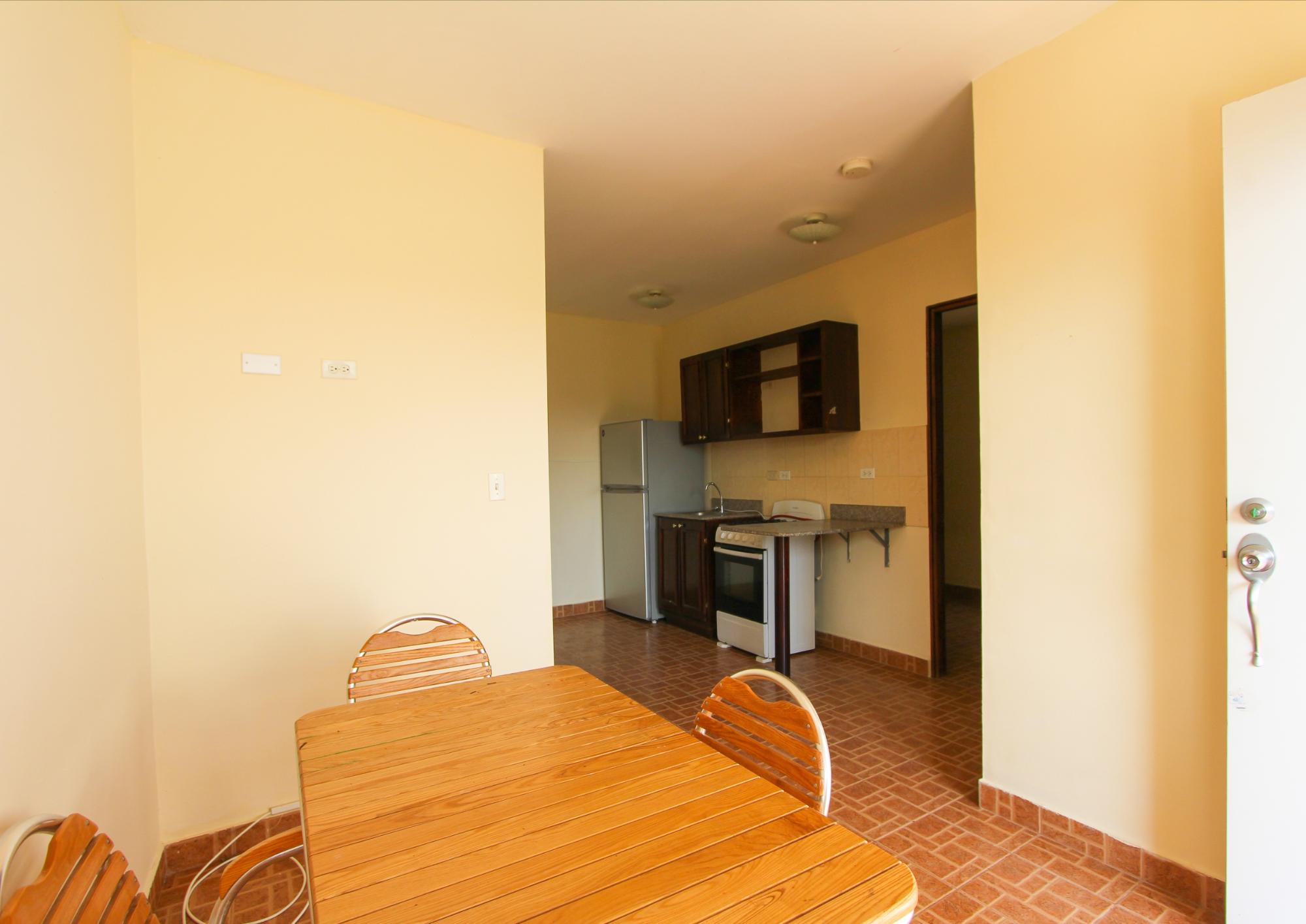 Our apartments are the most centrally located on the market. We have our own water supply, eliminating the stress of running out of this valuable resource at no cost to the tenant. Garbage collection is also free for the tenant. The maintenance of the green areas and the building is impeccable! The property is completely fenced, and each tenant receives an exclusive parking space within the property at no additional cost. All apartments have two bedrooms, a kitchen, a living room, and a shared 7m² terrace. We offer two options: a 6+ month rental for USD 349.00 per month without furniture or appliances, and a 6+ month rental for USD 389.00 per month that includes a refrigerator, a wooden wardrobe in each bedroom, a double bed, a four-seater dining set, and a stove. We also have a short-term rental option of 3 to 5 months for USD 490.00 per month with a refrigerator, gas tank, stove, four-seater dining set, and a single bed. – USD 450.00 for a 3- to 5-month rental without furniture or appliances. For rentals longer than 6 months, a one-month security deposit and payment of the first month’s rent are required. For rentals of 3 to 5 months, a one-month security deposit, payment of the first month’s rent, and the last month’s rent in advance are required. Minimum 3-month rental.