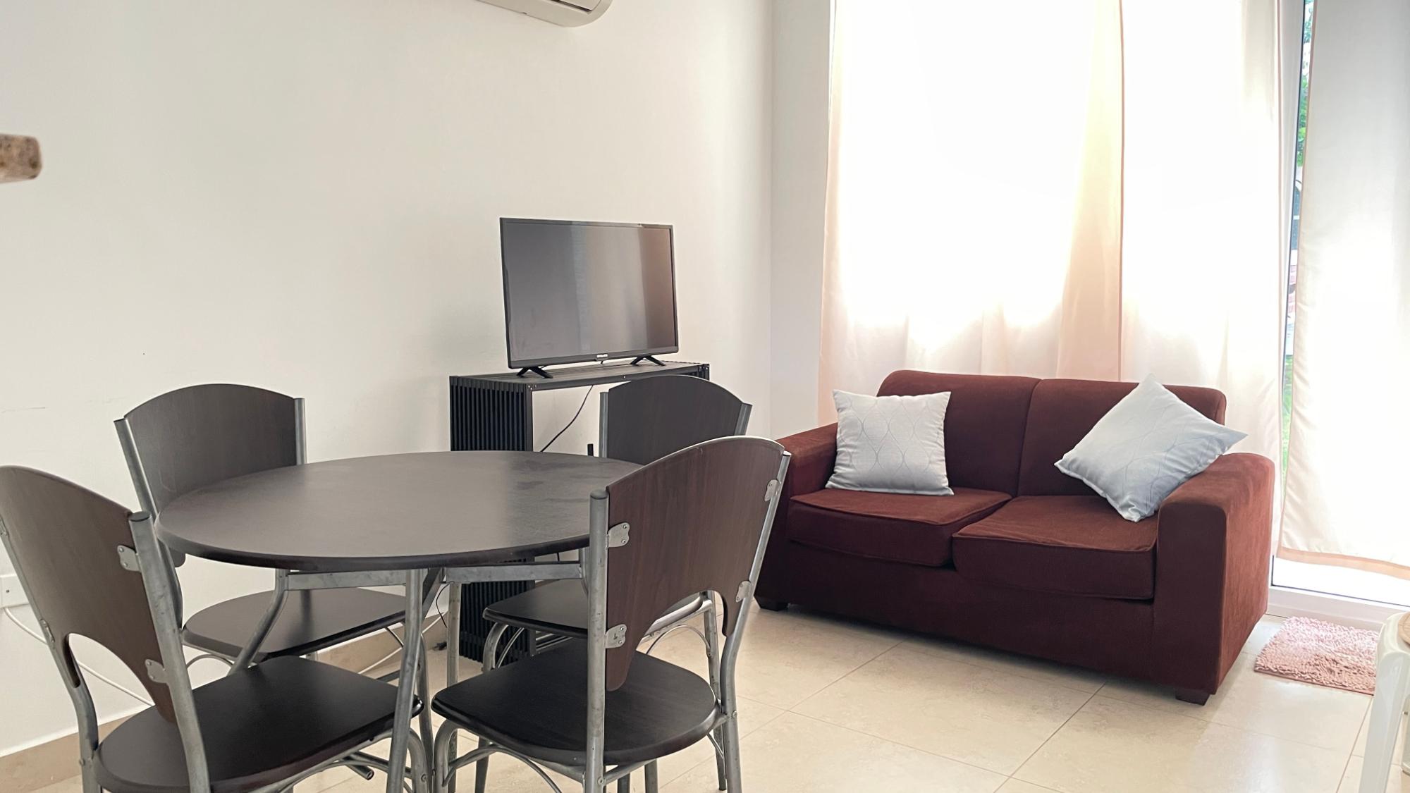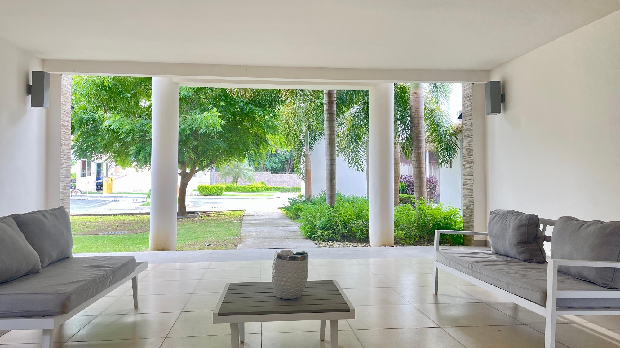 For sale and rent, this cozy ground-floor apartment is located in Coronado, in the PH. Paraiso Village VIP. It features two bedrooms, one bathroom, a living-dining room, a breakfast nook, and an internal laundry room. It also has 24-hour security. It also has two social areas, both with a pool, huts, and showers.