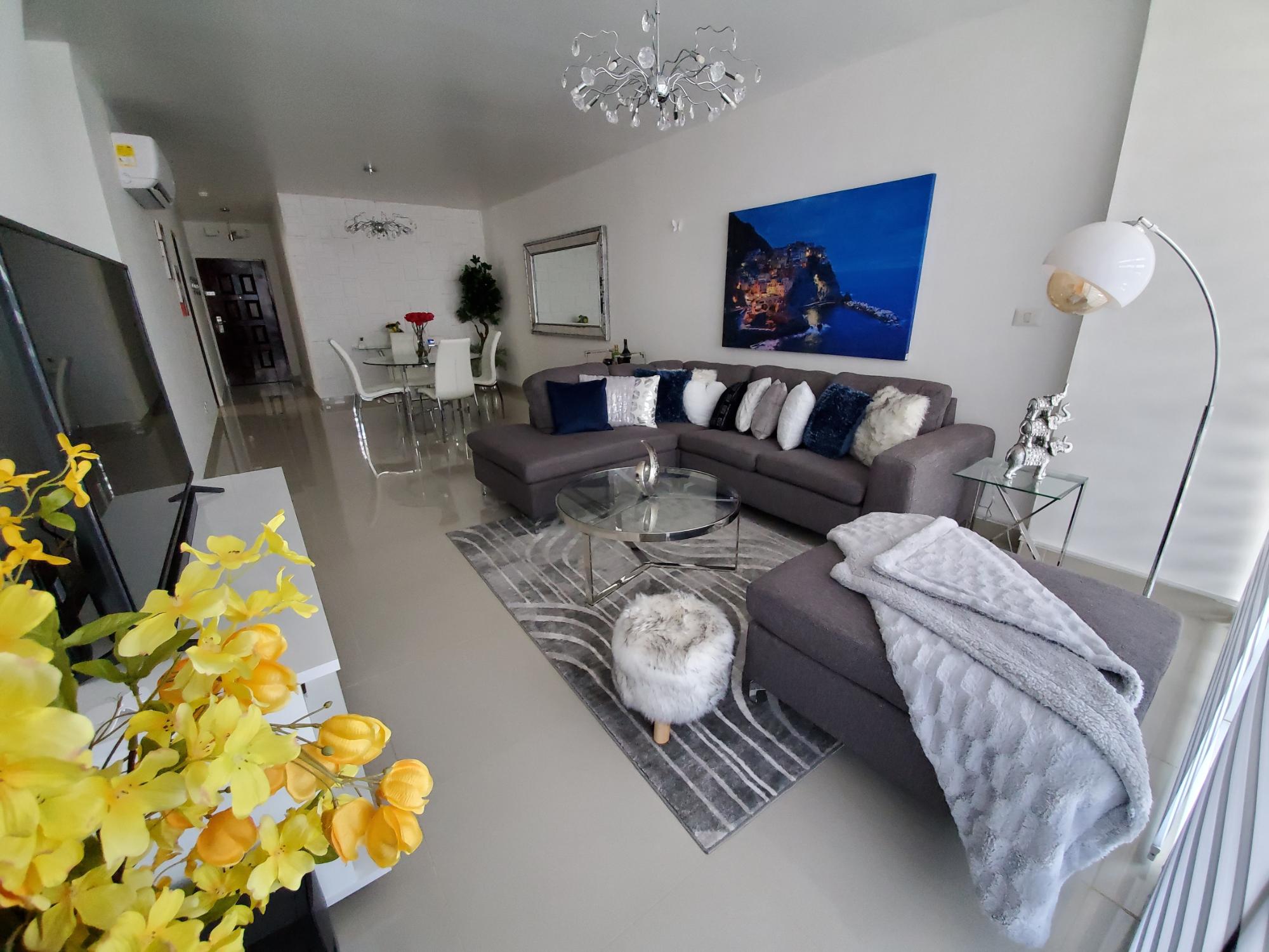 FOR SALE OR RENT FURNISHED APARTMENT IN SAN FRANCISCO ON VIA ISRAEL. PH WATERVIEW With an excellent location, 24-hour security and access to public transportation. close to shopping centers, banks, pharmacies, supermarkets, restaurants, schools, recreational parks, among others. It has 123 square meters 2 bedrooms 2 bathrooms 1 parking Service room and bathroom Living – Dining room FULLY FURNISHED with all the appliances COMPLETE SOCIAL AREA: Swimming pool Gym Party room Indoor play area for children Lobby, 2 elevators, visitor parking.