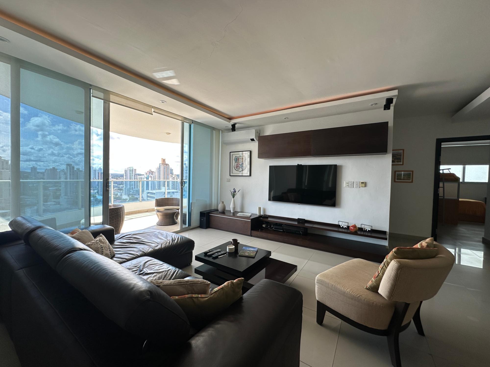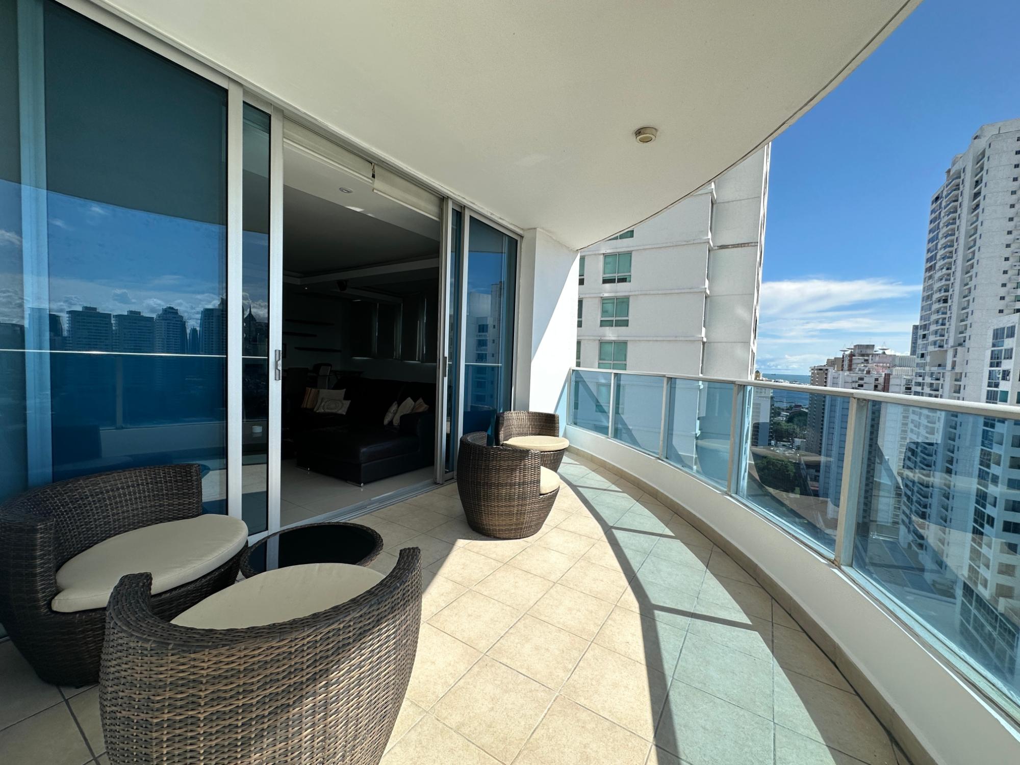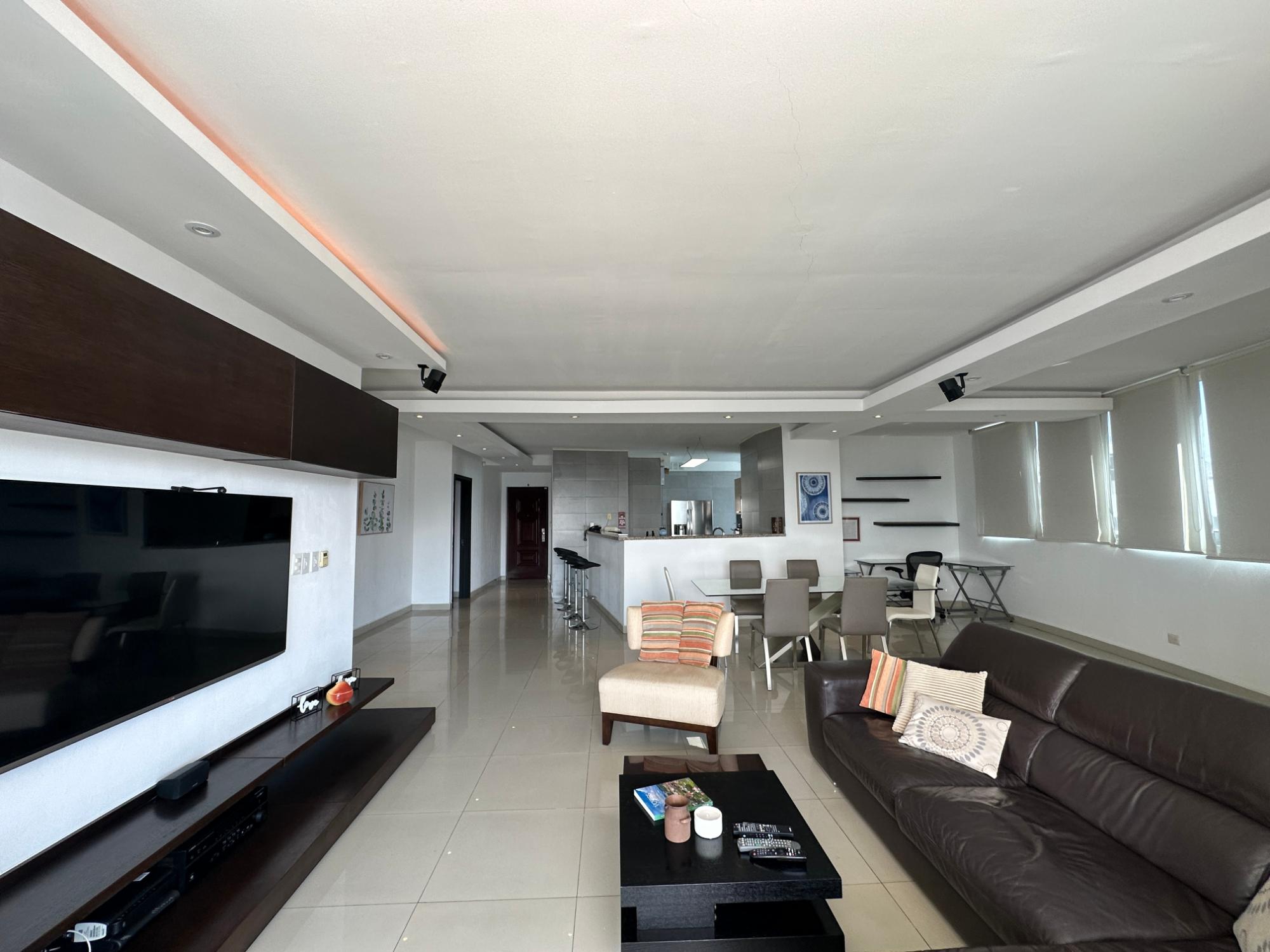 Apartment for sale or rent with option to buy in PH Joy, San Francisco, Panama. Located on 73rd Street near the banking district, restaurants, shopping malls, supermarket, pharmacies, deli, and much more, all within walking distance. – Furnished and fully equipped – 214 m2 – 3 bedrooms – 2.5 bathrooms – Master bedroom with walk-in closet and private bathroom – Full secondary bathroom with access from both secondary bedrooms – Beautiful view of the city – Large balcony – Large living room with counter – Smart system for lights, sound, air conditioning and TV – Split inverter air conditioning with wifi – Open laundry room – Maid’s quarters and bathroom – Blackout curtains – Porcelain floors – Open kitchen with complete appliances and fully equipped breakfast counter – 2 covered parking spaces PH with recreational areas that include a swimming pool, gym, barbecue areas, playground, event room, all recently remodeled, Freshly painted building, 24/7 security Sale $ 395,000 Rent with option to buy $ 2,100