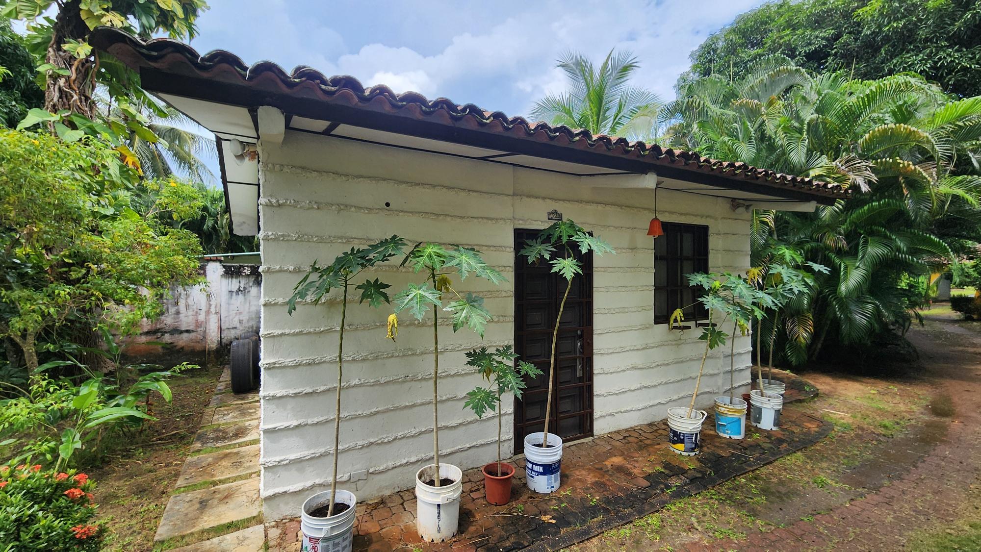 House in Gorgona ☀️Beautiful house built on 3,227.77 m2 of land and has 709.80 m2 of construction ▫️It has a lot of vegetation and open green areas ▫️Price $450,000 ☀️Main House ▫️porch ▫️covered garage, ▫️covered terrace, ▫️living-dining room, ▫️kitchen with breakfast bar, ▫️laundry room, ▫️maid’s quarters and bathroom, ▫️(4) bedrooms one of them with a bar area, ▫️three (3) bathrooms, ▫️barbecue area, ▫️clothesline area, ▫️ swimming pool, ▫️ pool pump room, ▫️ thatched-roof gazebo, ▫️ outdoor shower, ▫️ well pump room, and ▫️ birdcage. ☀️Guest House: ▫️ porch, ▫️ living-dining room, ▫️ kitchen with breakfast bar, ▫️ one (1) bedroom, ▫️ one (1) bathroom, ▫️ laundry room. ☀️Caretaker’s House: ▫️ porch, ▫️ kitchen, ▫️ bedroom, ▫️ one (1) bathroom, ▫️ laundry room, ▫️ two (2) storage rooms.