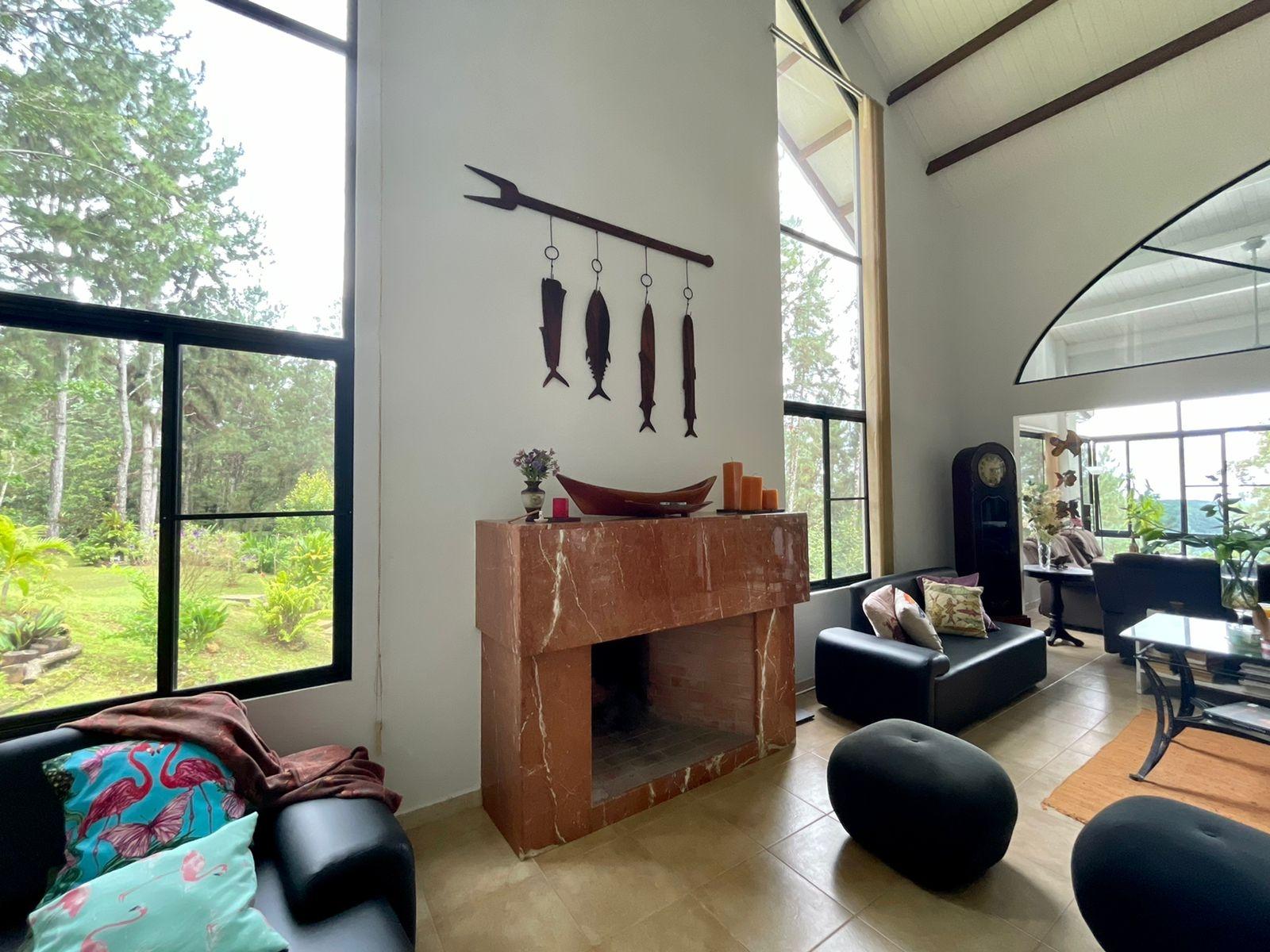 Beautiful house for sale in Altos de Cerro Azul, a natural refuge with a cool climate and spectacular views. Enjoy the tranquility of the mountains, surrounded by lush nature and just minutes from the city. The house has a 2,400 m2 lot and has 2 floors and the same distribution as follows: 600 m2 of construction 2 Master Bedrooms 3 Bathrooms Lower level with two tanks and bathroom Living and dining room Large kitchen Semi-furnished Appliances Beautiful and spacious gardens Beautiful view