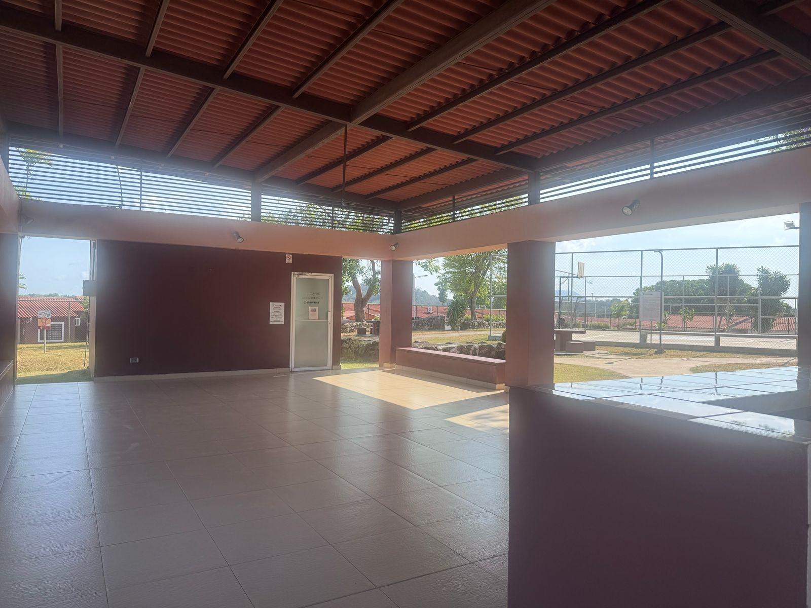 The property is located in a gated community with 24/7 security. It features a living room, dining room, kitchen, three bedrooms, one bathroom, one parking space, a patio, a social area, a playground, and basketball and volleyball courts. The streets are paved. It is also just one kilometer from the Arraiján La Chorrera Highway and close to the Costa Verde Shopping Center, schools, supermarkets, hospitals, clinics, and other amenities.