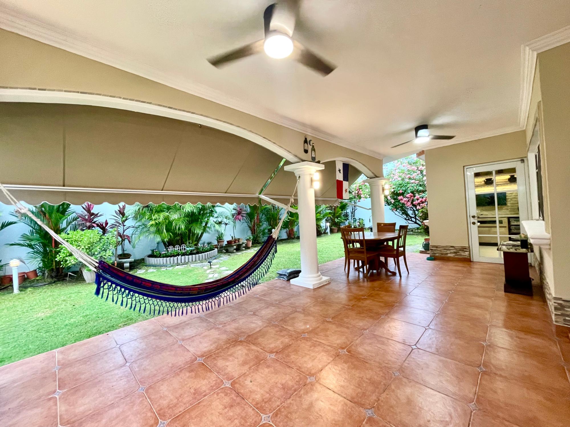 Discover the perfect balance between comfort, elegance, and quality of life in this beautiful single-family home located in Palmeras del Este, one of the most exclusive and secure residential communities in Costa del Este. Property Features: Upstairs: 3 very spacious bedrooms, 1 family room with balcony, and 3 bathrooms. Downstairs: Entrance hall, living/dining room, kitchen, laundry room, maid’s quarters and bathroom, 1 bedroom that can be used as a den, a full bathroom for guests or the downstairs bedroom, a spacious terrace and lovely patio, and a covered garage for 2 comfortable cars (although it can accommodate up to 4 cars). Palmeras del Este is a gated community offering 24/7 security, controlled access, and constant patrols. Social areas with playgrounds, walking trails, sports courts, and event spaces offer a peaceful, family-friendly atmosphere, perfect for those who value privacy and comfort. Strategically located just minutes from the city center and the Southern Corridor, Costa del Este is one of the most coveted areas in Panama for its urban planning and quality of life. Living here offers: Modern shopping centers like Town Center Costa del Este and Atrio Mall, supermarkets (Super 99, Riba Smith, Rey, El Machetazo), private bilingual schools like Colegio Brader, Saint Mary’s School, and the Metropolitan School of Panama, first-class hospitals and clinics like Hospital Pacifica Salud, gourmet restaurants, cafes, gyms, and banks, parks and green spaces like Felipe Motta Park, ideal for walking, running, or biking.
