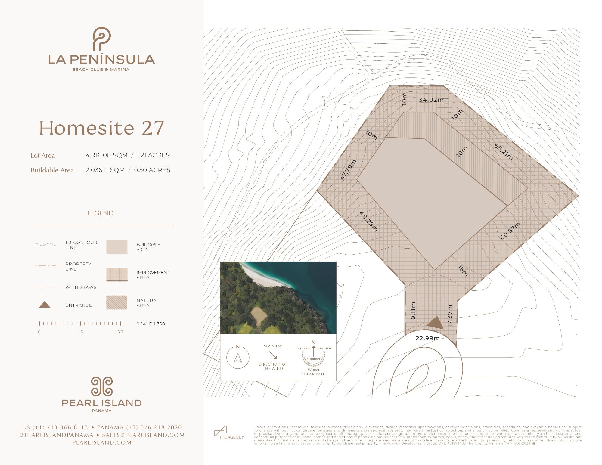 Presenting the final available beachfront homesite on La Peninsula on the private island resort Pearl Island. Dramatically positioned on a promontory, this prime 4916 SQM (1.21 acres) property descends through a canopy of trees to a flat section that meets over 40 meters (131 ft) of beachfront. The north-facing location offers ultimate privacy, surrounded by lush tropical vegetation and pristine nature, with breathtaking sunrises and sunsets. Ideal for building a luxury architectural masterpiece, this homesite provides flexible building guidelines allowing for personalized designs. Positioned near the Beach Club, enjoy access to casual poolside dining, fitness, paddleball, tennis courts, and more. A slip at the world-class marina is available, and the private airstrip offers unmatched convenience. Owning a home on Pearl Island means more than just owning a home on a private island enclave; it offers an unparalleled lifestyle. Only 20 minutes from the mainland, Pearl Island is accessible by ferry, boat, and plane via a private airstrip that accommodates midsize planes. Please contact our sales team for more information on all available homesites. https://pearlisland.com/