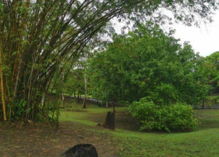 Almost empty lot, except for a small house used as a caretaker. Built of blocks, with a zinc roof, clay floor, iron bars on the windows, and wooden doors. Uninhabitable.