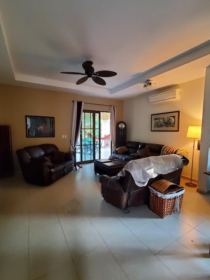 The pristine gated community of Hacienda Pacifica offers quality wide streets, underground infrastructure (water, electricity and fiber optic internet), plus phase 1 also offers a social area with a large pool, tennis and a gym. These are the features of this property: 3 bedrooms 2.5 bathrooms 1500 m2 of well-kept tropical land 243 m2 of total built area 216 m2 of gated area Comfortable open-concept interior Modern kitchen with gas stove and double fridge Breakfast bar Foyer-type entrance with security doors. Light colored tile floors throughout His and hers vanities in master bathroom Elegant bathrooms with soaking tubs Ample storage space Modern air conditioning in all rooms Ceiling fans in all rooms Window coverings Fiber optic internet and cable TV ready 2 car garage with automatic door and remote control Laundry room with washer and dryer Whole house gas water heater 600 gallon water reserve tank with pressure pump Terrace with hammocks and gas BBQ Mature flowers, plants and fruit trees: almond, coconut, moringa, noni, banana, papaya 2011 construction 20 year exemption from November 2011 No land tax due to low declared value of the land Maintenance fees of $190/m Sellers will consider rent to own or similar PH Hacienda Pacifica features: Outdoor social area for family gatherings Tennis courts Fitness center Huge pool with restrooms Hiking trails and Private waterfall for bathing Garbage collection twice a week Underground infrastructure for electricity, water and fiber optic internet Security checkpoint and patrols 24 hours a day, 365 days a year Maintenance fees of $190/m