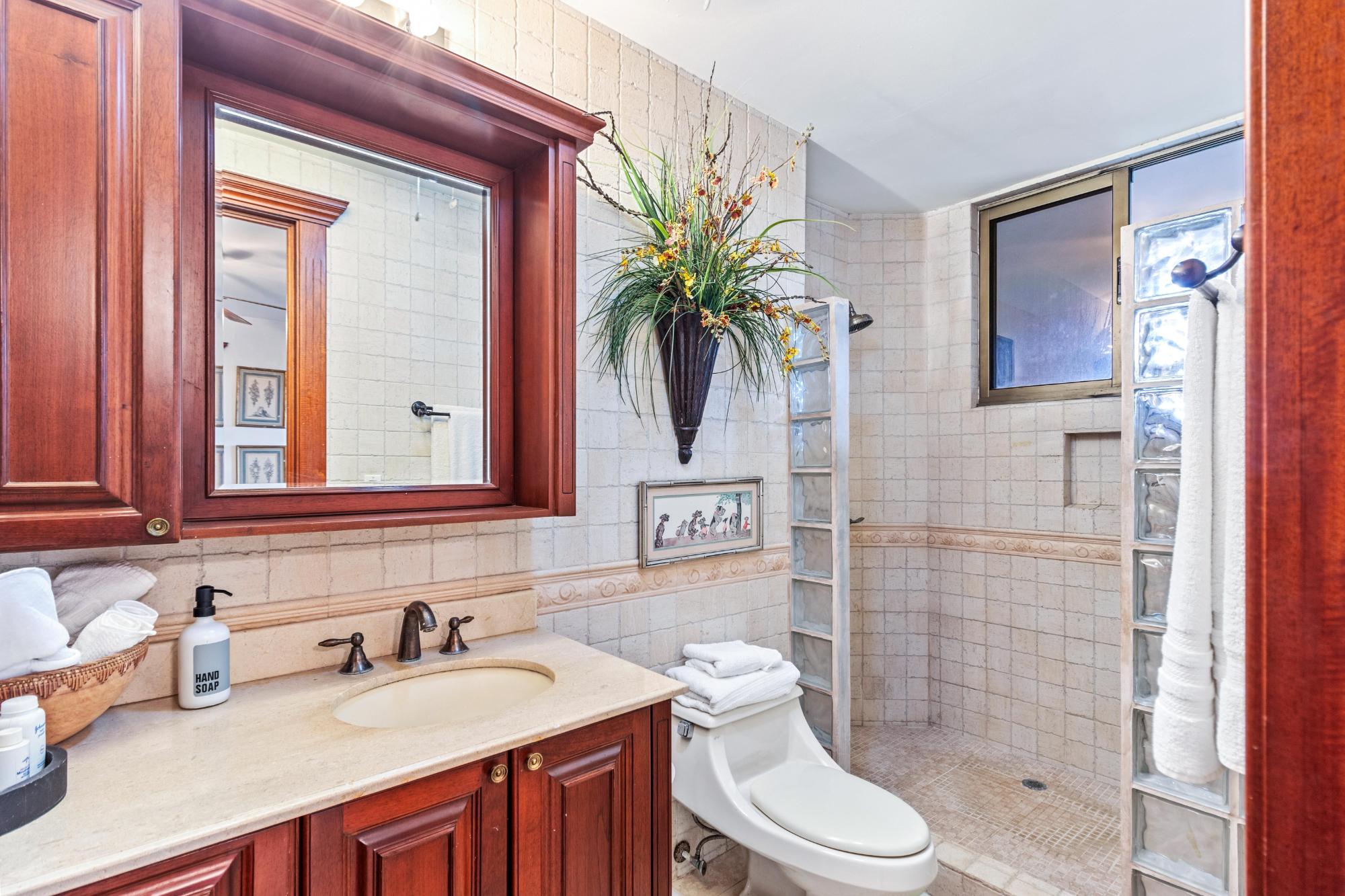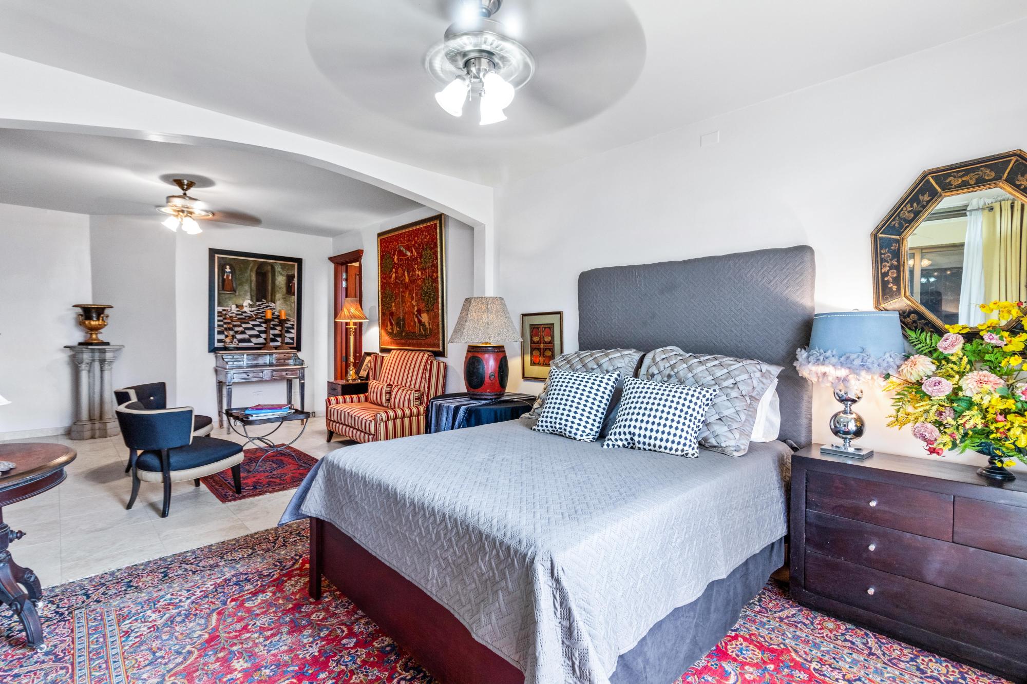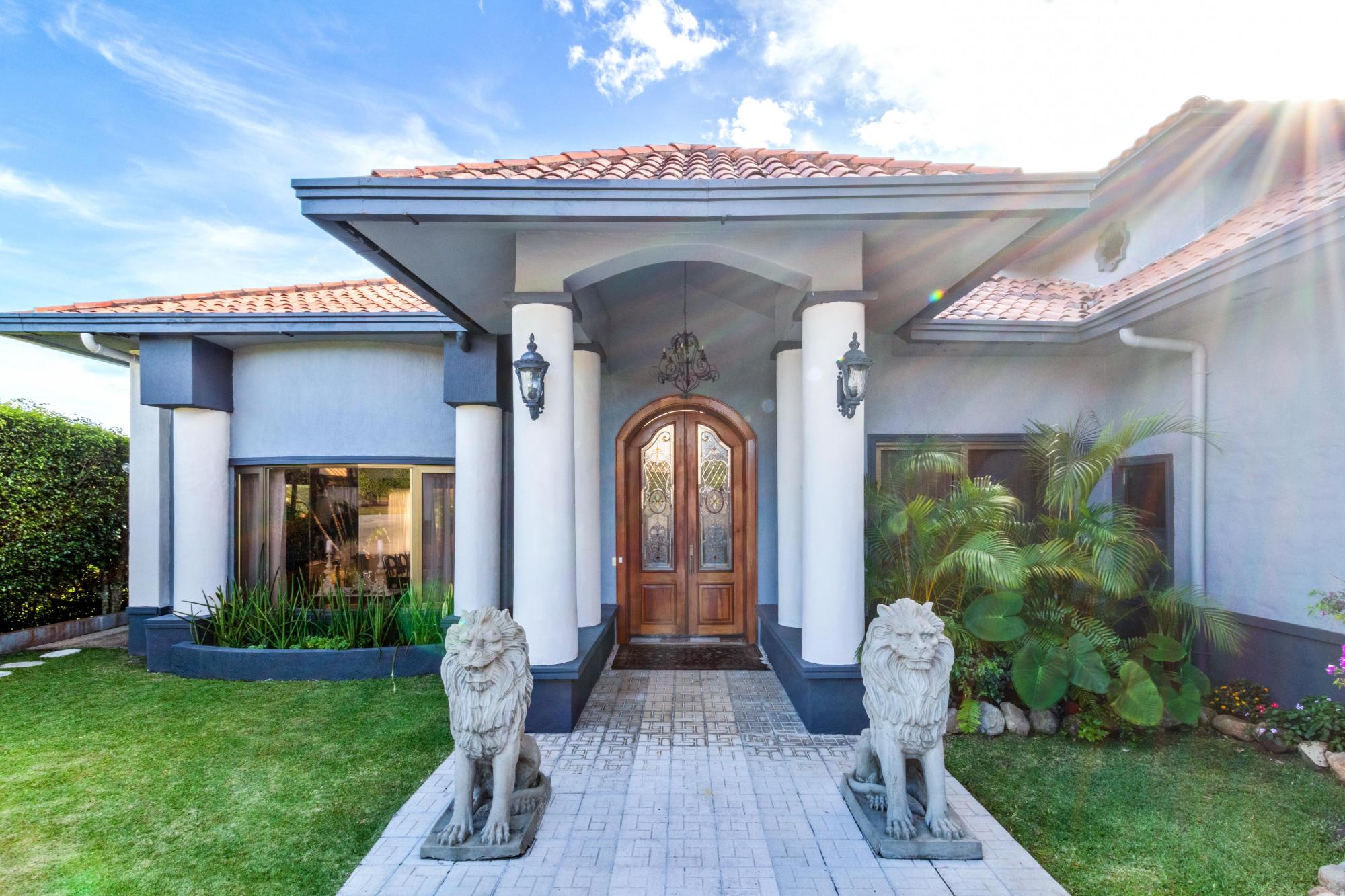 This magnificent mansion in Los Molinos is up for sale. It’s perched on the Canyon offering breathtaking views of the Pacific ocean, Volcan Baru and everything between. This home is true luxury and sophistication with 5 bedrooms, 5.5 bathrooms, 2 pools and a jacuzzi. As you step through the grand foyer, you are greeted with a sense of elegance and sophistication. This masterpiece has marble floors, stunning stain glass windows, and a grand curved staircase that exudes opulence. The formal dining room, perfect for hosting dinner parties or gatherings with family and friends, This stunning house boasts a large kitchen that seamlessly flows into the spacious living room, offering breathtaking views of the sparkling pools. The chef’s kitchen features top-of-the-line Viking appliances and a large walk-through pantry, perfect for all your culinary needs. With impeccable attention to detail and high-end finishes throughout This home has two large guest bedrooms, each boasting their own ensuite bathrooms and a walk-in closet. Joined by a small closed in terrace with views of the garden. Perfect for hosting family and friends to create their own peaceful retreats, they will never want to leave. Head up the grand curved staircase to the amazing master bedroom. This retreat boasts its own terrace, perfect for enjoying your morning coffee or watching the sunset. The spacious bedroom is complemented by a cozy sitting area, ideal for unwinding after a long day. The en-suite bathroom is an oasis in itself, But the real showstopper is the raised solid copper bathtub with breathtaking views of Volcan Baru that will make every bath feel like a spa day.