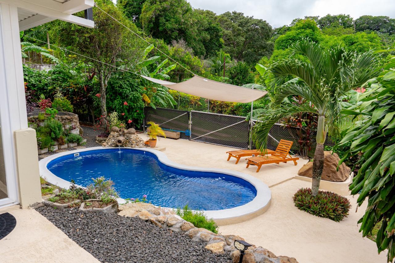 Discover tranquility and stunning mountain views in this fully renovated 3-bedroom, 2-bathroom home, nestled in a safe, friendly community near Chame. This property is the perfect blend of relaxation and adventure! Unwind in Style •Modern renovations with hand-crafted teak furniture throughout •Spectacular mountain views from nearly every room, including the NW view of Picacho Mountain and beyond •Master bedroom with a king bed and private mountain-view balcony •Two additional bedrooms furnished with 4 teak queen beds Indoor & Outdoor Oasis •Sparkling kidney-shaped pool with an 8-year warranty •Multiple patios for entertaining amidst lush, landscaped gardens teeming with hummingbirds and butterflies •Privacy fencing, antislip tiles, and a cool deck for comfort and safety Unmatched Convenience •Fully furnished—move right in! •Casita with kitchenette and bathroom, ideal for guests or rental income •New deep well, ultraviolet water purification, surge protection, and more •Covered carport for 4 vehicles plus additional storage Active Lifestyle & Ideal Location •Close to hiking, parks, and waterfalls •Only 20 minutes from Gold Coast beaches like Coronado and Punta Chame •Enjoy a cool mountain microclimate with breezes and less rain Additional Features •Generators for the home and casita •Air conditioning throughout •Tool shed, motion sensor lights, and outdoor security cameras •Includes appliances: dishwasher, stove, refrigerator, and deep freezer Don’t miss this opportunity to own your slice of paradise! Contact Inside Panama today to schedule your private tour.