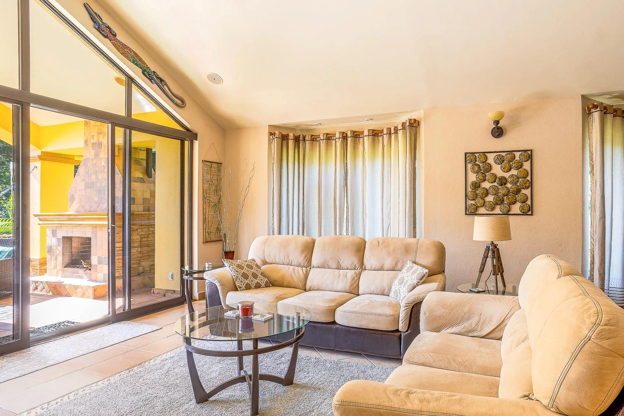 This mountain view home for sale in Alto Lino, Boquete features 339 m² of construction on a 777 m² sloped lot, located just minutes from downtown. The property is designed across two distinct levels, offering a balance of privacy, functionality, and rental flexibility. The main upper level serves as the primary residence and includes a defined living and dining area filled with natural light. Large glass doors open directly onto an expansive terrace with a fireplace, extending the living space outdoors and framing mountain views. The kitchen occupies its own dedicated area and includes a breakfast space suited for everyday use. This level also features a spacious primary bedroom with an ensuite bathroom and direct access to the terrace, along with a half bathroom for guests. A two-car garage adds covered parking and storage. The lower level functions as a self-contained apartment with its own private entrance. It includes a bedroom, an ensuite bathroom, a kitchenette, and a small living area. This level opens onto a generous private patio with mountain views, allowing the unit to feel independent rather than secondary, while preserving privacy for the main residence. The seller is including the furnishings in the sale, and the property benefits from a tax exemption in place until September 7, 2027. Alto Lino runs along Boquete’s scenic inner loop road and is known for its elevation, greenery, and quick access to town. From the property, downtown Boquete can be reached in approximately 2–5 minutes by car.