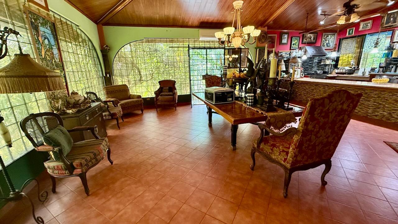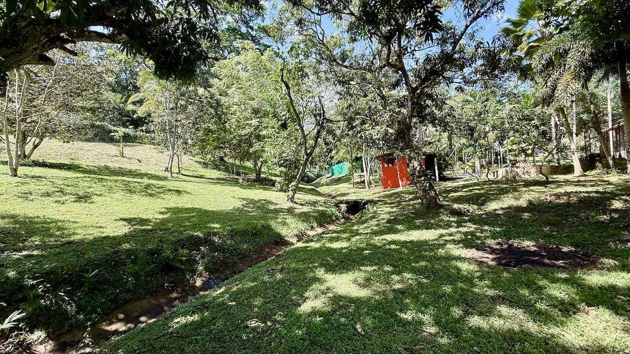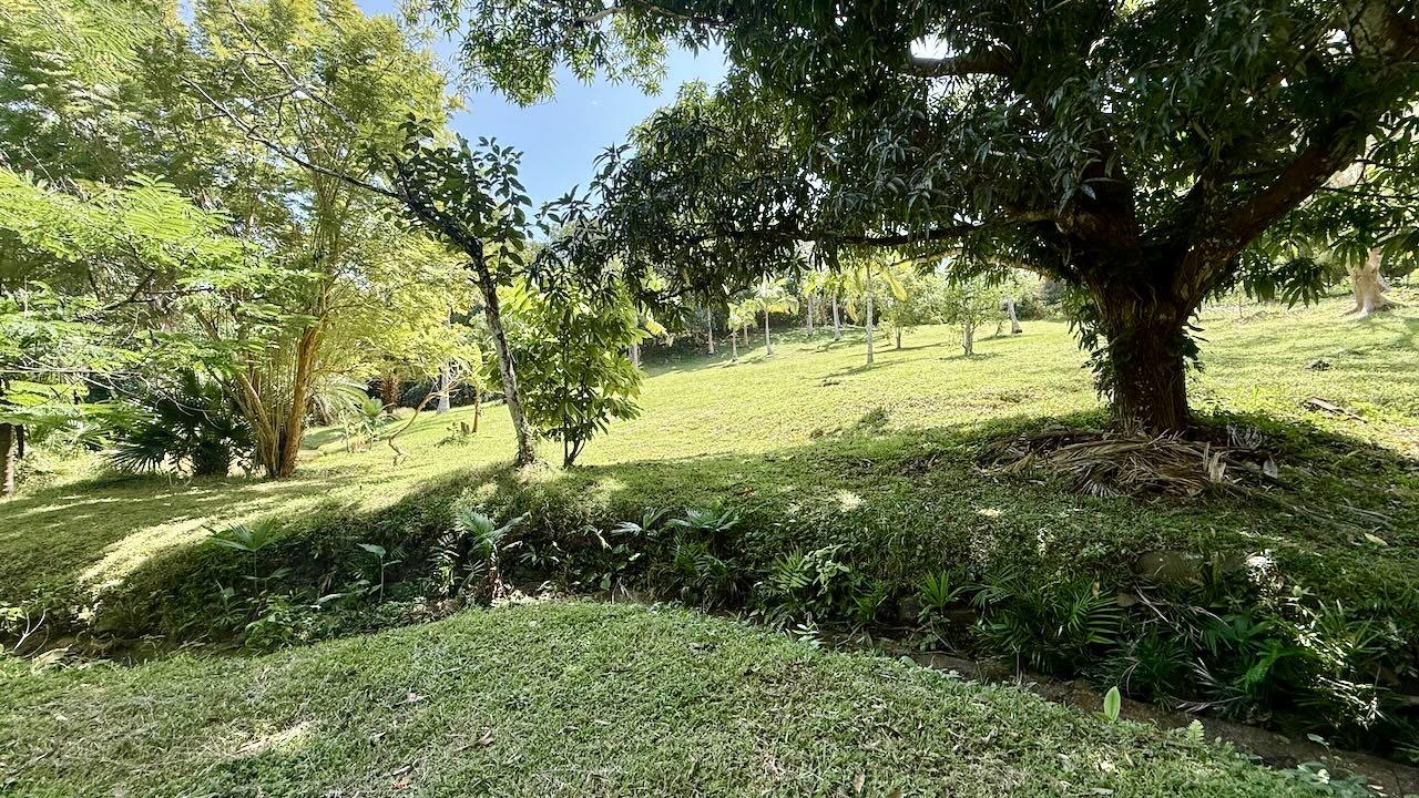 The property consists of a 2.2 ha, fully fenced farm located in the village of Cermeño in the Capira district. There are four main structures located on the four acres fronting the road from Cermeño to Monte Oscuro. These consist of: -A 150 m2 “Rancho” housing the main living/dining room, kitchen, office, and a bathroom/laundry room. -A 56 m2 guest house with two bedrooms and two bathrooms. -A 74 m2 bungalow consisting of a large bedroom/living room with a kitchen and private bathroom, a storage room, a store, and a maid’s quarters with a full bathroom. A 74 m2 caretaker’s house with a living room-kitchen, two bedrooms, and a full bathroom. In addition, a paved driveway leads to a covered carport with covered patio adjacent to the ranch. There is a swimming pool with a large pavilion , a 4mx4m, fully screened bird house, and a mechanical shed that houses the pool pumps and filters. There is a well that provides water to a large storage tank/filter system that supplies the water needs of the property. The front of the property has a beautifully landscaped garden with many exotic tropical plants, tropical plants, palm trees, citrus trees, mango trees, breadfruit trees, and avocado bushes. There is a natural stream that feeds a large lagoon toward the back of the lawn area, and the stream continues through the back of the property all the way to the property line. A fence separates the lawn from the back of the property, which is planted with teak and mahogany trees that are already ready to be harvested. This section measures around 4 hectares and is a Right of Possession, but is included with the sale.