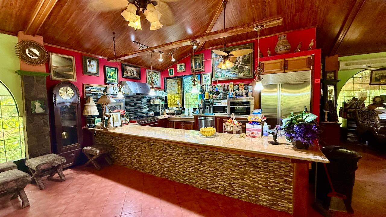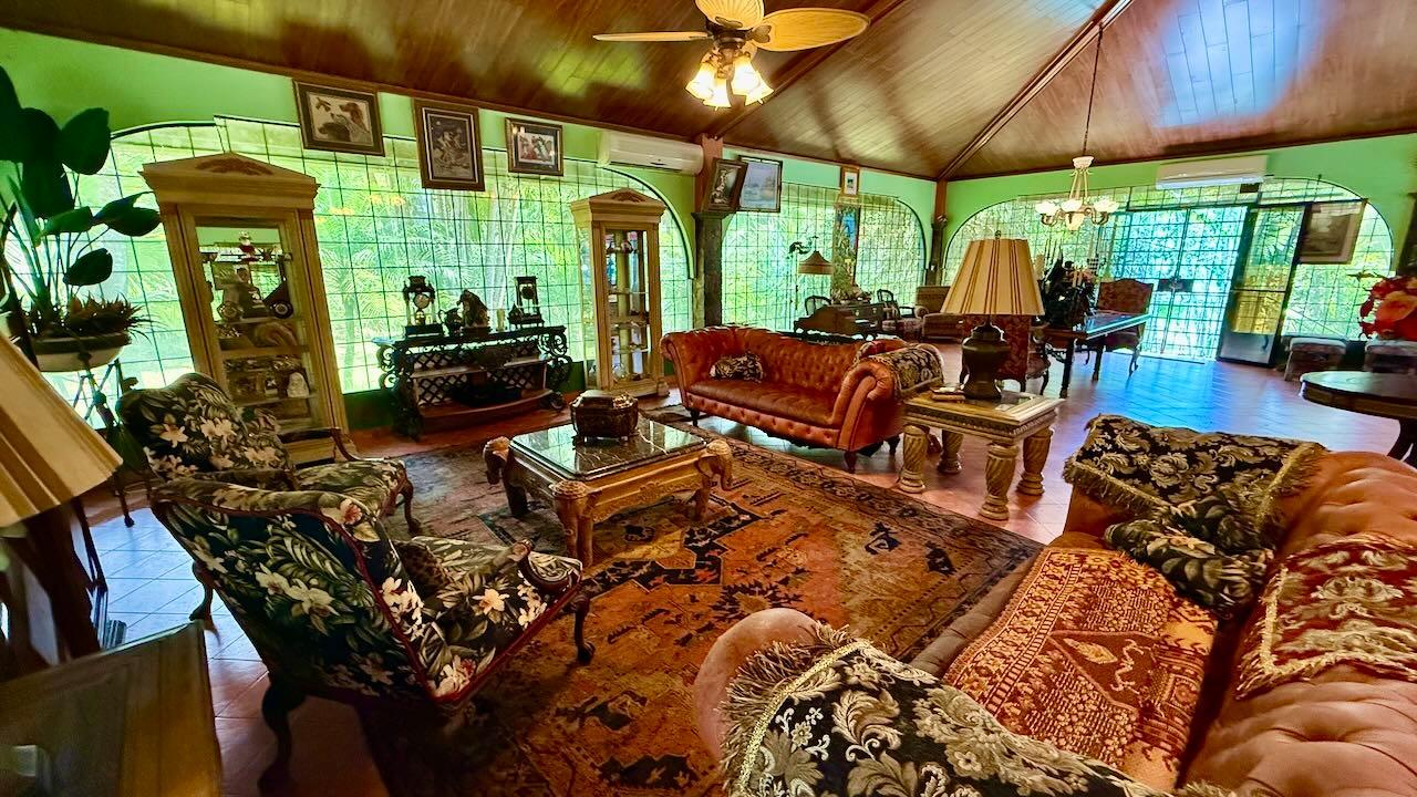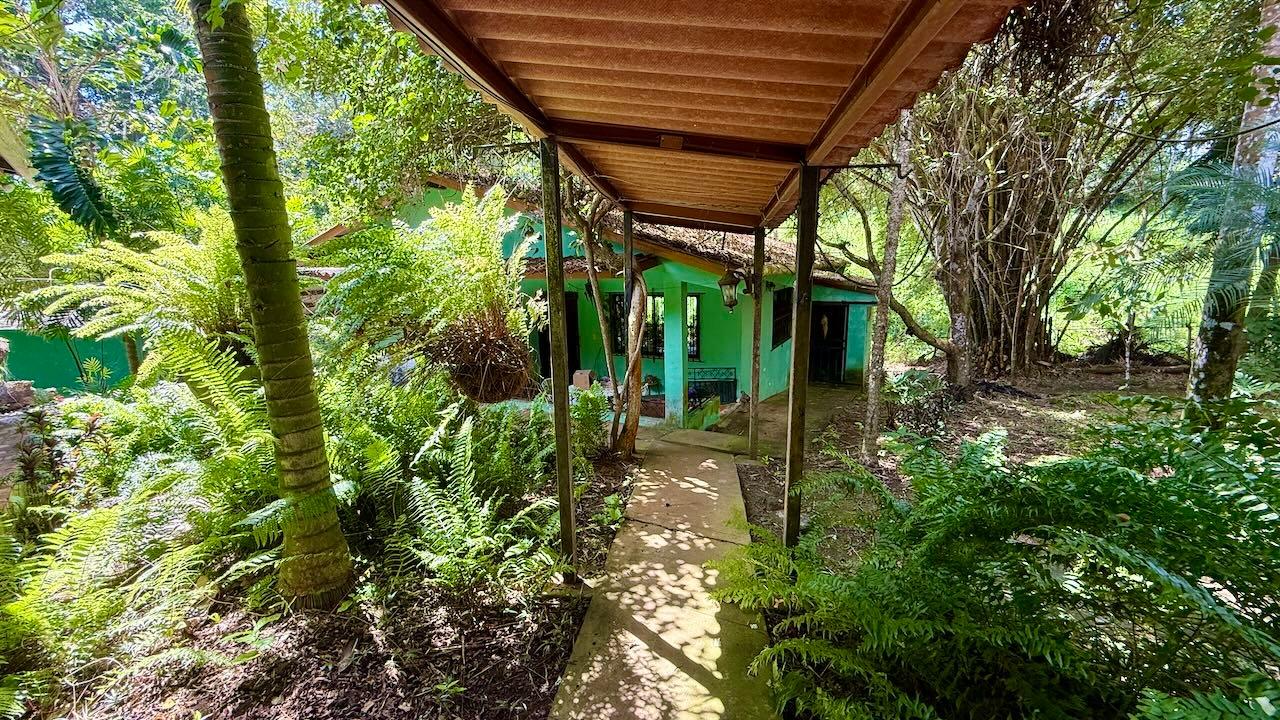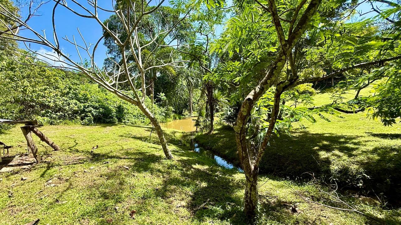 The property consists of a 2.2 ha, fully fenced farm located in the village of Cermeño in the Capira district. There are four main structures located on the four acres fronting the road from Cermeño to Monte Oscuro. These consist of: -A 150 m2 “Rancho” housing the main living/dining room, kitchen, office, and a bathroom/laundry room. -A 56 m2 guest house with two bedrooms and two bathrooms. -A 74 m2 bungalow consisting of a large bedroom/living room with a kitchen and private bathroom, a storage room, a store, and a maid’s quarters with a full bathroom. A 74 m2 caretaker’s house with a living room-kitchen, two bedrooms, and a full bathroom. In addition, a paved driveway leads to a covered carport with covered patio adjacent to the ranch. There is a swimming pool with a large pavilion , a 4mx4m, fully screened bird house, and a mechanical shed that houses the pool pumps and filters. There is a well that provides water to a large storage tank/filter system that supplies the water needs of the property. The front of the property has a beautifully landscaped garden with many exotic tropical plants, tropical plants, palm trees, citrus trees, mango trees, breadfruit trees, and avocado bushes. There is a natural stream that feeds a large lagoon toward the back of the lawn area, and the stream continues through the back of the property all the way to the property line. A fence separates the lawn from the back of the property, which is planted with teak and mahogany trees that are already ready to be harvested. This section measures around 4 hectares and is a Right of Possession, but is included with the sale.