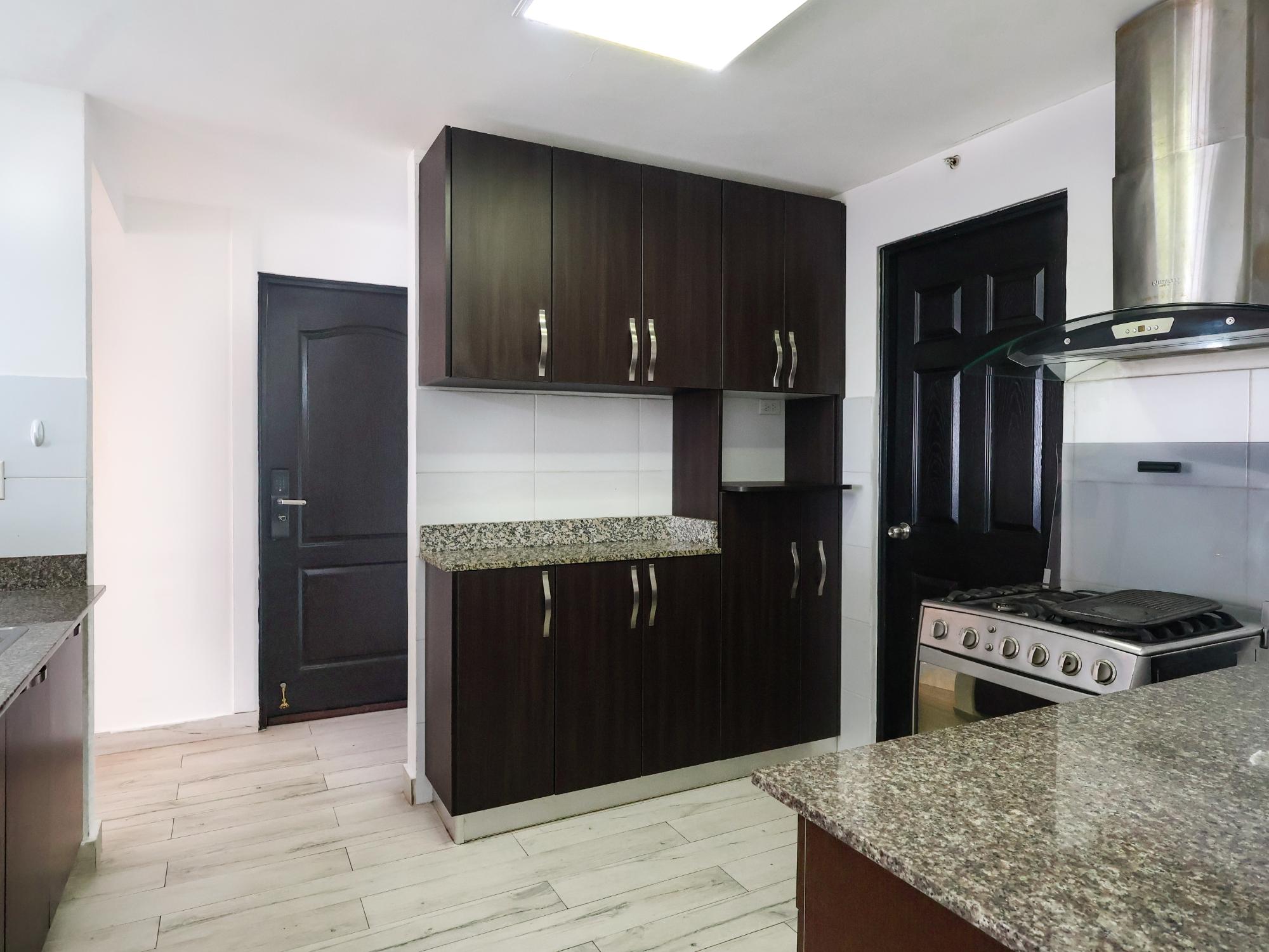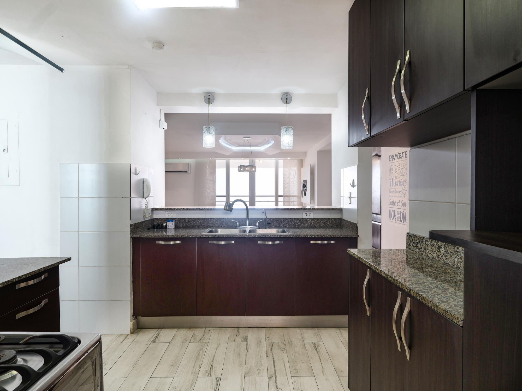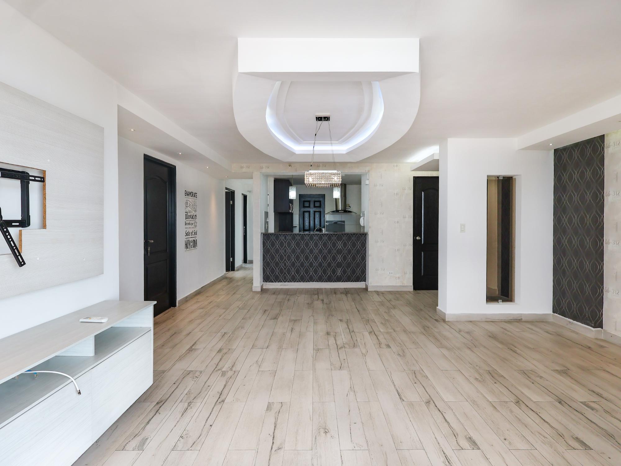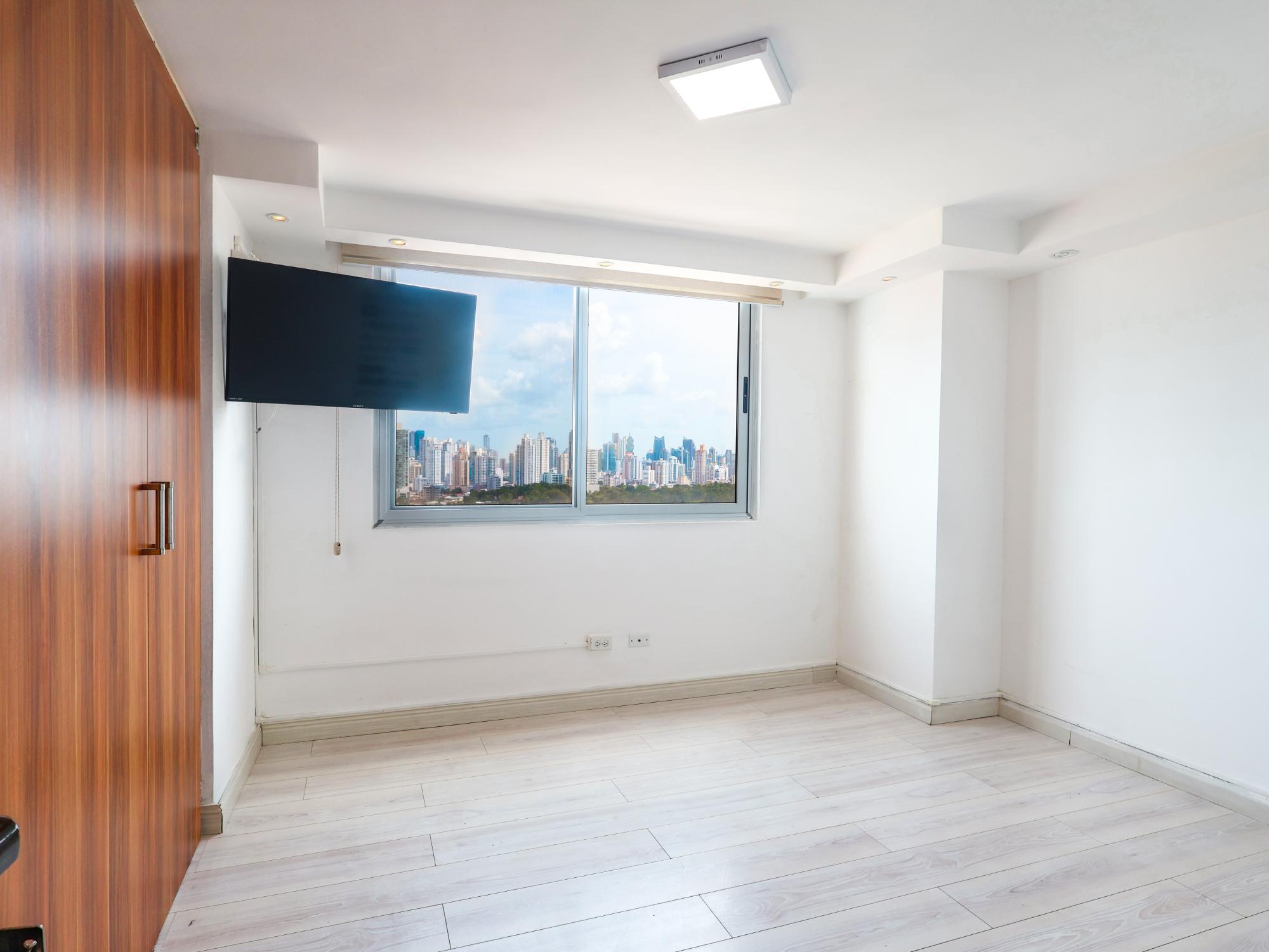 The Penthouse with ocean and city views located on Ernesto T Lefevre has 3 bedrooms, 2 and a half bathrooms, and 2 parking spaces. It has a common area with a pool, party room, and a gym. With finishes such as a false ceiling with lights, a security door, thermoacoustic windows, a hydromassage shower, and a tempered glass door. Sold with lamps and air conditioners. Close to Omar Park, supermarkets, banks, schools, restaurants, and access to Via España, Coco del Mar, and Costa del Este.