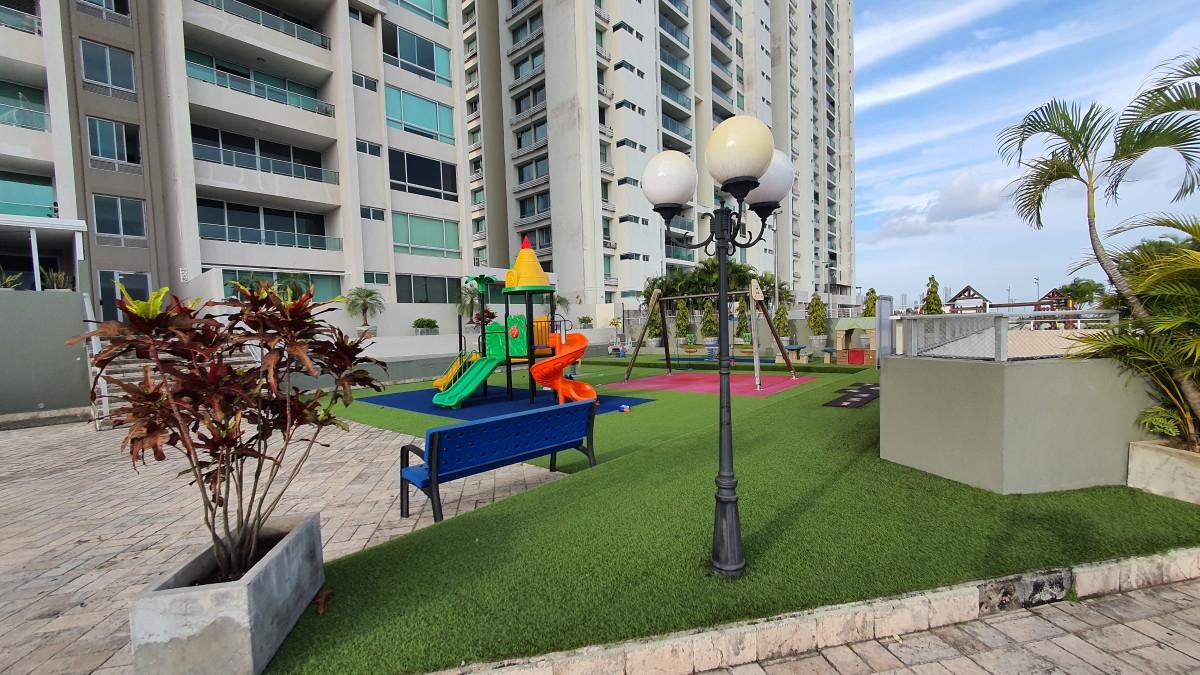 For sale beautiful apartment with spectacular views of the ocean and the city. Th isapartment features a spacious open-concept living and dining area, perfect for entertaining family and guests. The modern, functional kitchen offers an excellent layout and includes an independent laundry area, as well as a maid’s room with a private bathroom. The apartment offers three comfortable bedrooms, each with its own en-suite bathroom, providing privacy and comfort for all residents. The building boasts a complete social area that includes a swimming pool, children’s playground, gym, BBQ area, and an elegant event room, ideal for gatherings and celebrations. Located in a prime area with easy access to Corredor Sur, and close to shops, shopping centers, restaurants, and banks, ensuring convenience and easy access to all essential services.