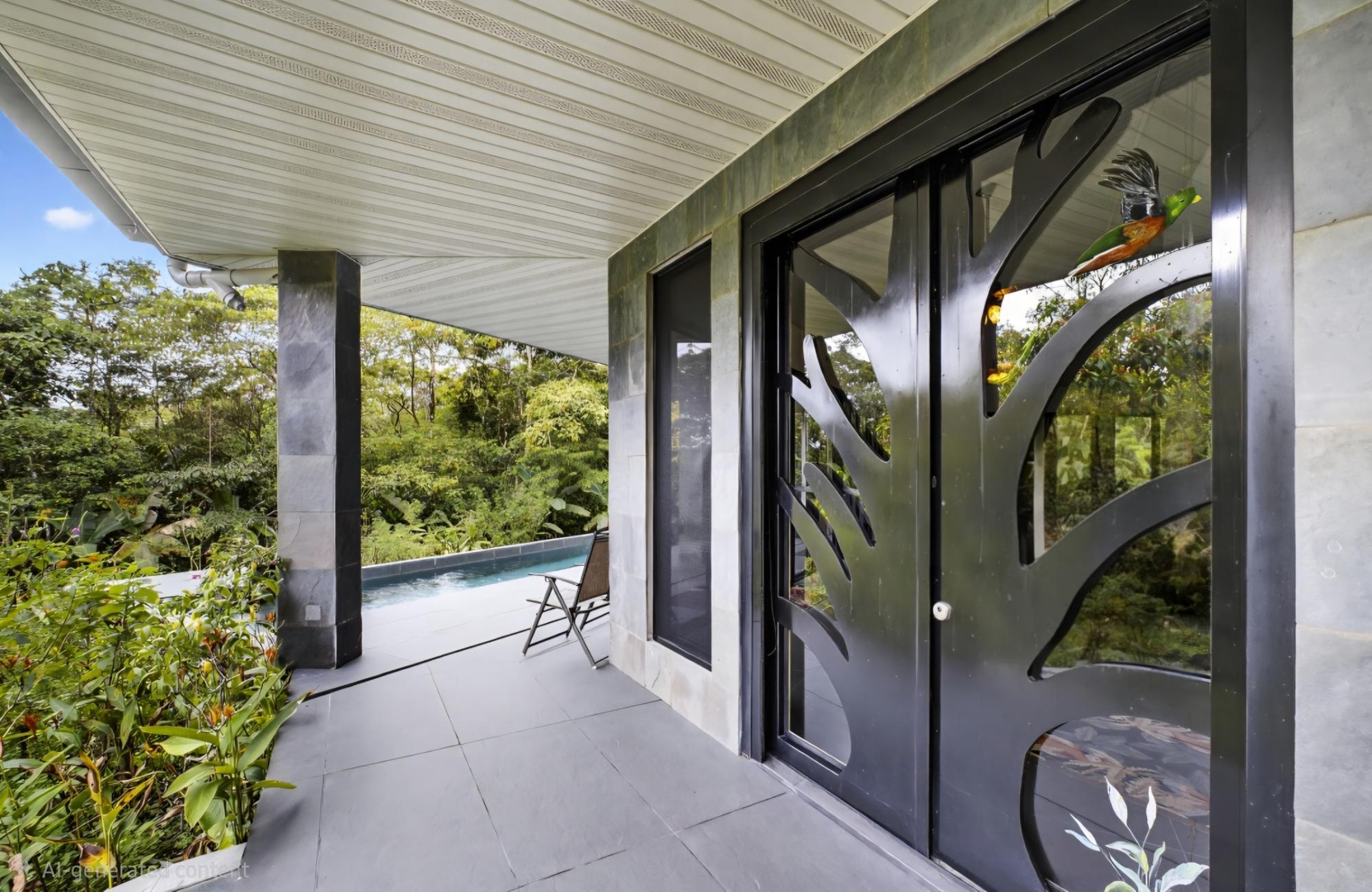 Nature Lover’s Paradise. Ideally located between Boquete, David, and Volcán, this private estate offers a contemporary 3B/3B home with pool surrounded by extraordinary biodiversity. Enjoy 2.5 miles of nature trails, a waterfall, tilapia pond, and approx. 1,820 meters of river and stream frontage. The property is a documented haven for 341+ bird species and 537+ butterfly species. The home features large windows for natural light and breezes, a wraparound covered terrace, ceiling fans, and low-maintenance design. Spacious kitchen with oversized fridge and freezer, double oven, and abundant cabinetry. Office with granite workspaces and floor-to-ceiling shelving. Master suite with double shower and oversized walk-in closet beside laundry. Garage with storage, sinks, and cooking space. Workshop, greenhouse, composting system, water tanks, filtration, and whole-house generator. Fruit trees and a perfect, temperate elevation complete this unique lifestyle property. *The adjoining finca is also available in addition to the finca in this listing. Inquire for details.