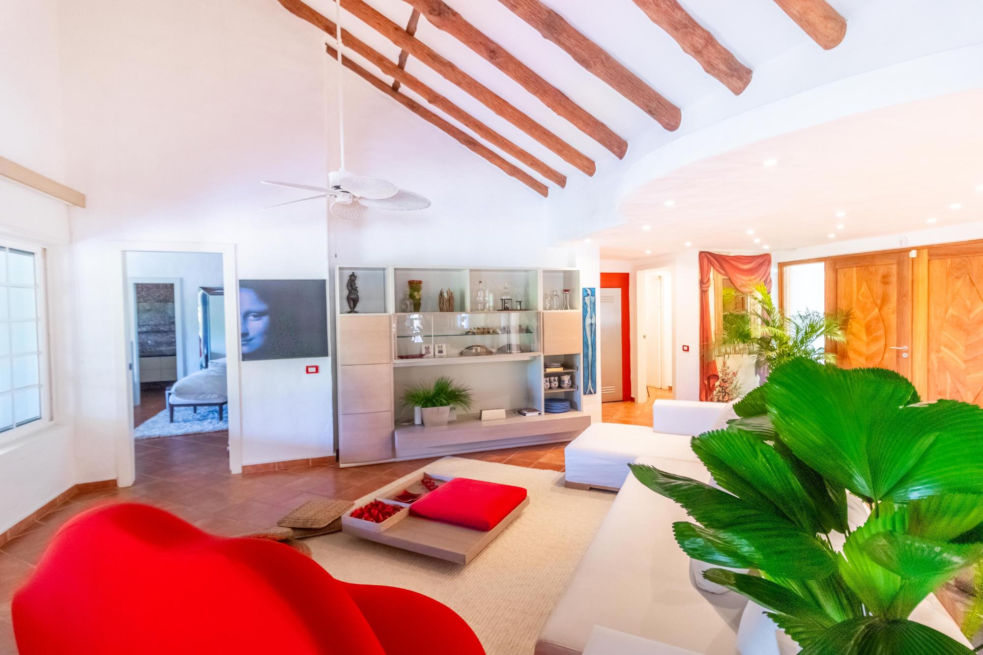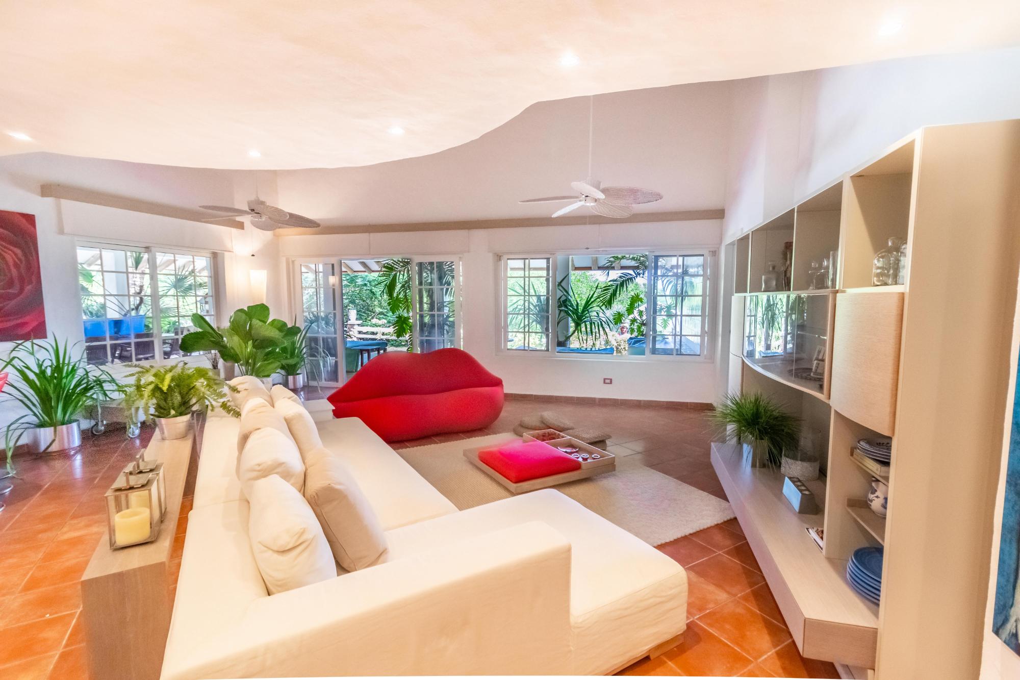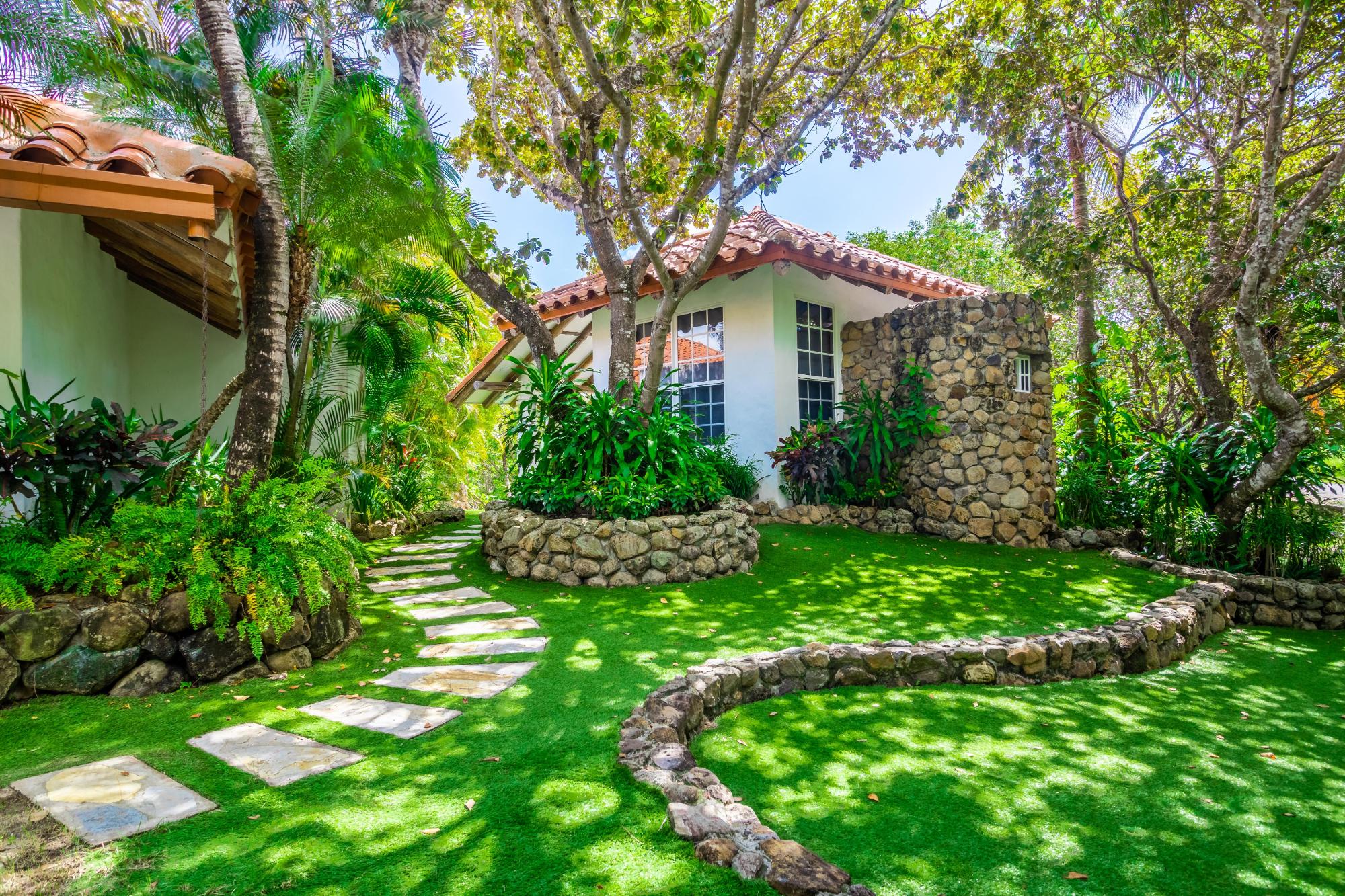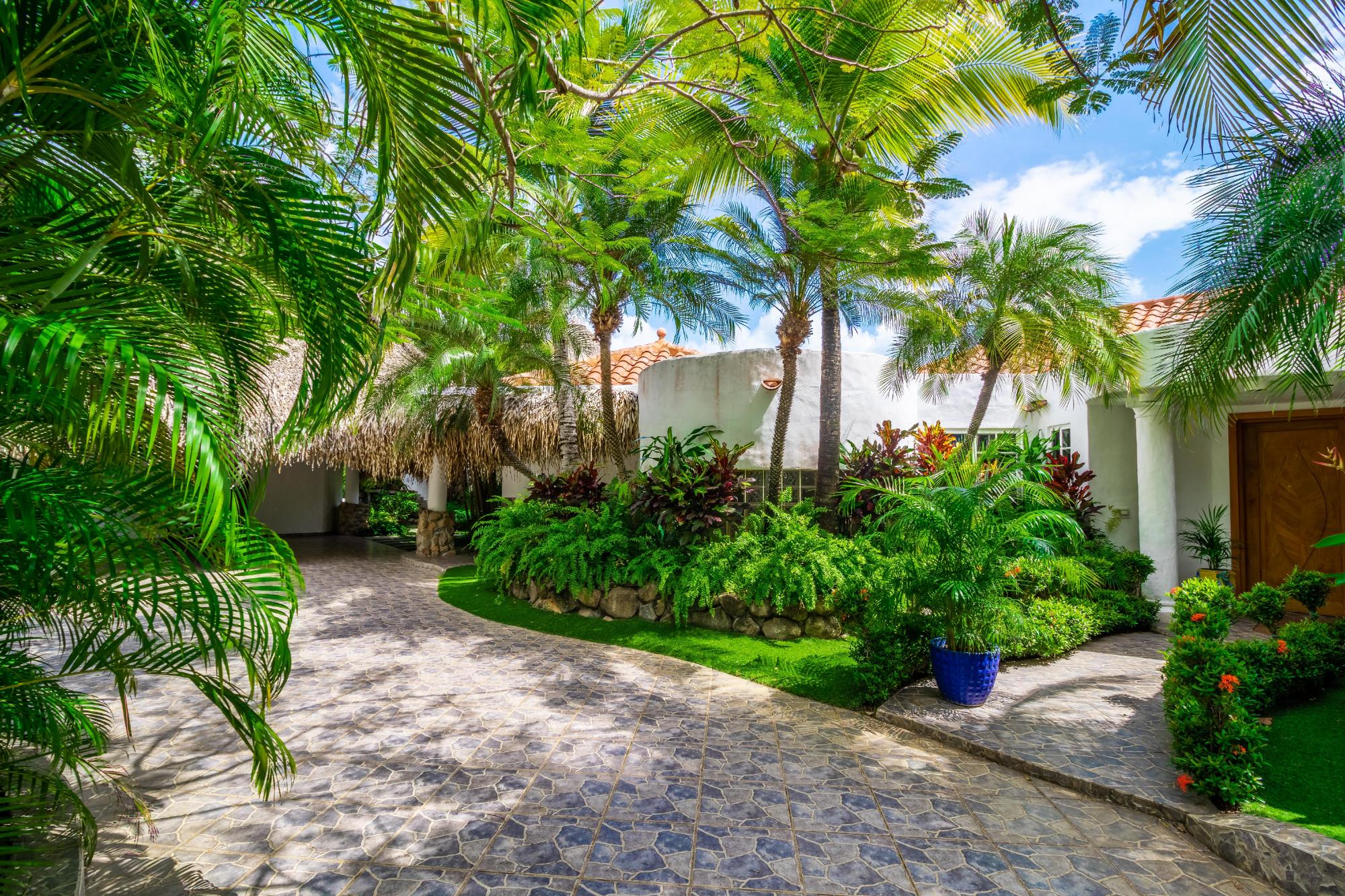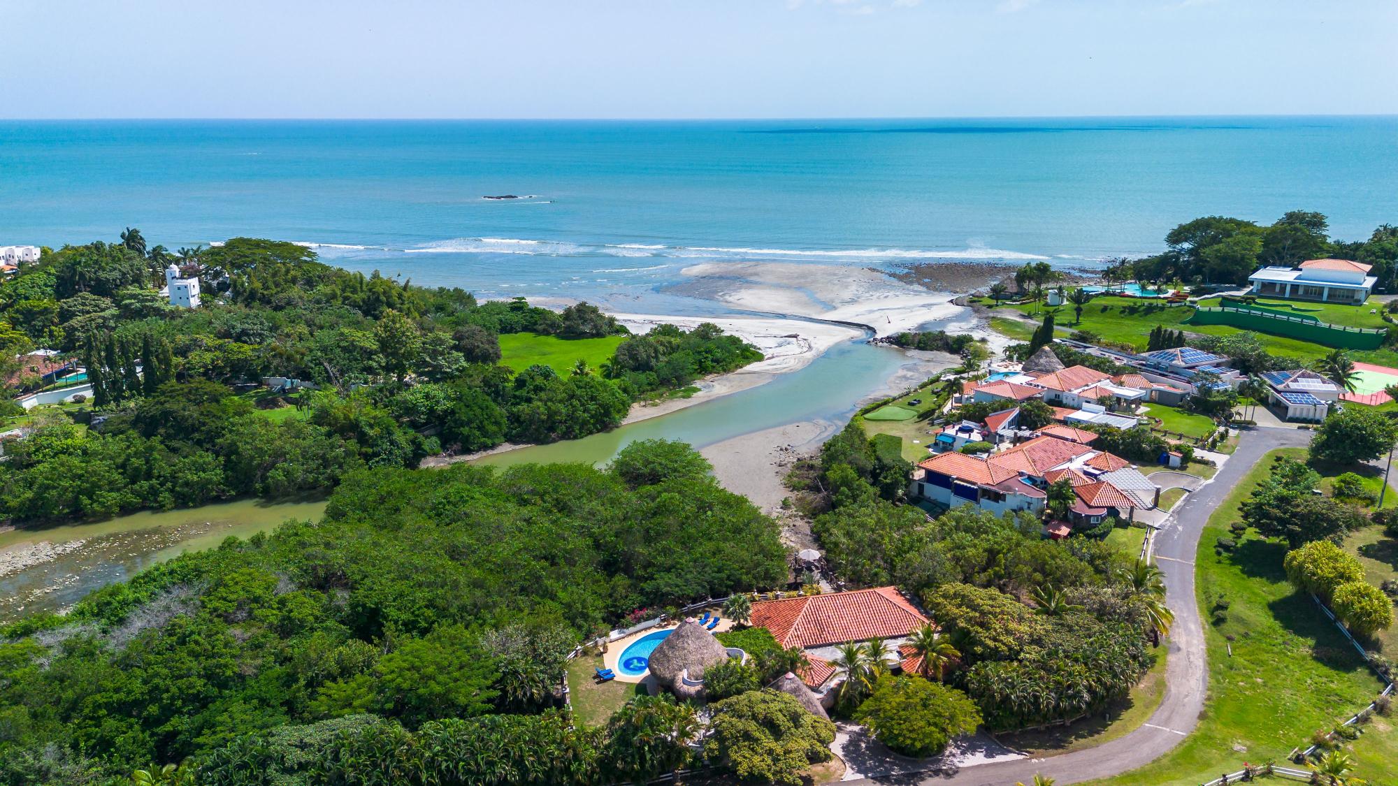 Exclusive beach property in Punta Barco Resort surrounded by mangrove trees with an extraordinary Ocean view and a unique large private swimming pool. Designed by award-winning architects Cambefort y Boza, this stunning contemporary property boasts an open layout, large open air terrace, 4 bedrooms each with en suite bathrooms, kitchen, guest toilet, laundry room. Next to the pool a large natural palm tree roofed gazebo, has a functional bar, a built in wood pizza oven and a barbecue. The bohio has also an elegant toilet and an open-air warm water shower. Next to the main residence there is a distinctive 2-story loft style guest house with en suite bathroom. The guest house features a built in polished tree trunk and can accommodate up to six people. A wooden observation deck stands on a natural tide pool surrounded by mangrove trees overlooking the ocean. The large very well-kept garden is all surrounded by high palm trees giving the estate an absolute and uncommon privacy. The property includes an employees 2 beds little house with kitchen, bathroom and a small patio. On the front part of the property there is a 2-car garage, additional parking space for 4 cars, and 2 storage deposits. The property also comes with 2 large water reserve tanks and a gas electricity generator with enough capacity to cover the whole compound, both well hidden behind a natural stone wall in the garden.