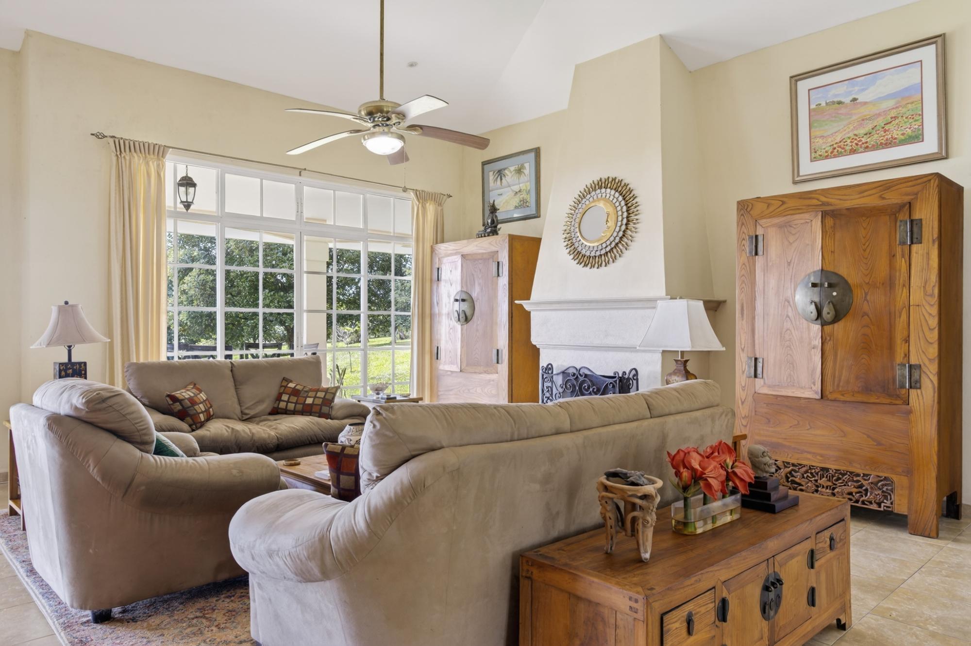 Hacienda La Joya is a beautiful 5-hectare rural estate located in Potrerillos Rovira, ideal for horse lovers or those seeking a peaceful country lifestyle. The furnished 3-bedroom main home features an open floor plan with a lovely fireplace, a custom wood kitchen with excellent storage, and a formal dining area. A covered terrace spans the entire back of the home, offering stunning, expansive views. The spacious master suite includes a rare ensuite bathroom with soaking tub and a walk-in closet. One bedroom is currently used as an office and the third serves as a guest room. The hallway provides ample built-in cabinetry for linens and storage. Just steps away is a charming one-bedroom casita with its own covered terrace, perfect for guests, extended family, or rental income. Originally built as a dream home by a former polo player, this special property is now ready for its next chapter.