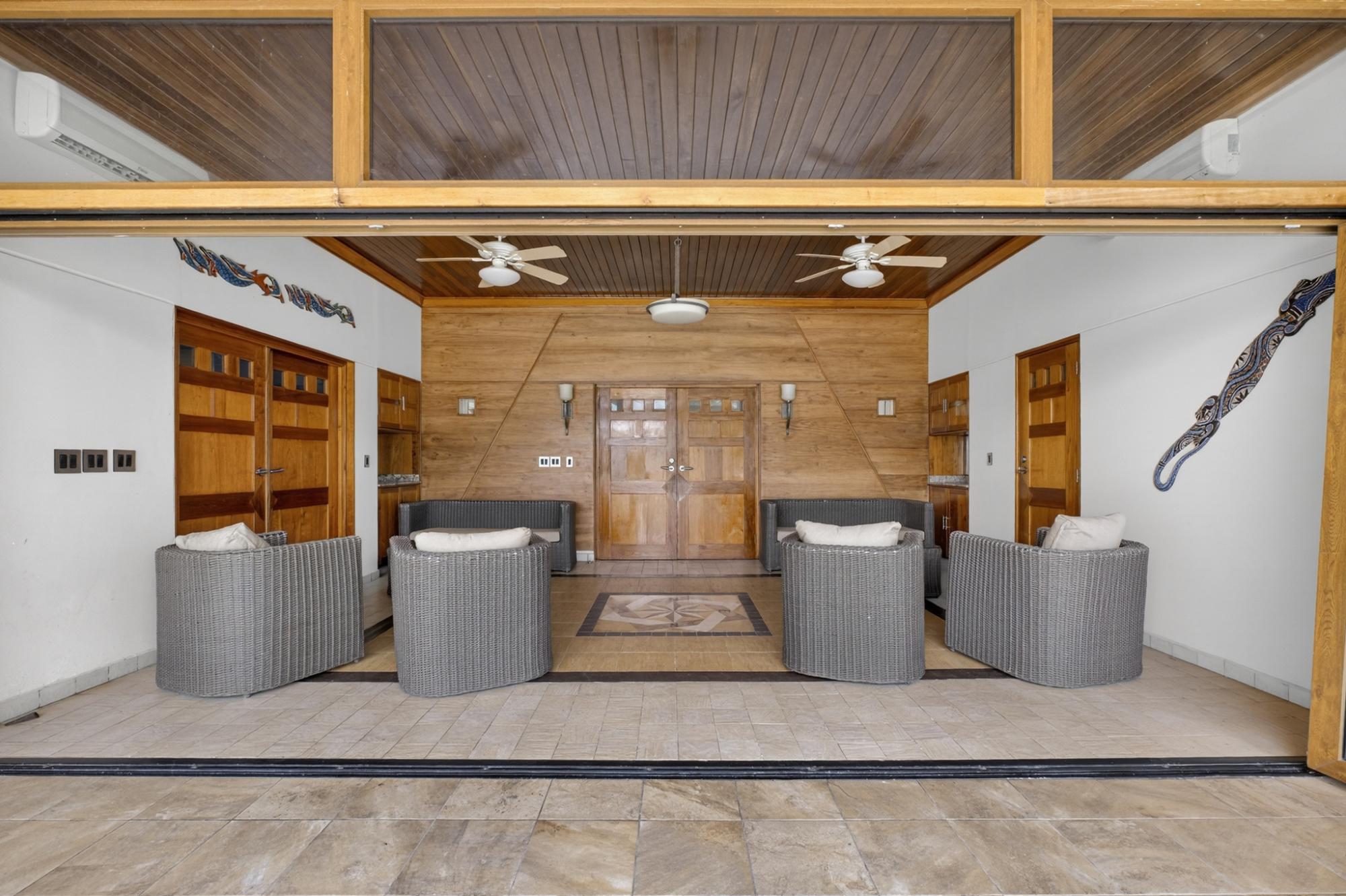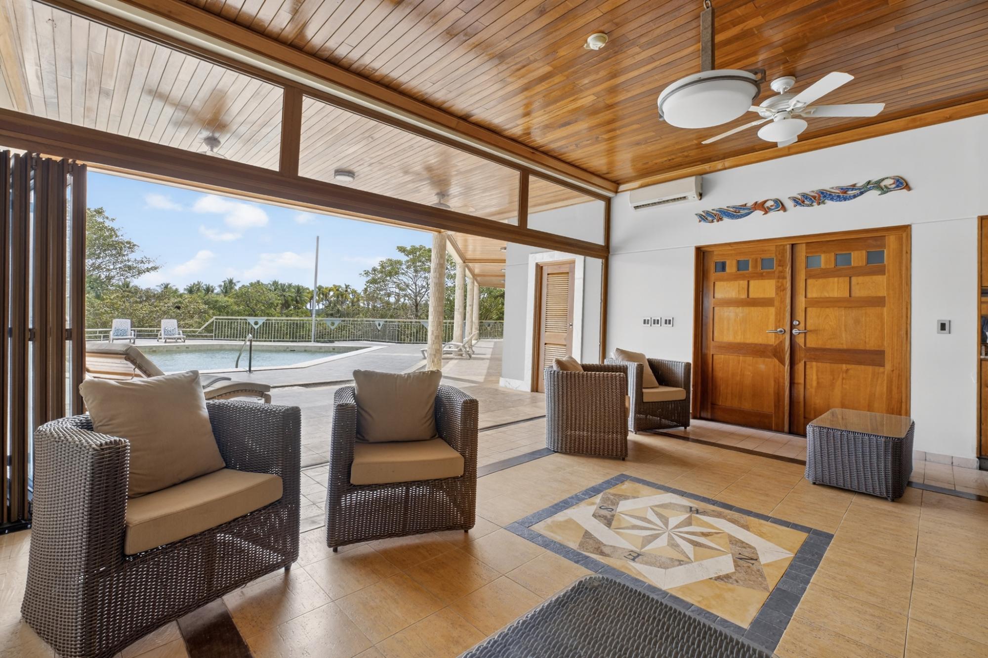 Located at Hermosa Bay in Boca Chica, this expansive 9,000+ sq ft estate sits on approximately 23,000 m² of private grounds and offers exceptional resort and boutique hospitality potential. The property features 6 ensuite bedrooms, plus separate caretaker/owner’s quarters with bedroom, bath, laundry, and storage. Designed around a large central pool, guest suites enjoy direct access to outdoor living. A grand open-air lobby, multiple lounge areas, and covered walkways create a cohesive, resort-style layout. Upstairs, a 2,400 sq ft level with second kitchen offers ideal space for a restaurant, lounge, or game room, while a wine cellar below provides potential for a private tasting area. Additional features include a living room/library suitable for theater conversion, bocce court, mature landscaping, and abundant privacy with frequent wildlife sightings, including howler monkeys. Well constructed and maintained, the property requires selective updating and is well positioned near boating, deep-sea fishing, and island excursions, with convenient access to David and its airport, and approximately 1.5 hours to Boquete.