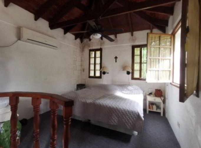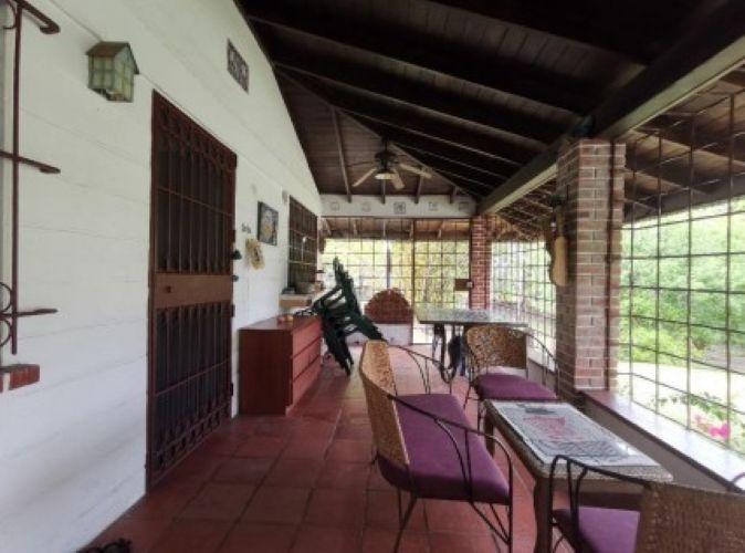 Ground floor built in 1977. 2 bedrooms, full kitchen with overhead cabinets (20249, living/dining area. Full bathroom with water heater, tiles in bathroom and kitchen. Covered outdoor terrace with iron fencing, as well as all windows. Upper floor (2000) single bedroom, internal staircase, full bathroom, French windows with lattices and iron fences. Tile roof over wood and asphalt shingles. Covered open garage. Caretaker’s room and pump and storage room. At the entrance to the property, an enclosed gazebo with windows and fences. Well water, electricity, plumbing, septic tank.