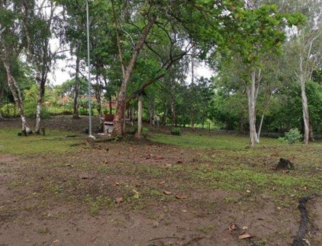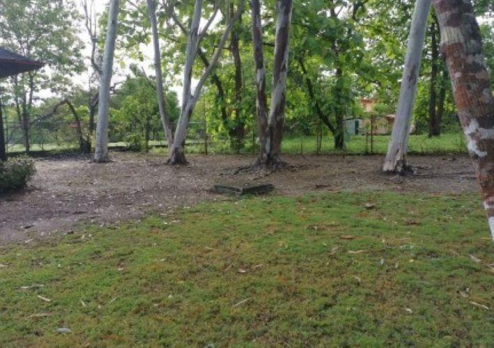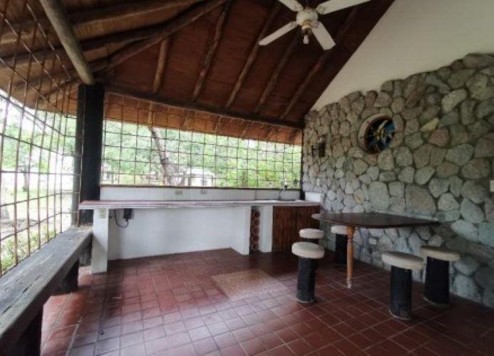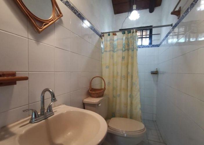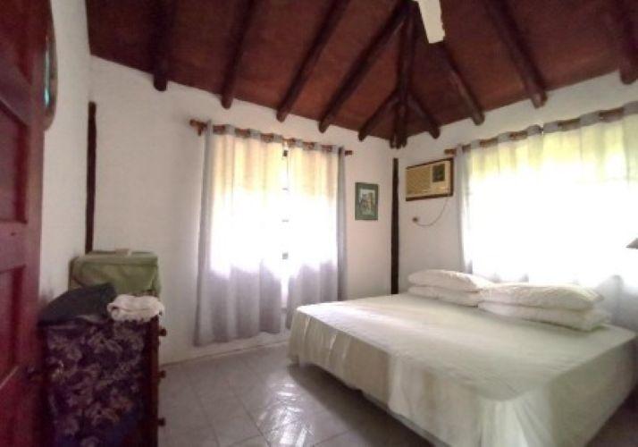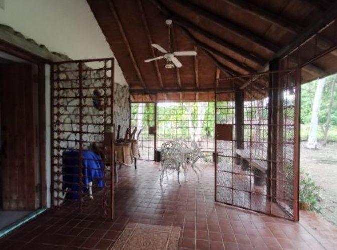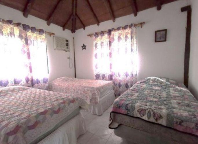 Enclosed area consisting of two bedrooms and a fully tiled restroom, tiled floor, and Asian tile roof over wood. The interior features plastered block walls and decorative stone cladding on the exterior; sliding windows with aluminum frames and security gates. The terrace has a clay floor and roof, iron perimeter fences, and a sink embedded in the concrete.