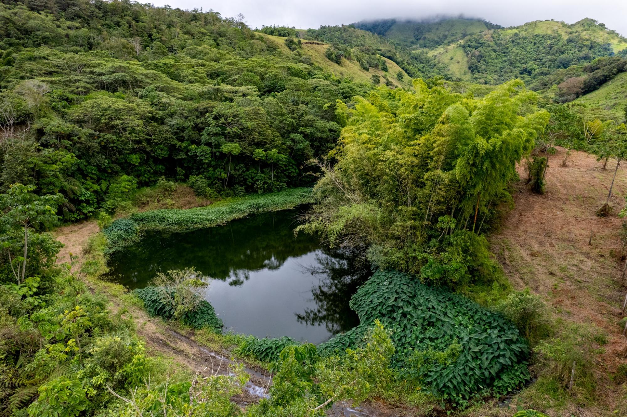 Nearly 10 hectares of exceptional land located in Rovira, Dolega, featuring a 25-foot-deep spring-fed lake stocked with peacock bass, tilapia, rainbow bass, prawns, and sargento. The property offers three year-round freshwater springs and rich black volcanic soil, ideal for agriculture, eco-development, or long-term investment. Approximately 8,000 m² of flat land at the upper elevation provides an excellent building site, with an additional 5–6 hectares of gently sloping to flat terrain below. Mature bamboo, natural surroundings, and an elevation of approximately 1,100 meters complete this rare opportunity in a peaceful countryside setting.