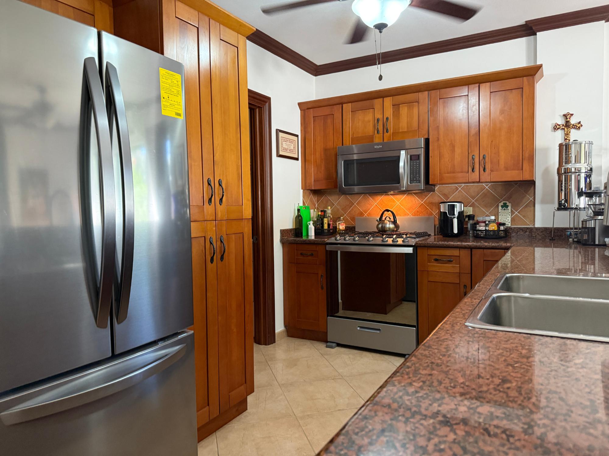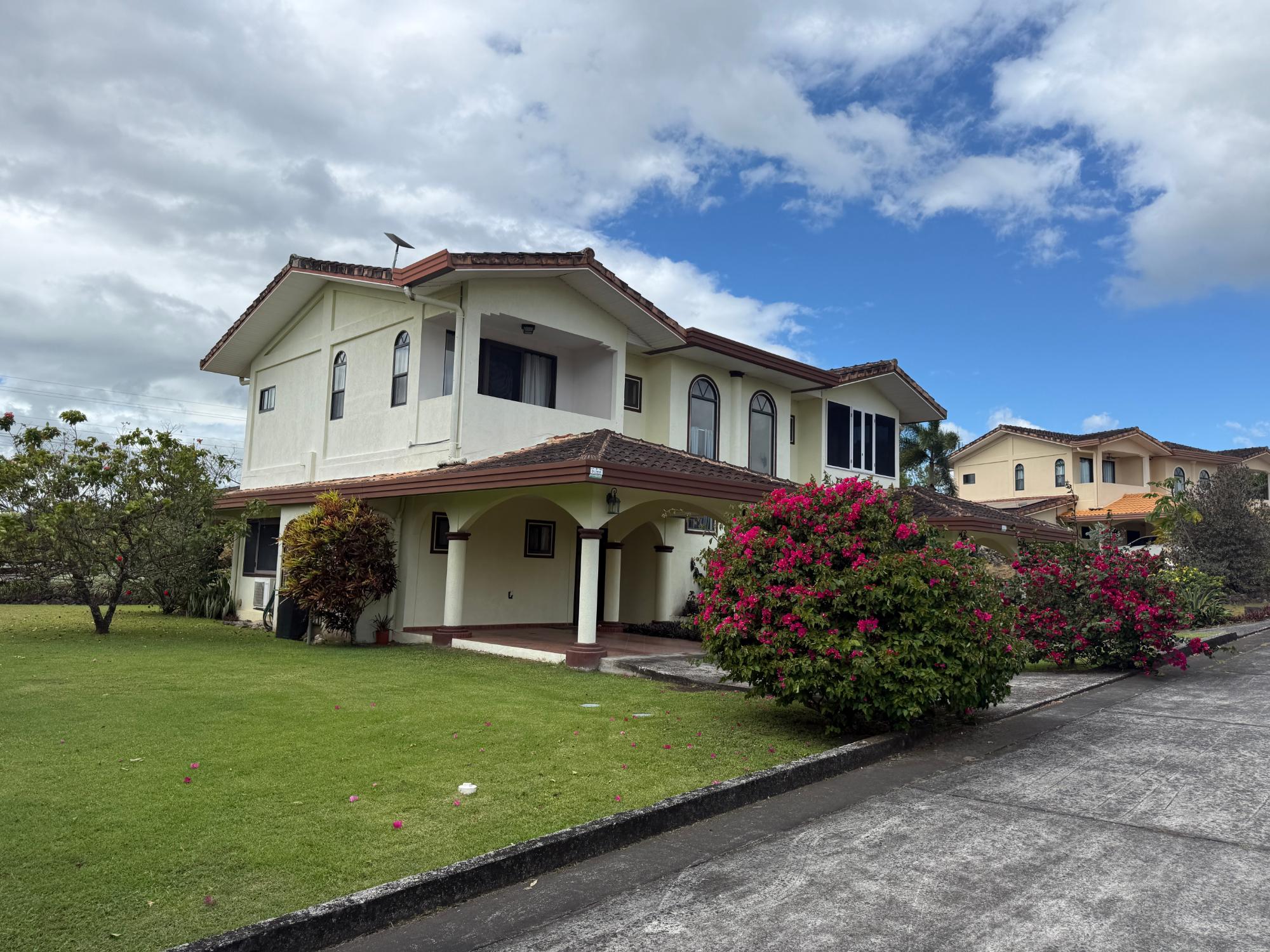 Experience the best of Boquete living in this beautifully furnished two-story residence, ideally situated in the sought-after Boquete Canyon Village—just minutes from the heart of town. Freshly painted, boasting brand-new appliances, and featuring custom security screens throughout, this home welcomes you with a bright, airy layout. The main floor includes a cozy living room that opens onto a lovely covered terrace—perfect for savouring your morning coffee—along with a modern kitchen and convenient adjacent laundry room. Each bedroom offers its own ensuite bath, and the master bedroom showcases a newly installed custom closet system. Additional highlights include a two-piece powder room, covered carport, backup water tank, and water filtration system. Enjoy a warm, neighbourly atmosphere and, with a small monthly fee, gain access to the community clubhouse, which features a gorgeous pool and a well-equipped gym. Don’t miss your chance to experience both comfort and convenience in one of Boquete’s premier gated communities!