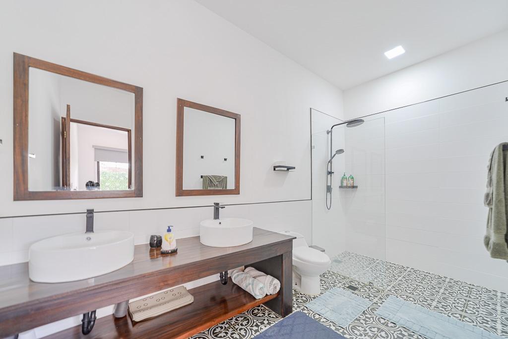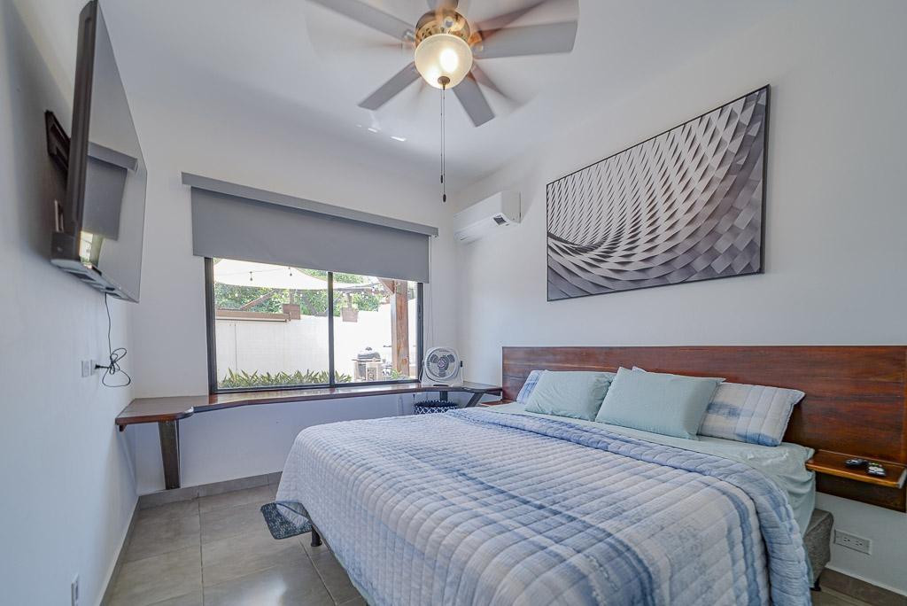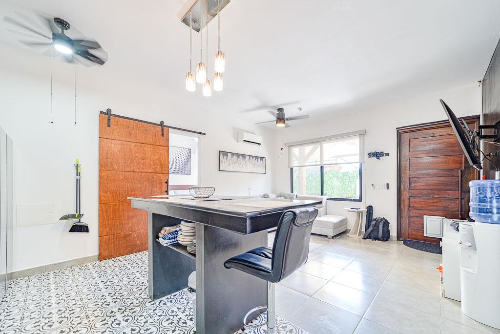 This turnkey 2-bedroom, 2-bathroom townhome in Pedasí offers a perfect blend of comfort, privacy, and rental potential—just minutes from both the town center and the beach. Tasteful modern finishes, open-concept layout, smart design – the property is ideal as a full-time residence, vacation home, or income-generating Airbnb. The main living area features an open kitchen and dining space with sleek black cabinetry, floating shelves, and patterned tile floors. The backyard is a true highlight, featuring a shaded terrace, cozy seating areas, tropical landscaping, and a private plunge pool—perfect for relaxing after a day at the beach. Both bedrooms are equipped with air conditioning, modern ceiling fans, and built-in storage. The principal bedroom has a garden view and easy access to the pool area. Additional features include a washer/dryer setup, energy-efficient lighting, and a dedicated parking space. This home is fully fenced for privacy and security, and it’s located in a quiet residential area that’s still within walking or biking distance of Pedasí’s restaurants, shops, and grocery stores. Ready to go for immediate occupancy or rental. Contact us to schedule a showing.