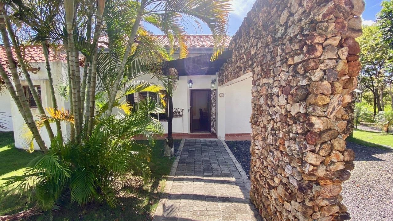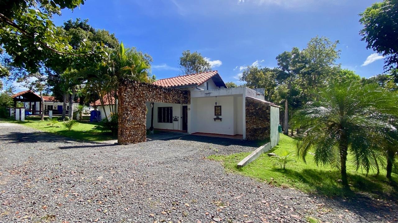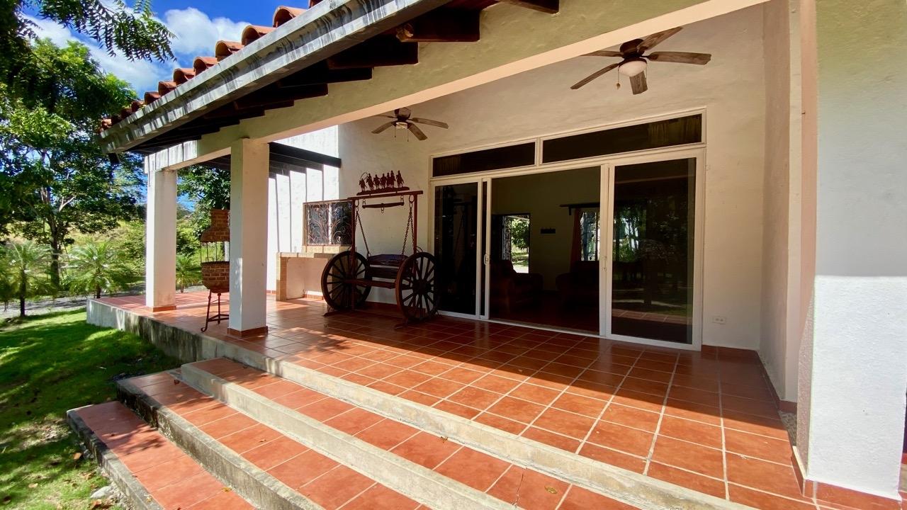 Two bedrooms colonial house located in a small complex with swimming pool, about 10 minutes away from Coronado. This pleasant two bedrooms colonial house is located Las Quintas de Cabuya, on the way to the village of Cabuya. It’s a very friendly complex with approximately 20 houses, surrounded by mountains. It’s offering some very nice views and a sweet breeze all along the year. There is a small social area with a pool and some gazebos. It’s located on the brand new paved road leading to Cabuya, about 10 minutes away from Coronado and one hour and a half from the city. This colonial house was built in 2014. With a surface area of 200 sqm and 550 sqm of garden, this two bedroom colonial house enjoys a privileged location, right in front of the social area and the pool. It has the following features: •25 m2 living room with terrace access •Open kitchen, fitted and equipped, of 14 m2 •Bedroom 1(20 m2) with large private bathroom and wardrobe •Bedroom 2(19 m2) with wardrobe also •Guest bathroom (4 m2) •Covered terrace (25 m2) •Barbecue area •Laundry room •Outdoor shower •Garden shed •2 parking spaces Behind the kitchen is a storage space of almost 4 m2, part of which could be transformed into a separate guest restroom. This two bedrooms colonial house has an option for a third bedroom, with private bathroom. Plans and authorization are available for the new owner. The house will seduce you with its charm, its functional distribution, likewise its woody cathedral ceiling of 5.42 meters in height, its general condition and the calm of its location. In addition, you will benefit from an exemption from property taxes until 2029.