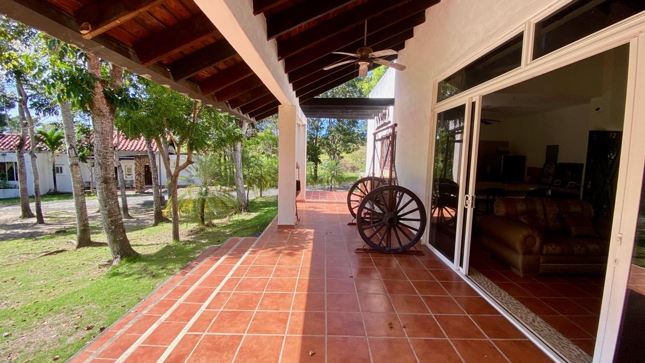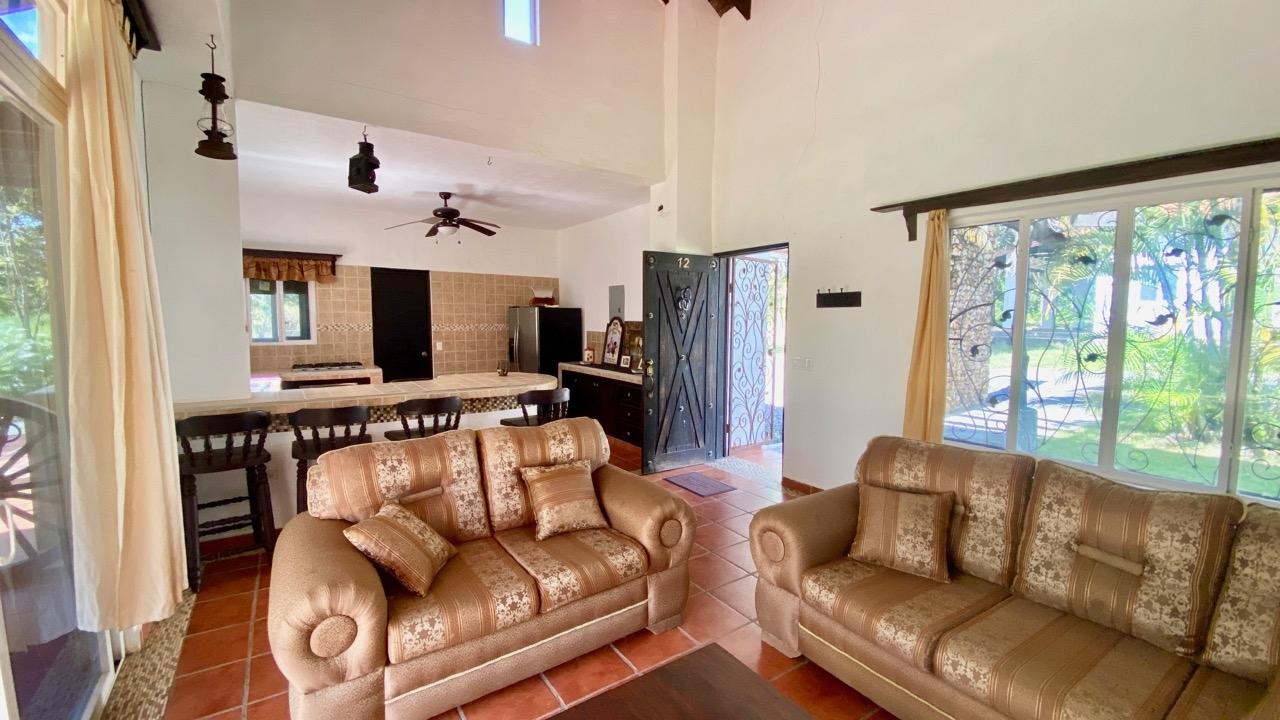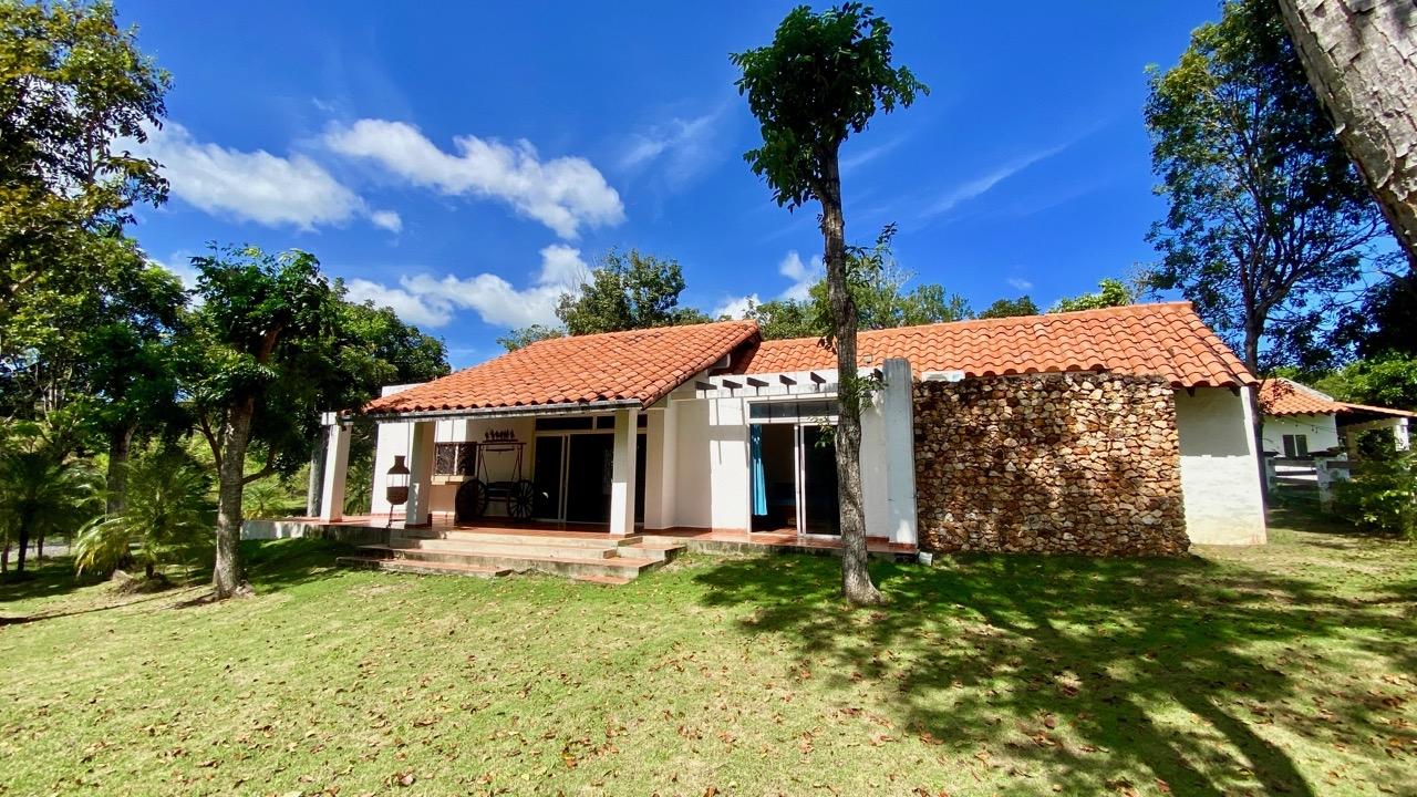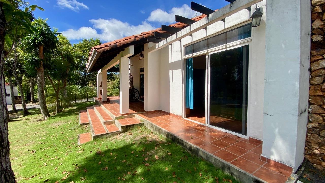 Two bedrooms colonial house located in a small complex with swimming pool, about 10 minutes away from Coronado. This pleasant two bedrooms colonial house is located Las Quintas de Cabuya, on the way to the village of Cabuya. It’s a very friendly complex with approximately 20 houses, surrounded by mountains. It’s offering some very nice views and a sweet breeze all along the year. There is a small social area with a pool and some gazebos. It’s located on the brand new paved road leading to Cabuya, about 10 minutes away from Coronado and one hour and a half from the city. This colonial house was built in 2014. With a surface area of 200 sqm and 550 sqm of garden, this two bedroom colonial house enjoys a privileged location, right in front of the social area and the pool. It has the following features: •25 m2 living room with terrace access •Open kitchen, fitted and equipped, of 14 m2 •Bedroom 1(20 m2) with large private bathroom and wardrobe •Bedroom 2(19 m2) with wardrobe also •Guest bathroom (4 m2) •Covered terrace (25 m2) •Barbecue area •Laundry room •Outdoor shower •Garden shed •2 parking spaces Behind the kitchen is a storage space of almost 4 m2, part of which could be transformed into a separate guest restroom. This two bedrooms colonial house has an option for a third bedroom, with private bathroom. Plans and authorization are available for the new owner. The house will seduce you with its charm, its functional distribution, likewise its woody cathedral ceiling of 5.42 meters in height, its general condition and the calm of its location. In addition, you will benefit from an exemption from property taxes until 2029.