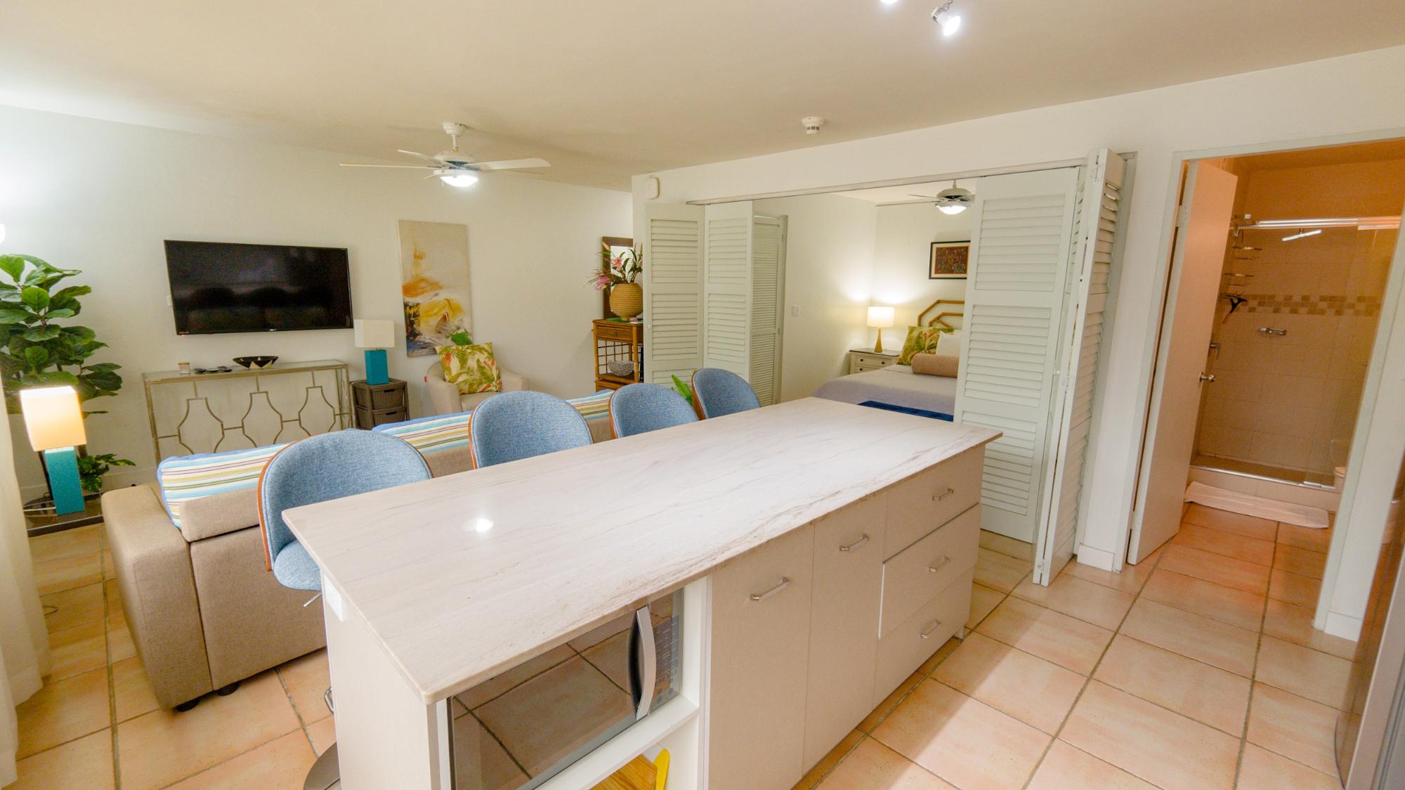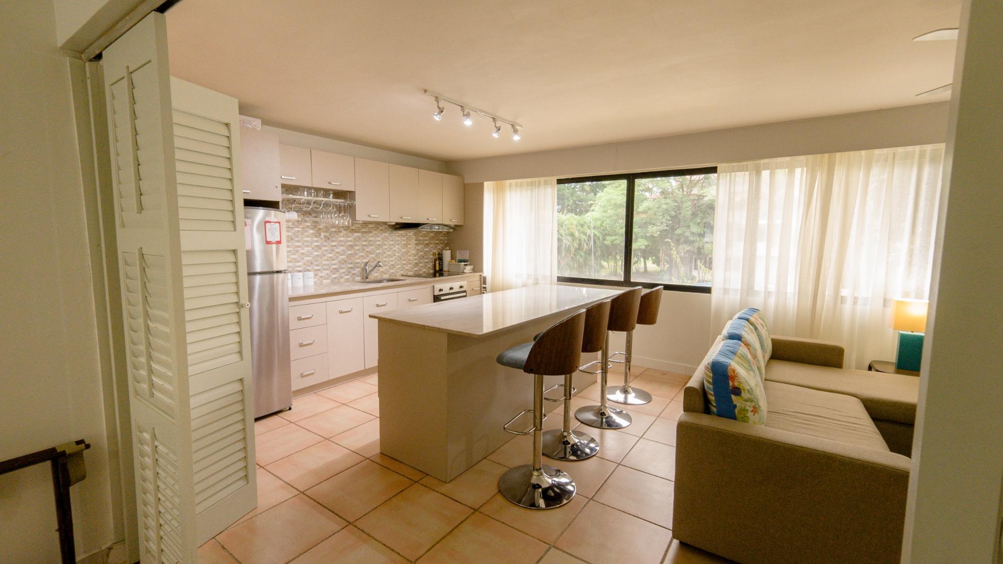 Nestled in the heart of the vibrant Playa Coronado beach community, just a 1.5-hour scenic drive from Panama City, Coronado Luxury Suites and Club offers a serene escape that perfectly combines luxury, comfort, and world-class amenities. This resort-style property features 104 exquisitely appointed suites, ideal for those seeking a temporary getaway or a long-term stay by the Pacific coast. This suite is thoughtfully designed with comfort and style in mind. Featuring full size kitchen with all the comforts of home. This suite is spacious and airy, with natural light flow and a garden view and pool view. The king-size bedroom provides a restful retreat, complete with space- designed bathroom a renovated kitchen that features modern fixtures. The living area is equally impressive, sofa sleeper offering a cozy spot to relax, while a flat-screen TV ensures that entertainment is always within reach. The suite is tastefully furnished with granite, adding a touch of tropical elegance. One of the highlights of each suite is the fully updated 50 m2 a refrigerator, microwave, oven, and stovetop, this kitchen offers all the essentials for preparing gourmet meals, whether for a short stay or an extended visit. The property itself boasts a variety of world-class amenities that cater to all types of guests. A large pool, surrounded by palapas and ample lounge chairs, serves as the perfect spot to soak up the sun or unwind with a refreshing drink. Families will love the kids’ playground, while the adults can explore the newly renovated tennis and pickleball courts—2 tennis courts and 6 pickleball courts, all updated for optimal play.