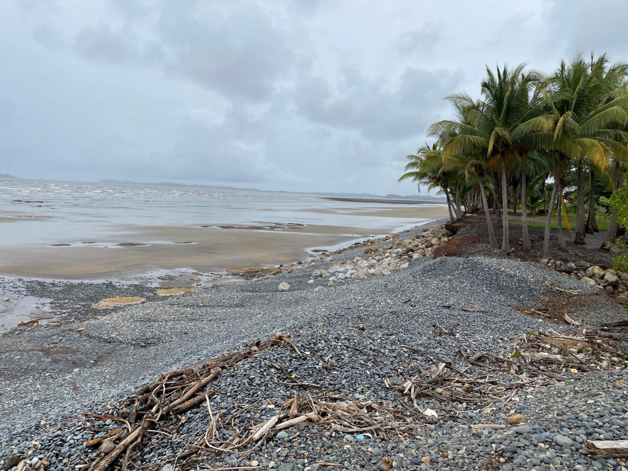 Have you ever dreamed of living on the beach in a luxurious fairy-tale house with its own access and 2.5 hectares of land? This might be the fulfilment of your dream: 500 square metres of house (7 bedrooms with 6 bathrooms) guarantee enough space for you to invite your extended family plus a couple of friends and not feel cramped. The brand-new kitchen with teak cupboards and finishings makes you think of lavish meals on the adjoining huge terrace with a large and renovated pool on the upper floor overlooking the palm trees, the beach and the sea. One floor higher are more rooms, which can be used as bedrooms, music rooms, offices – whatever you need or feel like. The ground level consists of a large space for cars, canoes, and other toys plus a caretaker’s lodgings. The property includes an adjacent separate lot giving you 2.5 hectares to create your own paradise. The house is self-sufficient with its own well and solar panels. A special plus is the easement through the neighbouring farms which comes with the house and guarantees access at all times. The village of San Lorenzo on the Pan-American highway is a 30-minute drive, and another half an hour will take you to David, the second largest city in Panama, where you will find all the shops you need and an international airport. This is a unique property for special people who appreciate privacy and independence yet want accessibility and comfort at the same time.